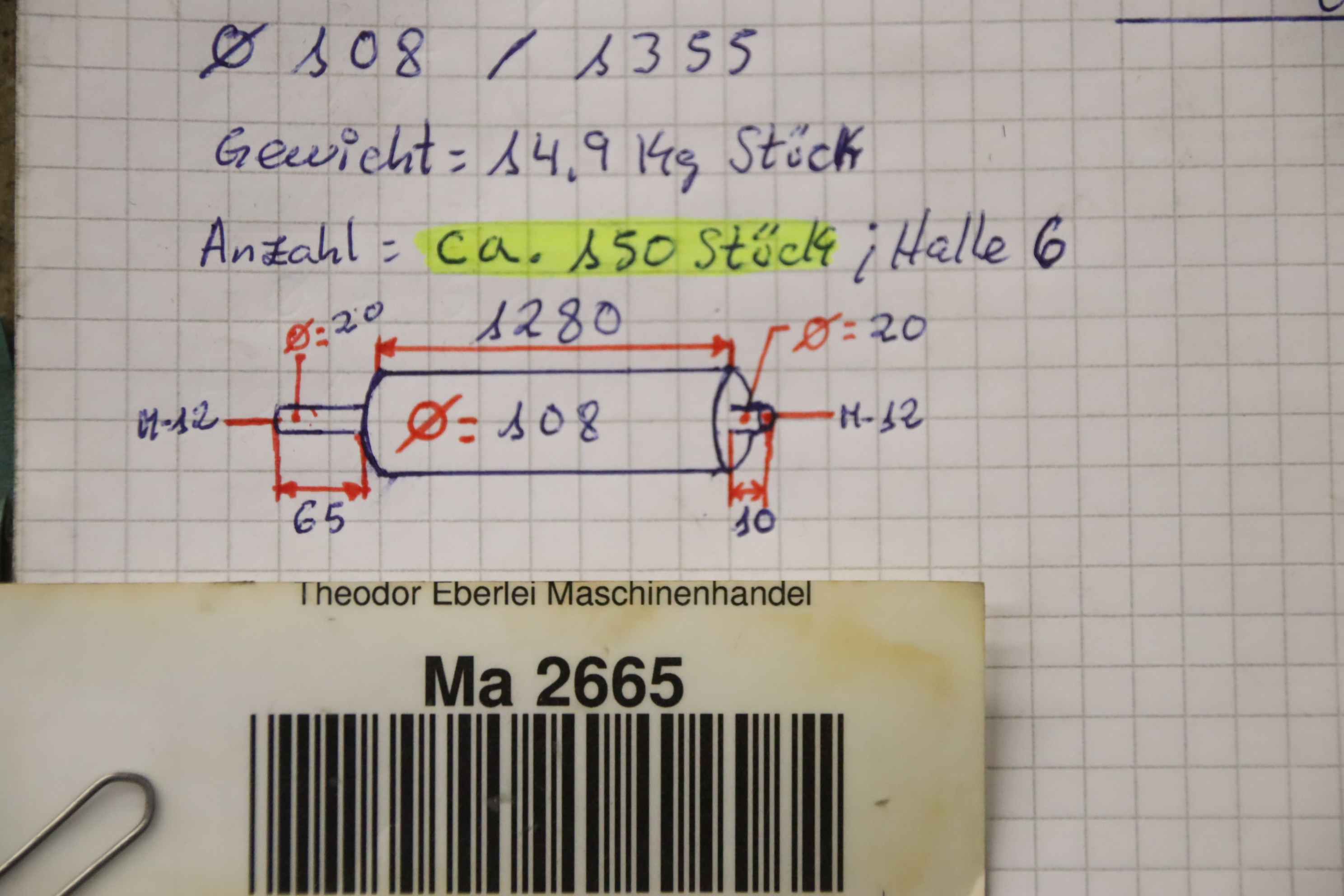 Modell: Ø 108 x 1280 mm
