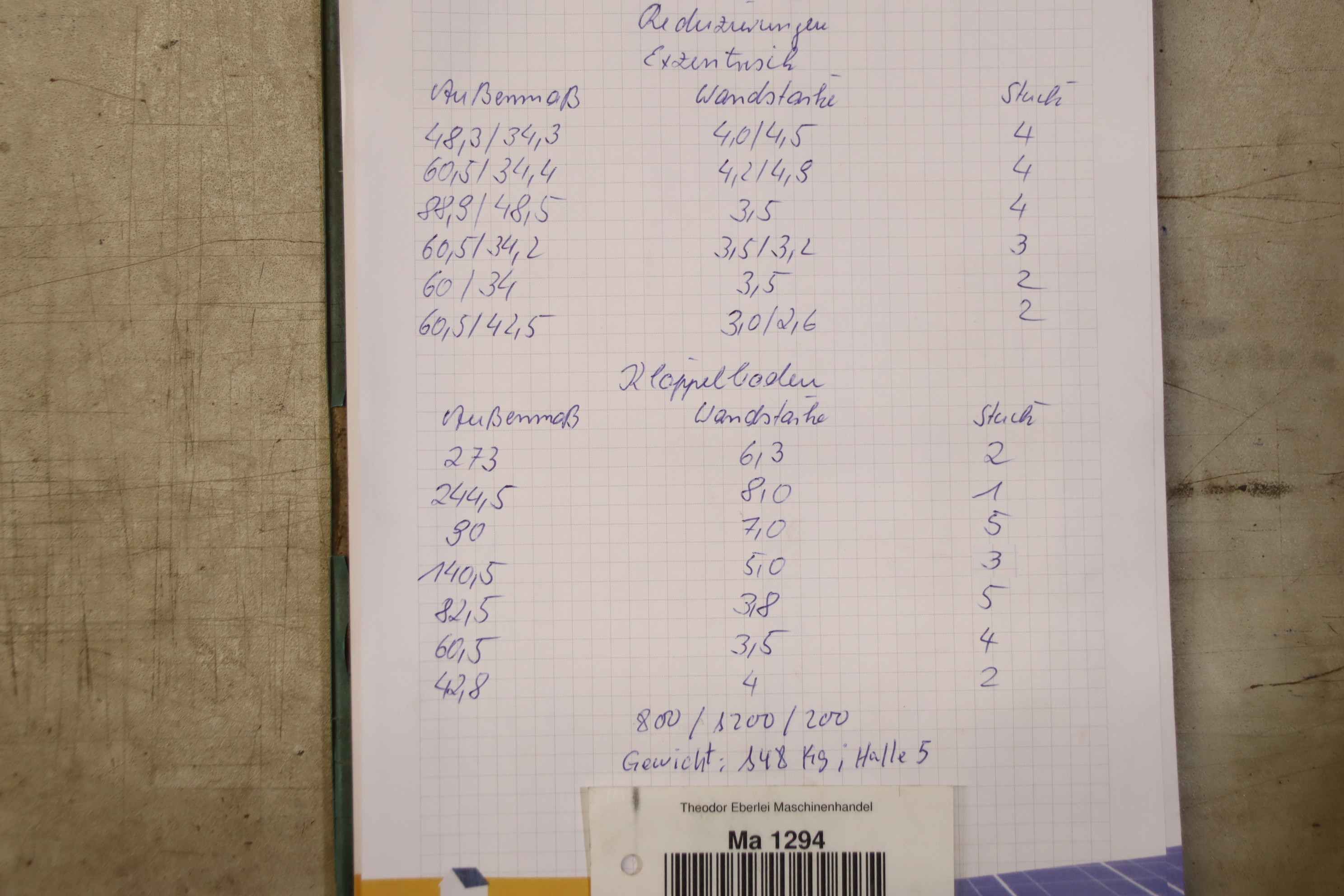 Maschinentyp: Schweißreduzierungen Klöppelboden 108 Stück 148 k
