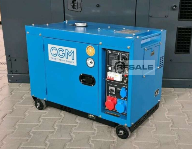 Diesel Stromaggregat 9 kVA - NEU E-Start - AVR - Abgasnorm Stage V - - - - - Hersteller: - CGM, Italien - - - - - Motor: - CGM, 4-Takt, Diesel, Luftgekühlt - Hubraum: 498 ccm - Leistung: 12 PS - - - - - Generator: - 9 kVA bei 400 Volt - 7 kVA bei 230 Volt - Spannung: 230 / 400 Volt - Frequenz: 50 Hertz - - - - - Starteinheit / Bedieneinheit: - Zündschloss zum Starten und Stoppen - Digitales Display mit Überwachungsanzeigen, wie z.B. Volt, Ampere, Hertz, kW, Betriebsstunden - - - - - Steckdosen: - 1x 400V 16A - 1x 230V 32A - 1x 230V Schuko - Inkl. FI-Schutzschalter - - - - - Ausstattung: - AVR Spannungsregler (somit können auch empfindliche Geräte betriebe ...
