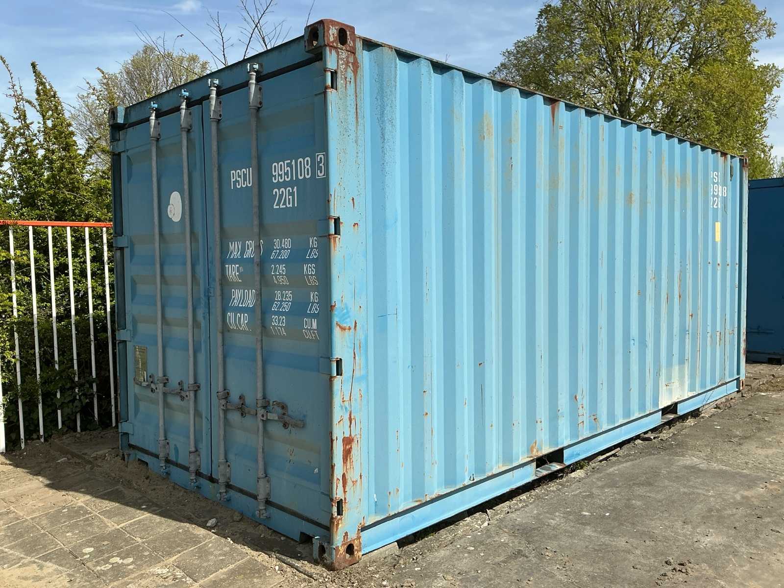 Ausgestattet mit: Curtainsider Swap Body Container (20 Fuß High Cube Äquivalent), ausgestattet mit Segelseiten (Vorhangsseite), ermöglicht das Be- und Entladen sowohl von hinten als auch von der Seite, Kennung: CSFU 124258 3, Typcode: 2DP9, Länge: ca. 6,06 m (20 Fuß-Klasse, Breite: ca. 2,50 m, Höhe: ca. 2,90 m (High Cube-Version), Hubraum: ca. 33,1 m³, maximales Gesamtgewicht (maximal): 30.480 kg, Eigengewicht: 3.100 kg, Nutzlast: ca. 27.380 kg, Vorhangseitige Plane an den Seiten, hintere Türen mit Verriegelungsstangen. Auktions-ID: A1-40132-265