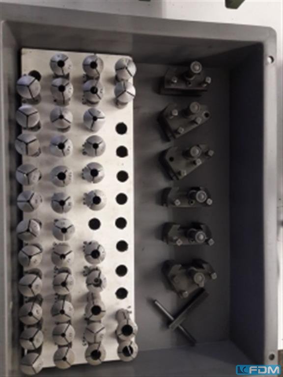 Die Maschine ist ausgestattet mit: - Chip-Förderband - 525mm Chuck - EZ Leitfaden - Werkzeugvorsetzer - Tailstock - Öl-Nebelfilter