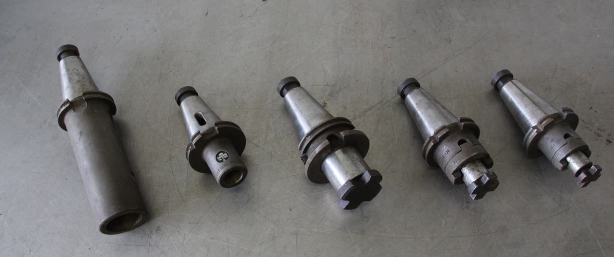 Werkzeugaufnahme, Fräsaufnahme, Fräswerkzeug-10x Aufnahmen: SK40-Adapter-Aufnahme: SK40-Aufnahme Werkzeug: MK1-Bohrfutter, Flächenspannfutter, Reduzierhülsen, Messerkopf, Walzenstirnfräser, Spindelwerkzeug-Gesamtlänge: mm-Verkauf: nur komplett-Gewicht: 8,5 kg