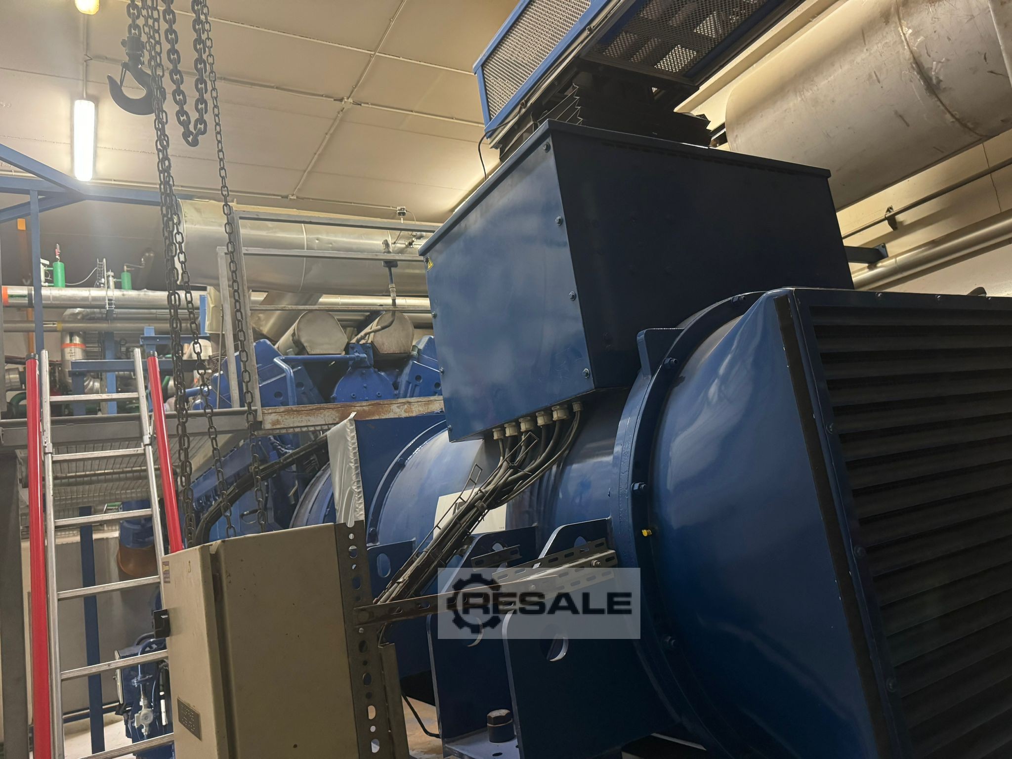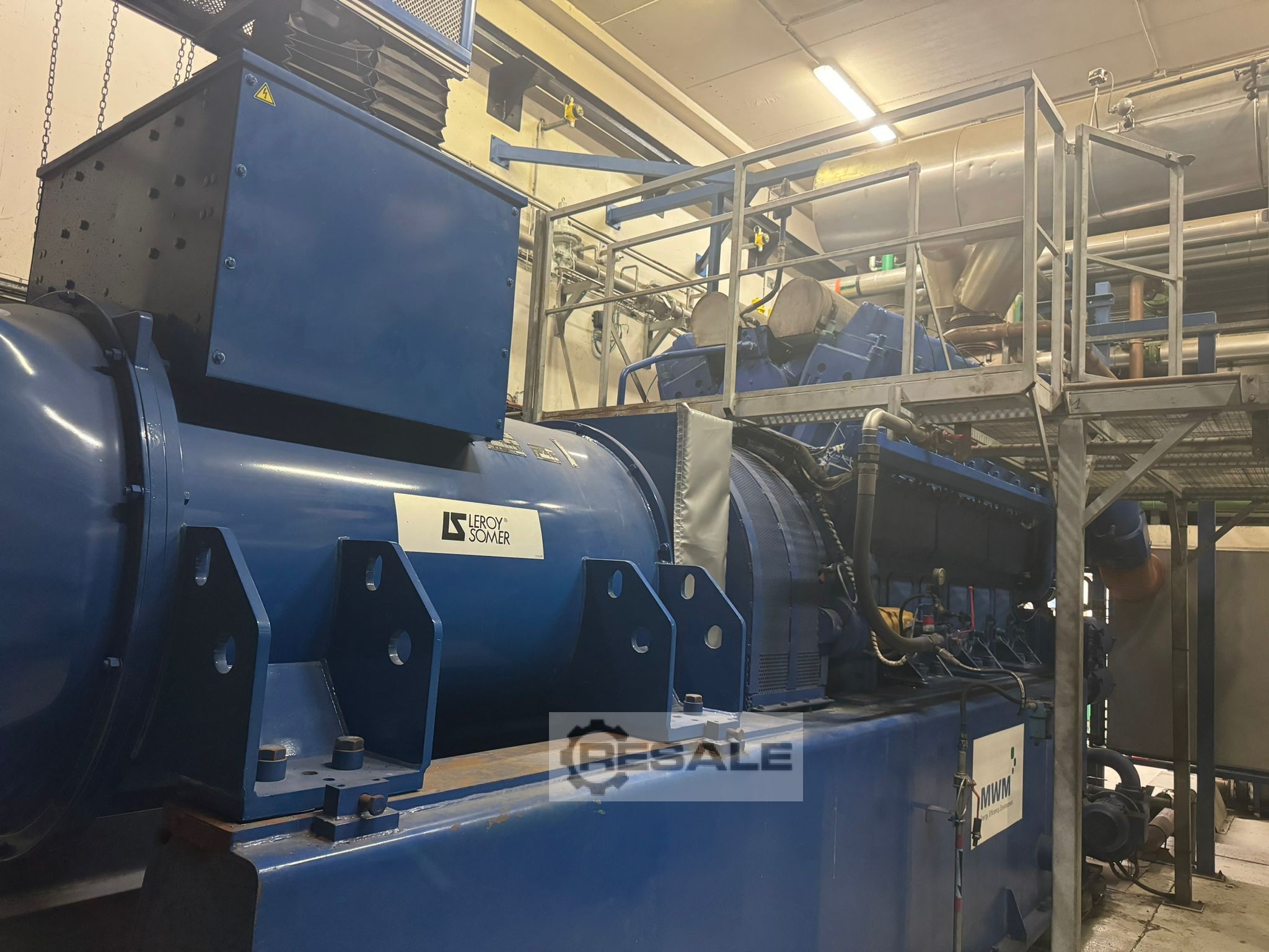 3. J616GS E 02 Motoren (3 Stück) 2000 kW Leistung: 2700 kVA Stamford Lichtmaschine Generalüberholung bei 30.000 Stunden Betriebsstunden seit Überholung: 36.000 Baujahr: 1999 1. J616 GSC 01 Motor (1 Stück) Leistung: 2700 kVA Stamford Lichtmaschine Generalüberholung Betriebsstunden seit Überholung: 40.000 Baujahr: 1997 Lieferumfang: Diane Bedienfeld ALSTHOM Transformatoren (4 Stück: 4x2500 kVA) Gasleitung Wärmetauscher Rauchgas-Wärmetauscher Pumps Tischkühler - (Heizkörper) Öltank
