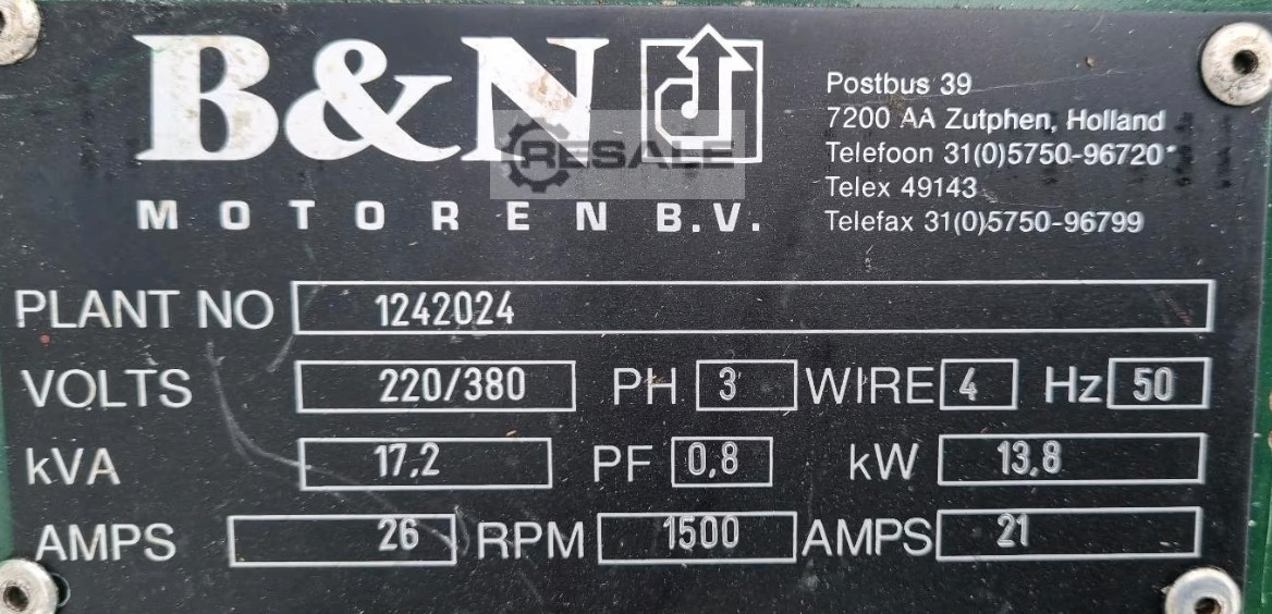 Nettopreis (ohne MwSt.) = 1.950,- € Bruttopreis (inkl. MwSt.) = 2.320,50 € - - - - - Lister Stromaggregat 17 kVA - - - - - Motor: - Lister (englischer Hersteller für Industrie Dieselmotoren) - 3 Zylinder - Diesel - Luftgekühlt - 1500 U/min. - - - - - Generator: - 17,2 kVA - 230 / 400 Volt - 50 Hertz - - - - - Zustand: - Gebraucht - Ein Probelauf wurde gemacht - Der Motor startet und läuft gut - Der Generator erzeugt keine Spannung - Ein gebrauchter Ersatzgenerator kann gegen Aufpreis dazu gekauft werden (siehe Bild 5) - - - - - Lieferumfang: - Lister Stromaggregat 17 kVA - bestehend aus Motor und Generator - verbaut auf einem Metallgrundrahmen - Gegen Aufpr ...