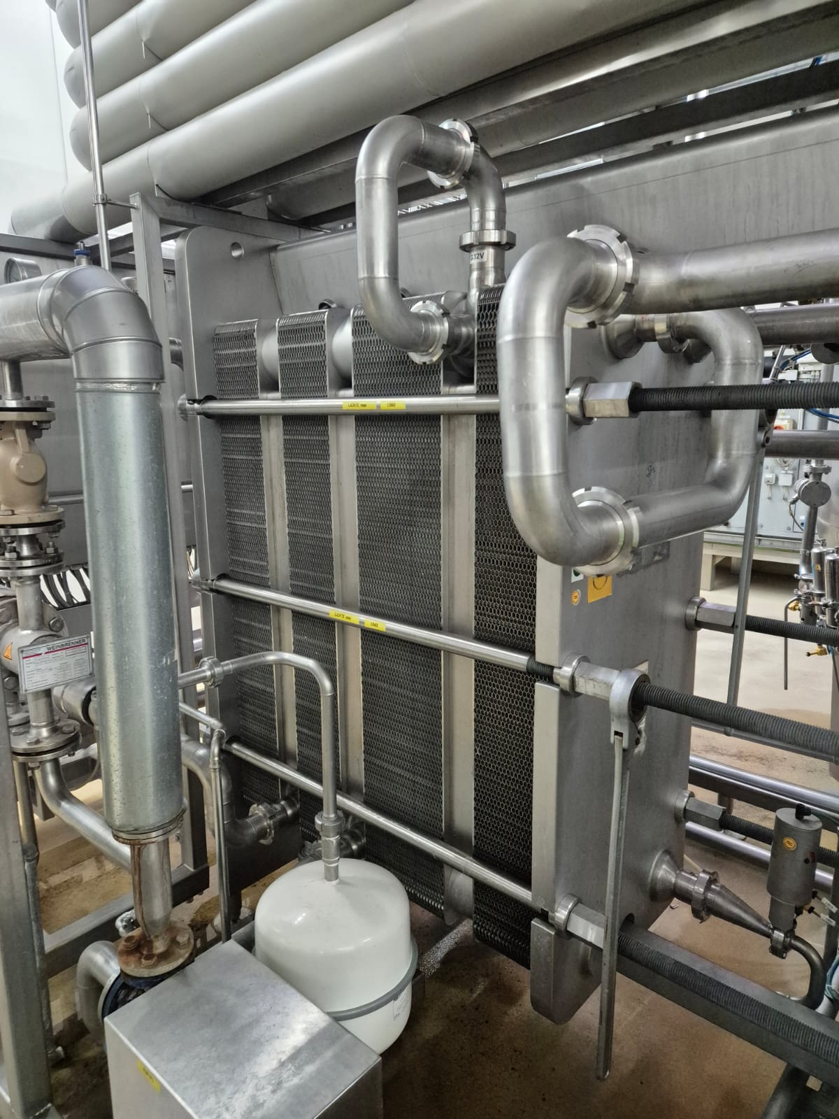 Übersicht Diese Kurzzeiterhitzung wurde 2001 von der deutschen Firma Krones / APV hergestellt. Das Gerät wurde zuvor in einer Mineralwasserproduktionsanlage in Deutschland betrieben. Nach dem Austausch der kompletten Anlage wurde die Maschine demontiert und einzeln verkauft. Sie ist sofort verfügbar und derzeit auf Lager. Der Grund für den Verkauf ist eine Anlagenmodernisierung. Technische Daten Anwendung: Alkoholfreie Getränke / Mineralwasser Leistung: Garantierter Durchsatz bis zu 22.000 l/h Einstellbar bis zu 10.000 l/h Prozessausführung: Plattenwärmetauscher mit Regenerations-, Heiz-, Entgasungs- und Kühlstufen Integrierte Entgasungseinheit Pufferbehälter mit interner Zirkulatio ...