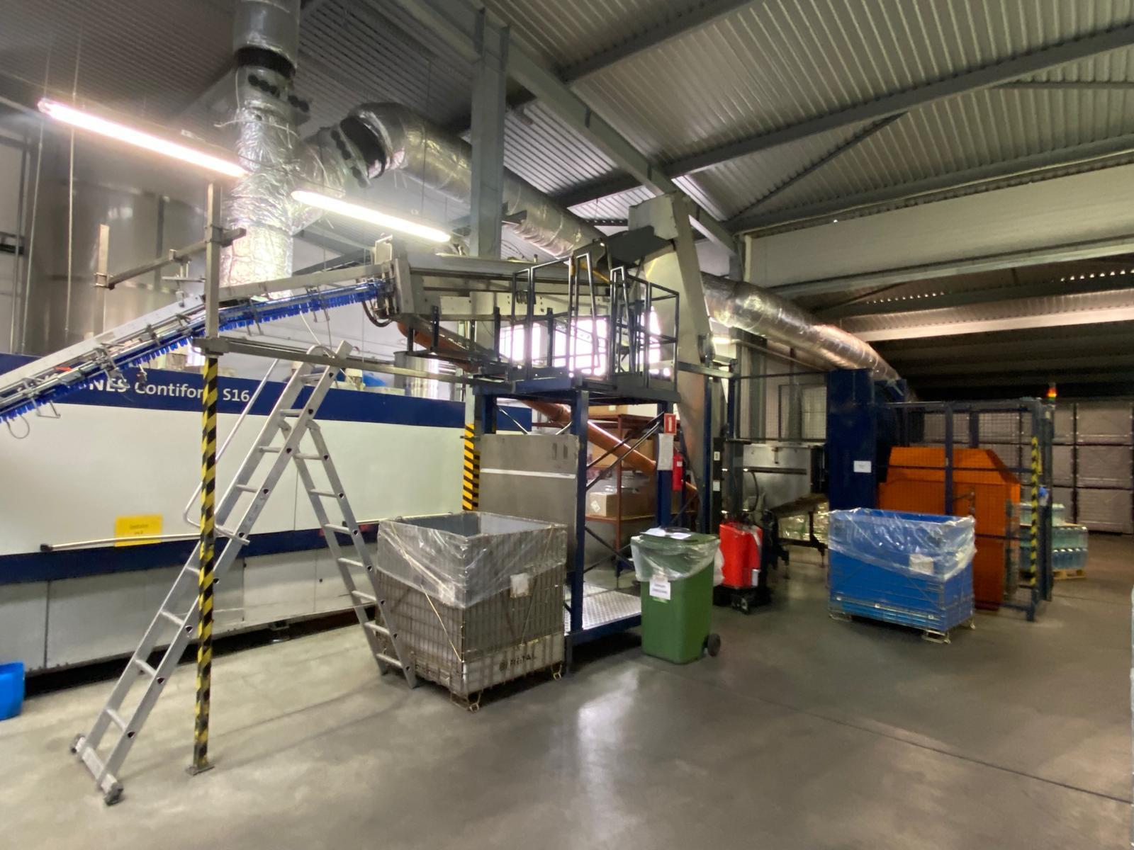 Übersicht  Diese komplette PET-Abfüllanlage wurde zwischen 1999 und 2007 von Krones (Deutschland) und anderen europäischen Lieferanten hergestellt. Sie ist derzeit noch in Betrieb und wird für die Abfüllung von kohlensäurehaltigem Wasser und Limonaden in 1,5-Liter-PET-Flaschen eingesetzt. Die Anlage hat eine Produktionskapazität von bis zu 16.000 Flaschen pro Stunde. Sie wurde regelmäßig gewartet und befindet sich in gutem Zustand. Verfügbarkeit: Ende August 2025. Technische Daten  Leistung: bis zu 16.000 Flaschen pro Stunde (basierend auf 1,5L PET-Flaschen) Formate: 1,5L PET-Flaschen (Kurzhals und Deckel) Flaschenmaterial: PET Füllertyp: Isobarischer Füller Baujahr: zwischen 1 ...