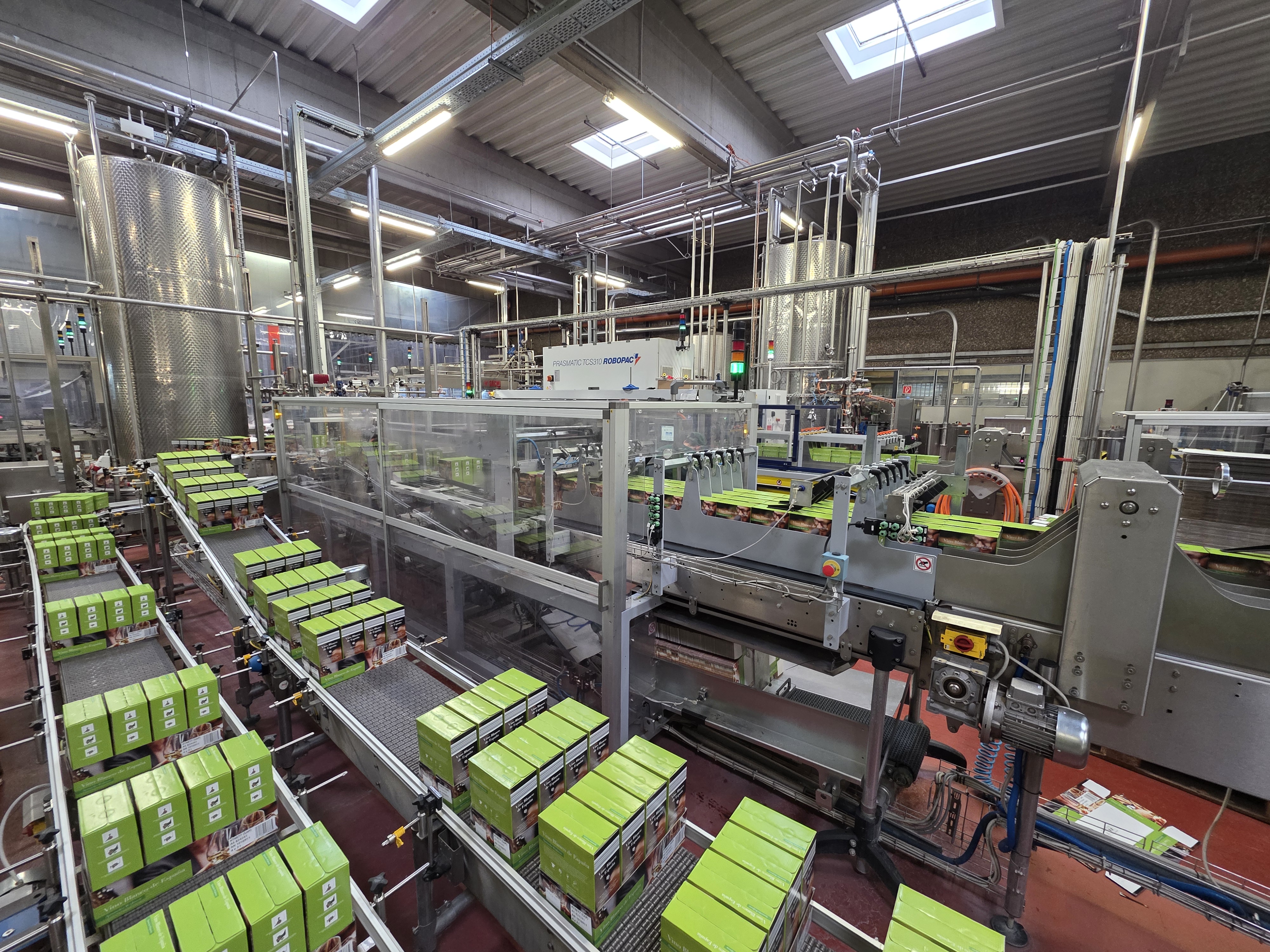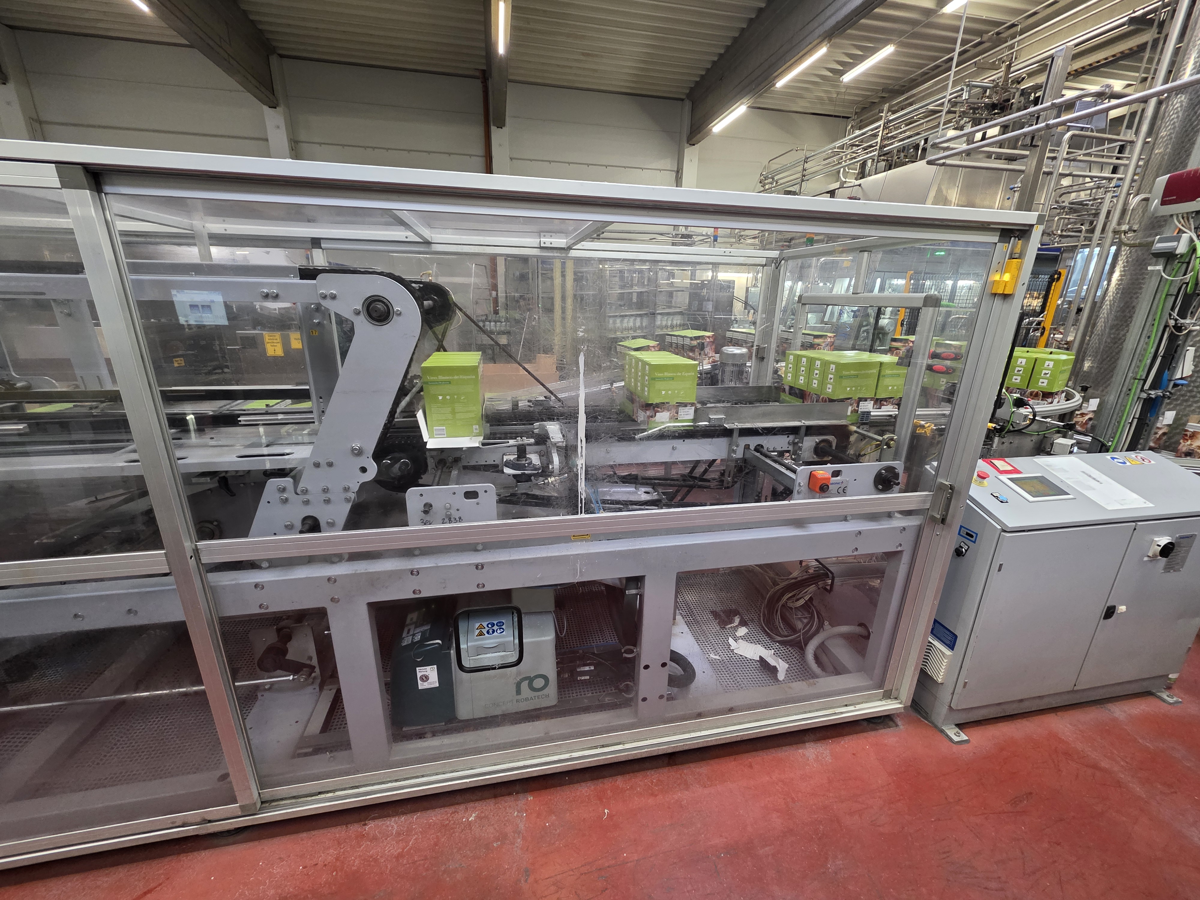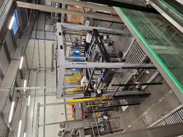 Übersicht  Dieses Roboter-Palettierungssystem wurde 2017 von der italienischen Firma BEMA hergestellt. Das System ist für die Palettierung von Bag-in-Box-Produkten (5 l und 19 l) für Wasser- und Sirupanwendungen ausgelegt. Es besteht aus einem Roboter-Palettierungssystem mit Fanuc-Steuerung, einem Palettenmagazin und einer Stretchwickelmaschine. Die Maschine war bis September 2025 in Betrieb und ist derzeit stillgelegt, jedoch weiterhin vor Ort installiert und vom Stromnetz getrennt. Das System ist voll funktionsfähig, sofort verfügbar und kann auf Anfrage besichtigt werden. Die Wartung wurde zweimal jährlich durchgeführt. Technische Daten  Leistung: 5-l-BIB: 650 BIB/h – 7 Palette ...