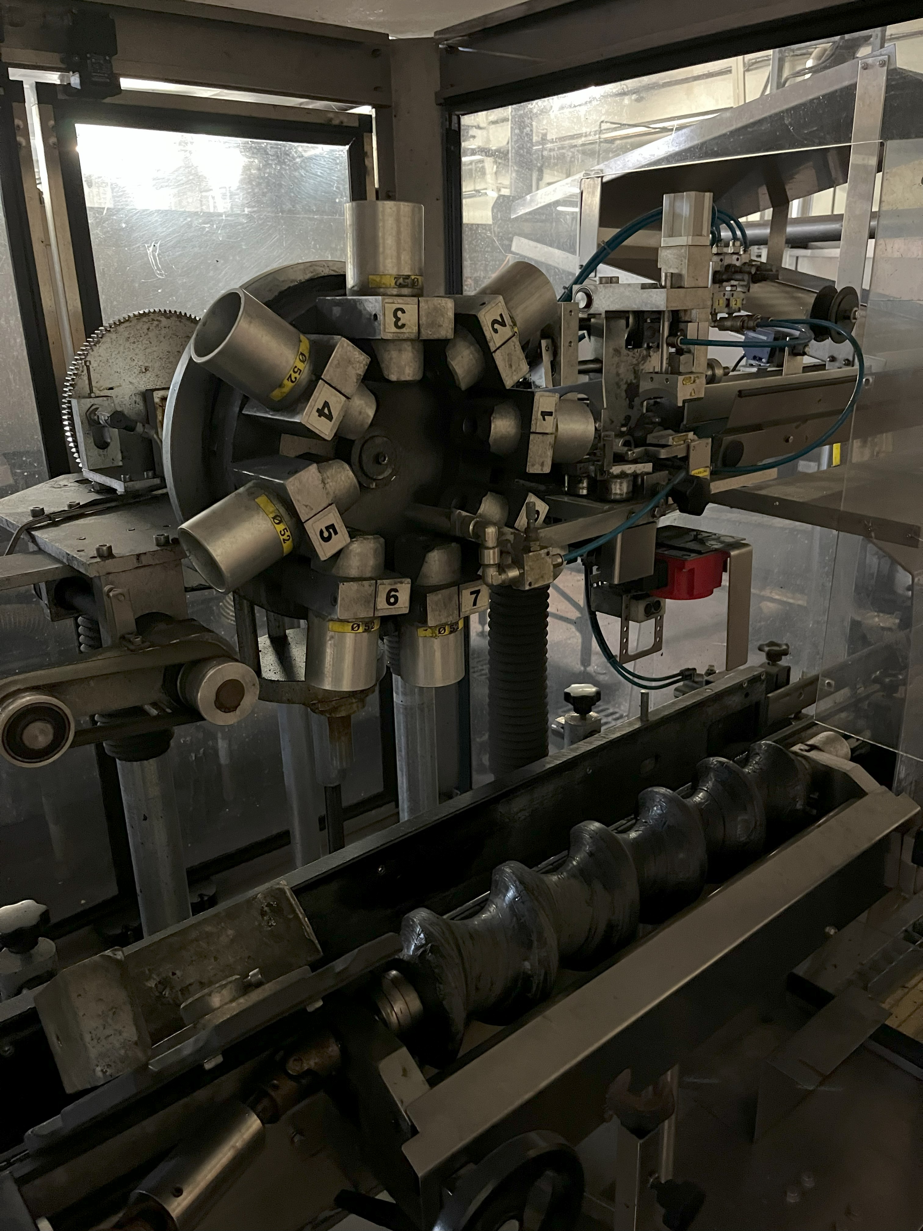 Übersicht  Diese Kapselmaschine wurde im Jahr 2006 von der italienischen Firma NORTAN SRL hergestellt. Diese Maschine wurde zum Aufbringen von Aluminiumkegeln auf 75cl Glas-Apfelweinflaschen verwendet und umfasst einen Kegelverteiler, einen Kegelofen und eine Kegelschleuder. Sie ist sofort verfügbar, da die Produktion in der Anlage im Jahr 2022 eingestellt wurde. Technische Daten  Leistung: 9.000 - 12.000 Flaschen pro Stunde Formate: 75cl-Glasflaschen (Apfelwein, Sekt) Abmessungen: L 200 cm × B 150 cm × H 250 cm Anwendung: Konusanwendung (Verteiler, Ofen, Schleuder) Umfang der Lieferung  Kegel-Verteiler Kegel-Ofen Kegelschleuder Bediener-Plattformen