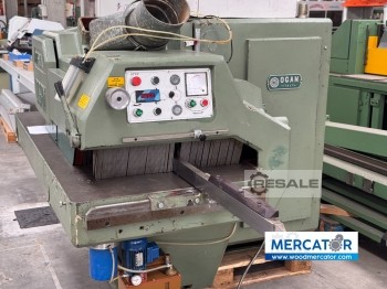 Hersteller: Paul Mehrblattsäge K34G 800 , Typ: K 34, Baujahr: 2000, Arbeitsbreite min-max.mm: 800, Arbeitshöhe min-max.mm: 40, Durchmesser Sägeblatt mm: 300, Schnitthöhe mm: ca.40, Drehzahl Sägewelle U/min: 6000, bewegliche Sägen: nein, Leistung Motor kW: 30, Leistung Vorschub kW: ca.4, Vorschub max m/min: 10-25, Splitterschutz: ja, Beschickung mit Vakuumheber: mit Abschieber, Abstapeln mit : Rollenbahn, inkl.Ersatzsägewellen ca.8 Stück, Baujahr :2000