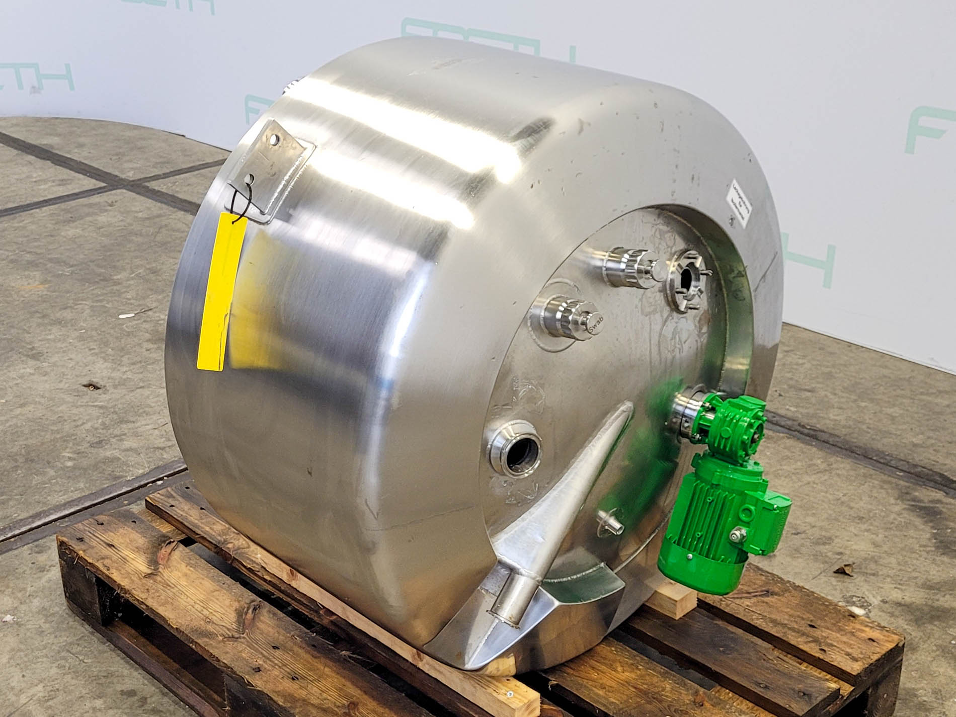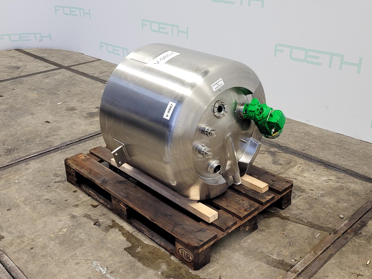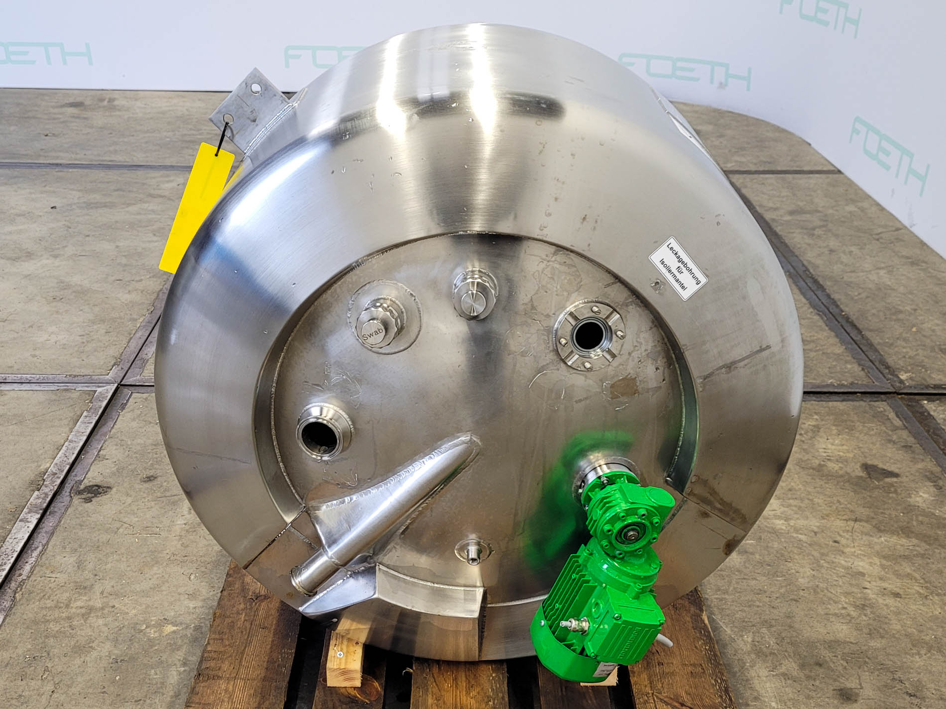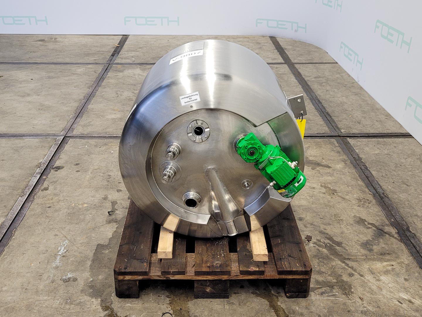 General SKU404U1217 StandortBarneveld HerstellerBaumgartner & Co. / Alois Binderberger №571 Baujahr1994 Pressure Betriebsdruck2.5 Bar Haupteigenschaften MaterialEdelstahl Inhalt238 Ltr. Druck2.5 Bar Spezifizierte Eigenschaften - Druckkessel MaterialEdelstahl 1.4301 (304), Edelstahl 1.4435 (316L) Inhalt238 Ltr. Kesselabmessungendia. 850x695 mm Klöpper Obenseitecheck Klöpperbodencheck MannlochDN300 ObenanschlüsseDN50 (CIP) Auslauf1 ½ Max. Temperatur-5/144 °C Mit Propellorrührwerkcheck (magnetic) Motor0.25 kW, 230/400 volt, 2720 rpm Wellendrehzahl± 200 rpm Information Platzbedarf1x1 m Totalhöhe0,9 m Gewicht220 kg Was Sie von Maschinen von Foeth erwarten können: -- Maschine  ...