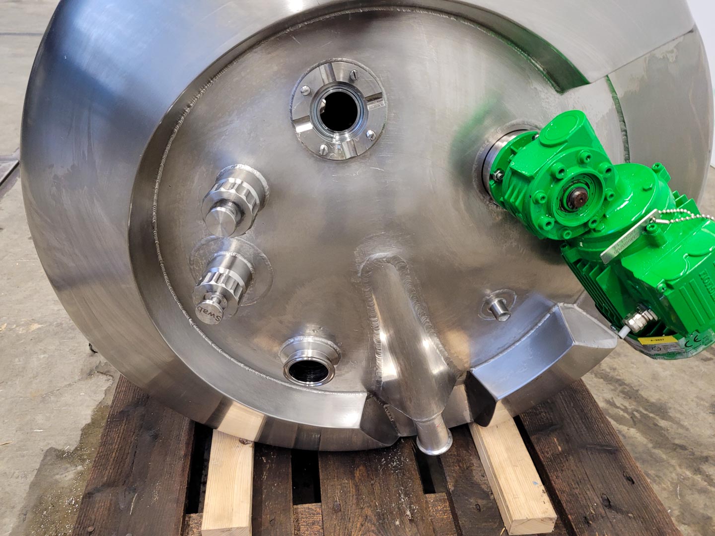 General SKU360U942 StandortBarneveld HerstellerGPI №290259-10 / 380T003 Baujahr2010 Pressure Betriebsdruck3 Bar Vakuum möglichcheck Anzahl der vertikalen Druckbehälter1 Haupteigenschaften MaterialEdelstahl Inhalt1960 Ltr. Druck3 Bar Vakuumcheck Spezifizierte Eigenschaften - Druckkessel MaterialEdelstahl 1.4301 (304), Edelstahl 1.4404 (316L) Inhalt1960 Ltr. (max. 2000 Ltr.) Kesselabmessungendia. 1450x1700 mm Klöpper Obenseitecheck Klöpperbodencheck Mannlochcheck ObenanschlüsseDN65, 1 ½ in, 2 in, 2 ½ in, 3 in Auslauf2 ½ in Max. Temperatur125 °C Information Gebaut auf Füsse4 Mit Schaltschrankcheck (as is) Gewicht800 kg CEcheck Platzbedarf1,5x1,5 m Totalhöhe2,2 m Zusät ...
