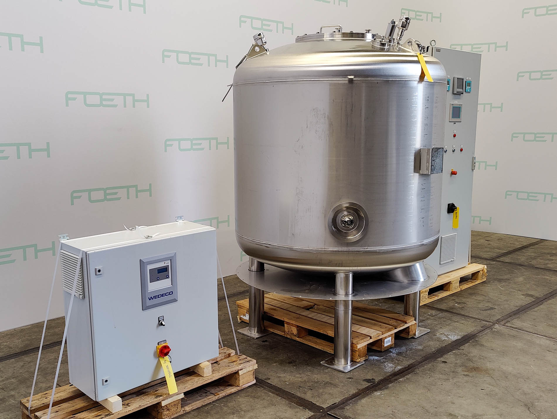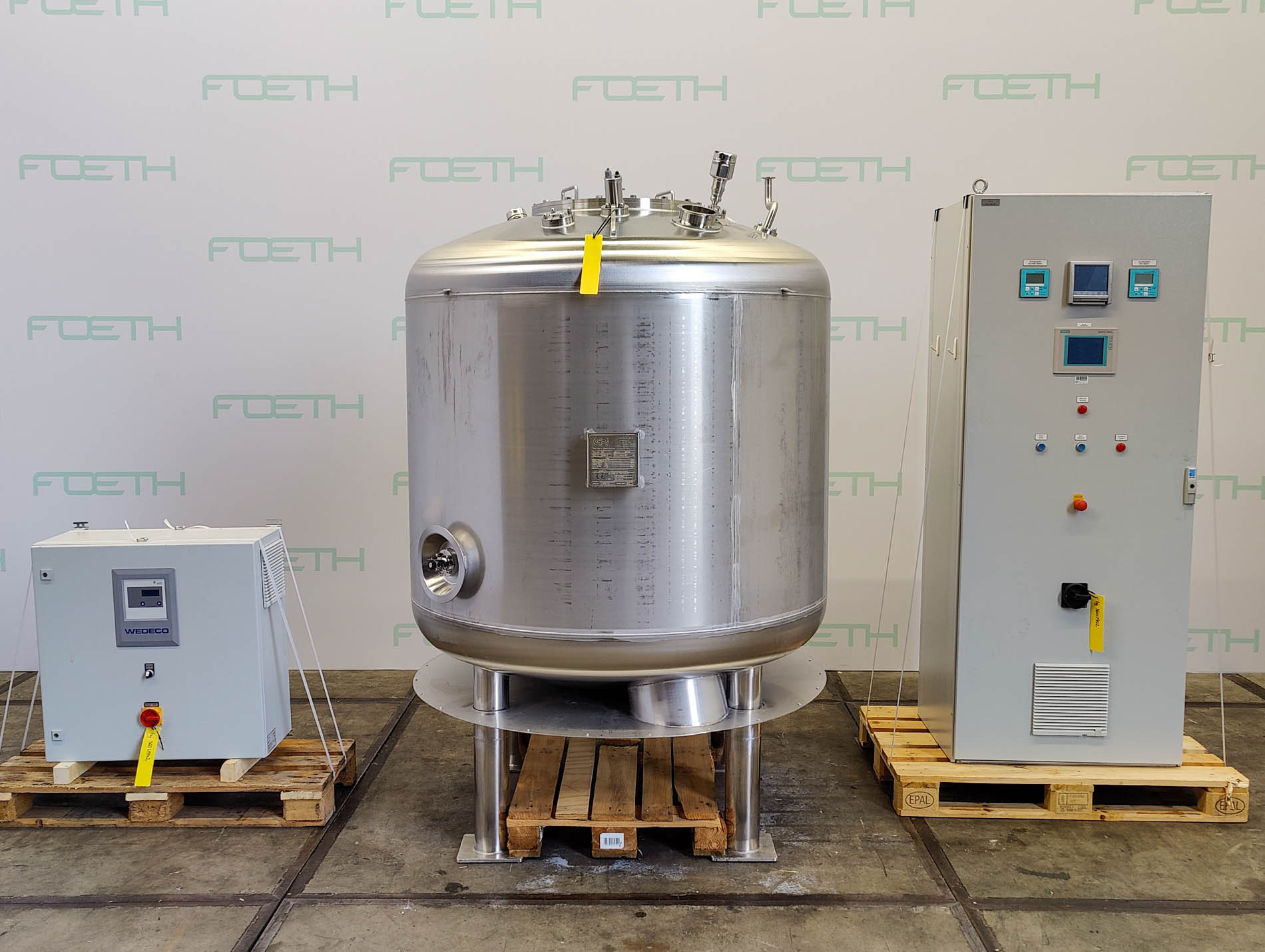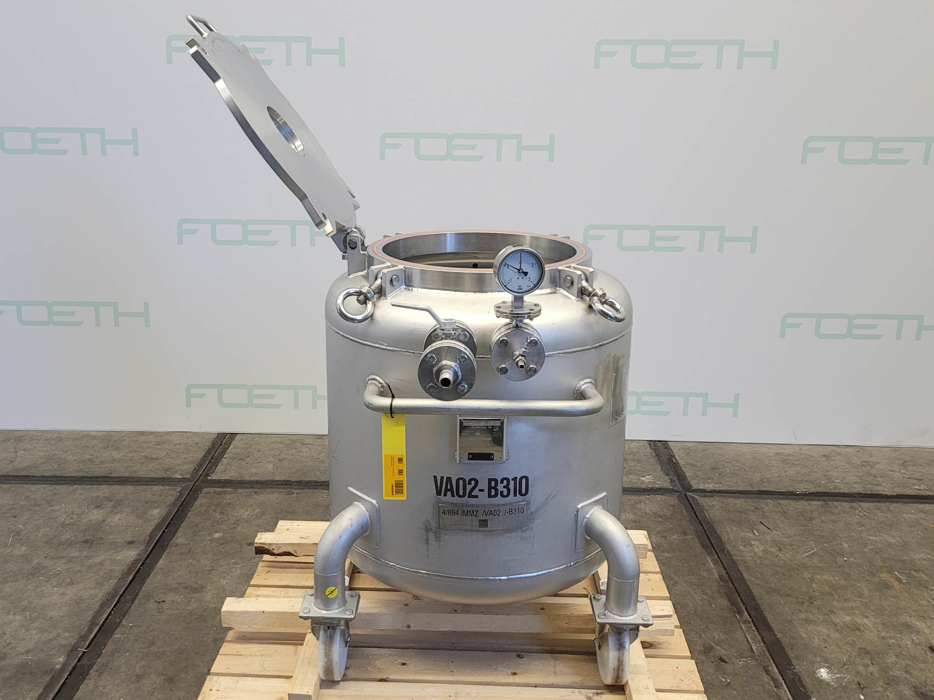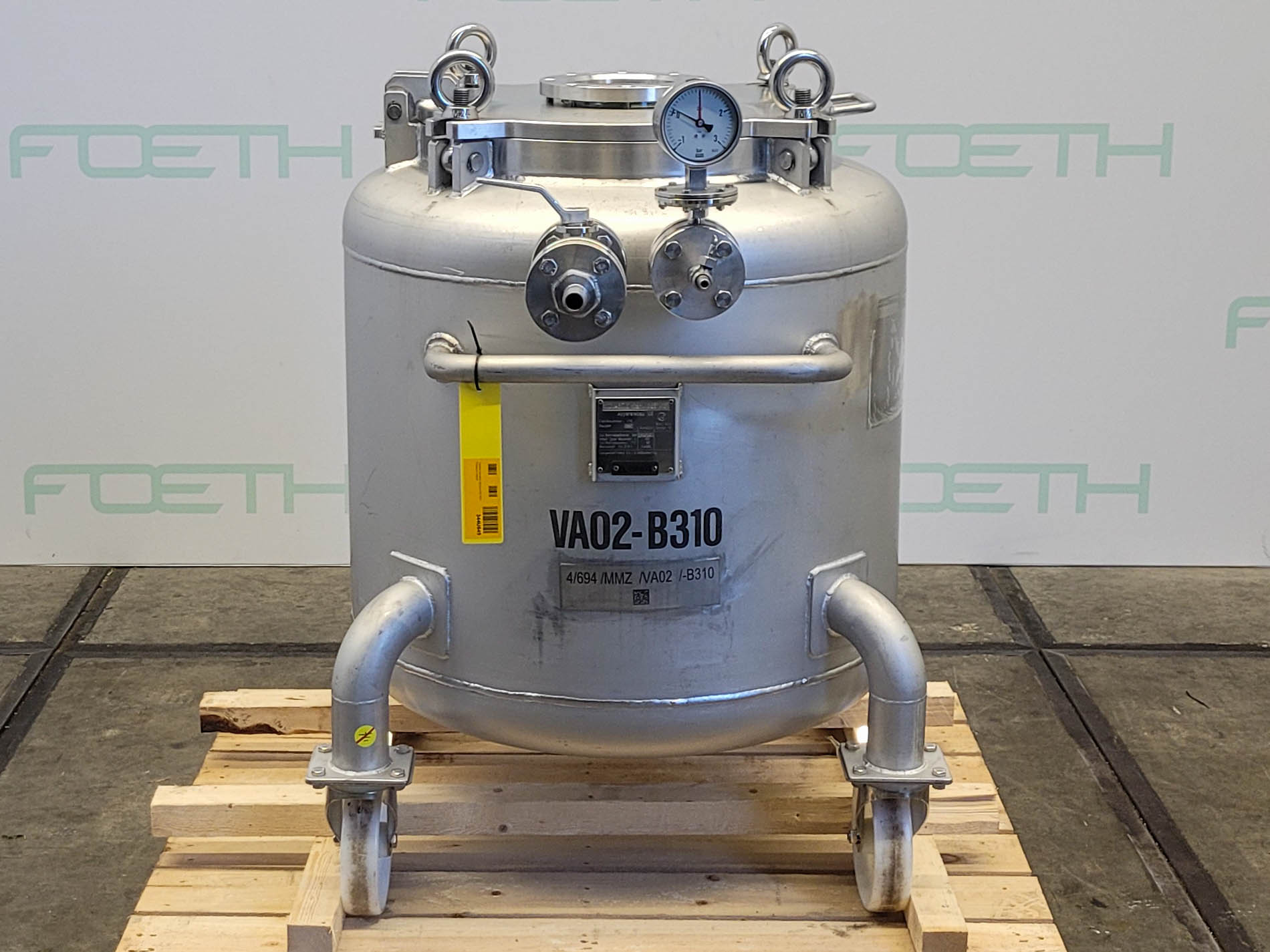 General SKU251U314 StandortBarneveld HerstellerPfaudler TypCH 4000 №64303 Baujahr1998 Pressure Betriebsdruck3 Bar Vakuum möglichcheck Anzahl der vertikalen Druckbehälter1 Haupteigenschaften MaterialGlas Inhalt4440 Ltr. Druck3 Bar Vakuumcheck Spezifizierte Eigenschaften - Druckkessel MaterialGlas - Emaille (WWG-9115) Benannte StelleTÜV Inhalt4440 Ltr. KesselabmessungenDIa: 1400x3200 mm Klöpper Obenseitecheck Klöpperbodencheck MannlochDN500 ObenanschlüsseDN100, DN80, DN50 AuslaufDN100 Max. Temperatur-20ºC/+150ºC Information Totalhöhe3,54 m Gewicht1787 kg Platzbedarf1,7x1,7 m Was Sie von Maschinen von Foeth erwarten können: -- Maschine funktioniert fähig -- Zu einem re ...