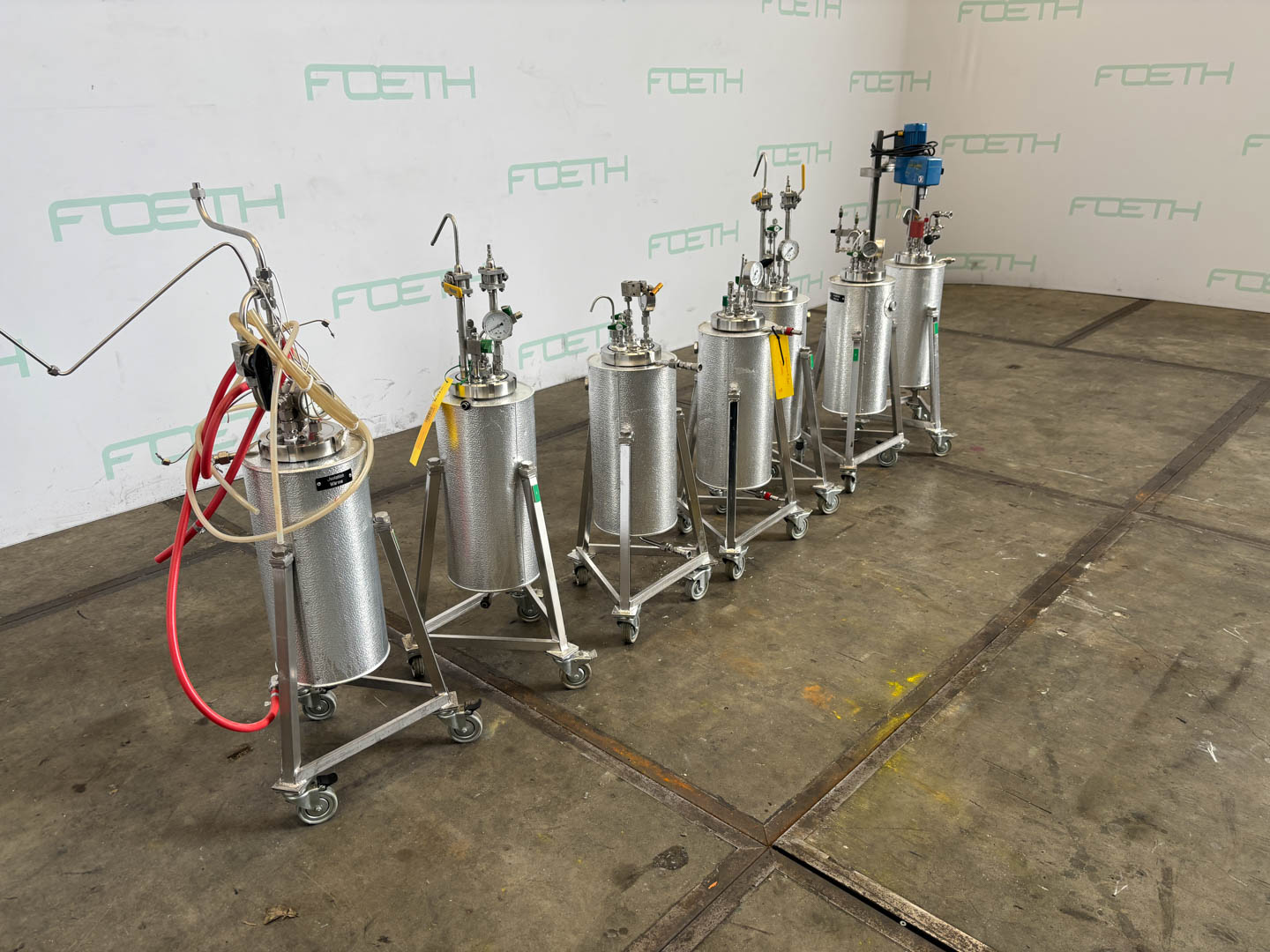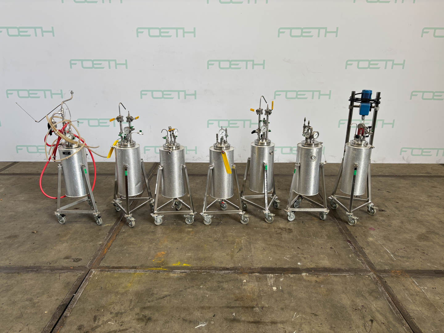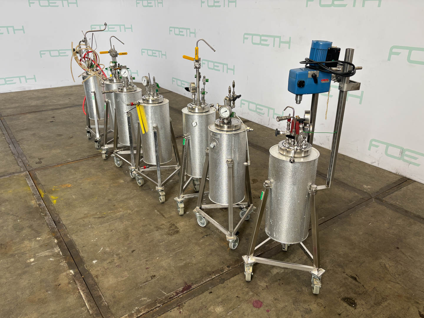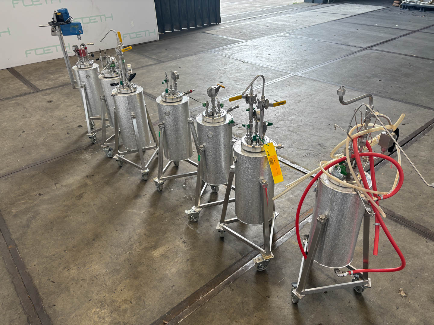 General SKU437W1583 StandortBarneveld HerstellerUnknown Baujahrunknown Pressure Betriebsdruck Doppelmantel10 Bar Haupteigenschaften MaterialEdelstahl Inhalt20 Ltr. Druck10 Bar Spezifizierte Eigenschaften - Druckkessel MaterialEdelstahl 1.4401 (316) Inhalt20 l. KesselabmessungenDia. 120x390 mm Klöpperbodencheck Mit Deckelcheck Obenanschlüssecheck Mit Doppelmantelcheck Mit Propellorrührwerkcheck Motor60watt, 220V, 25-2000rpm Wellendrehzahl25-2000rpm Information Gebaut auf FüsseOn wheels Platzbedarf0,40x0,40 m Totalhöhe1,10 m Gewicht7x 40kg Zusätzliche Spezifikationen7 pieces,  with pressure gauge 1x with Ika stirrer Was Sie von Maschinen von Foeth erwarten können: -- Maschine  ...