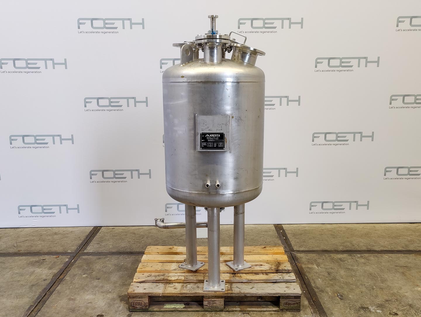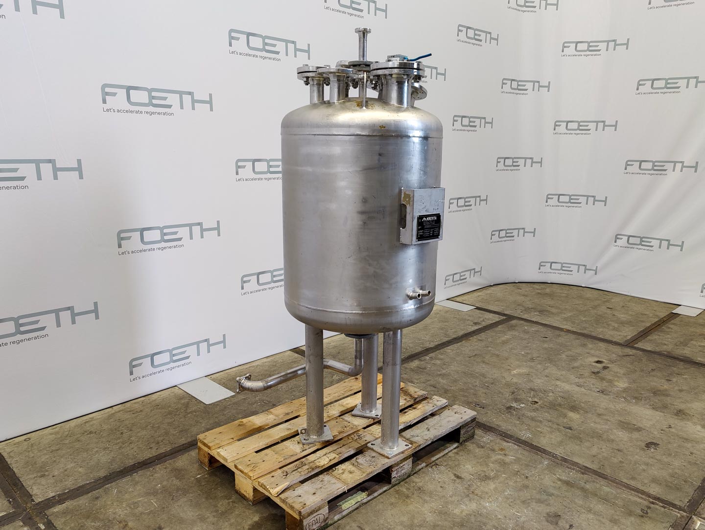 General SKU345S1058 StandortBarneveld HerstellerKresta TypPufferbehalter №94071-3 Baujahr1994 Pressure Betriebsdruck3.2 Bar Vakuum möglichcheck Haupteigenschaften MaterialEdelstahl Inhalt250 Ltr. Druck3.2 Bar Vakuumcheck Spezifizierte Eigenschaften - Druckkessel MaterialEdelstahl 1.4571 (316Ti) Inhalt250 l Kesselabmessungen700 x 1000 mm Klöpper Obenseitecheck Klöpperbodencheck MannlochDN150 (inspection lid) ObenanschlüsseDN50 (3x), DN25 Auslaufdia. 45 mm Max. Temperatur-10/100 °C Information Gebaut auf Füssecheck Gewicht250 kg Platzbedarf0,75x0,7 m Totalhöhe1,9 m Was Sie von Maschinen von Foeth erwarten können: -- Maschine funktioniert fähig -- Zu einem reduzierten Pre ...
