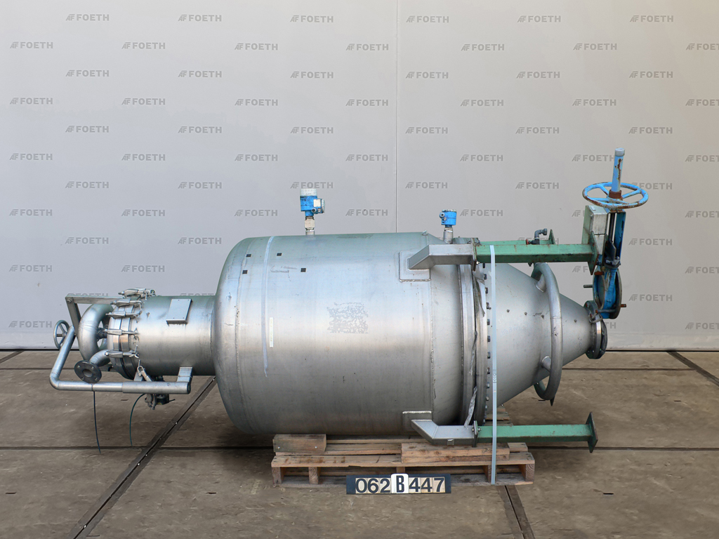 General SKU268N283 StandortBarneveld HerstellerWilhelm Schmidt TypGEV 1000 №94.0119 Baujahr2006 Pressure Betriebsdruck1 Bar Anzahl der vertikalen Druckbehälter1 Haupteigenschaften MaterialEdelstahl Inhalt1120 Ltr. Druck1 Bar Spezifizierte Eigenschaften - Druckkessel MaterialEdelstahl Inhalt1120 Ltr Kesselabmessungendia. 1200mm x1300 mm Klöpper Obenseitecheck Klöpperbodencheck Max. Temperatur-60/50 degr.C. Information Platzbedarf2,6 x 1,4 M Totalhöhe1,8 M Gewicht400 KG Zusätzliche Spezifikationenmit Auffangbehälter Was Sie von Maschinen von Foeth erwarten können: -- Maschine funktioniert fähig -- Zu einem reduzierten Preis im Vergleich zu Neuem -- Bereit, überall auf der W ...
