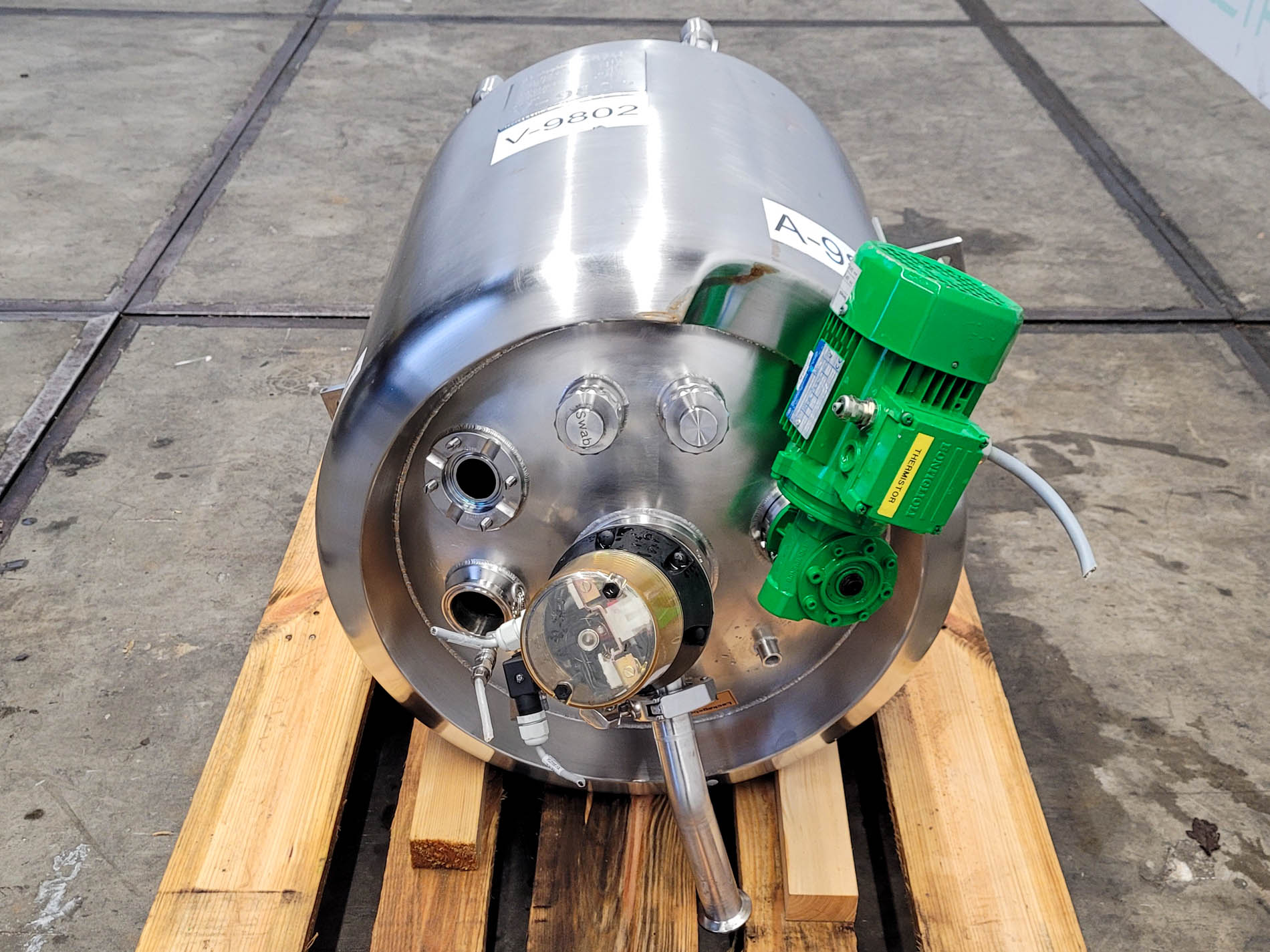 General SKU430W1384 StandortBarneveld HerstellerEdelstahlbau Tannroda Typ350 l №1765 Baujahr2017 Spezifizierte Eigenschaften - Druckkessel MaterialoberflächeSpiegel poliert Pressure Betriebsdruck6 Bar Vakuum möglichcheck Anzahl der vertikalen Druckbehälter1 Haupteigenschaften MaterialEdelstahl Inhalt350 Ltr. Druck6 Bar Drueckkessel MaterialEdelstahl 1.4404 (316L) Benannte StelleClosed Inhalt450 l., (350 l.) KesselabmessungenDia. 800x800 mm Klöpperbodencheck MannlochDN400 Obenanschlüssecheck AuslaufDN30 Max. Temperatur-20°C/+200°C Information Gebaut auf Füssecheck and wheels Gewicht500 kg CEcheck Platzbedarf1,10x1,10 m Totalhöhe1,70 m Zusätzliche Spezifikationen- mir ...