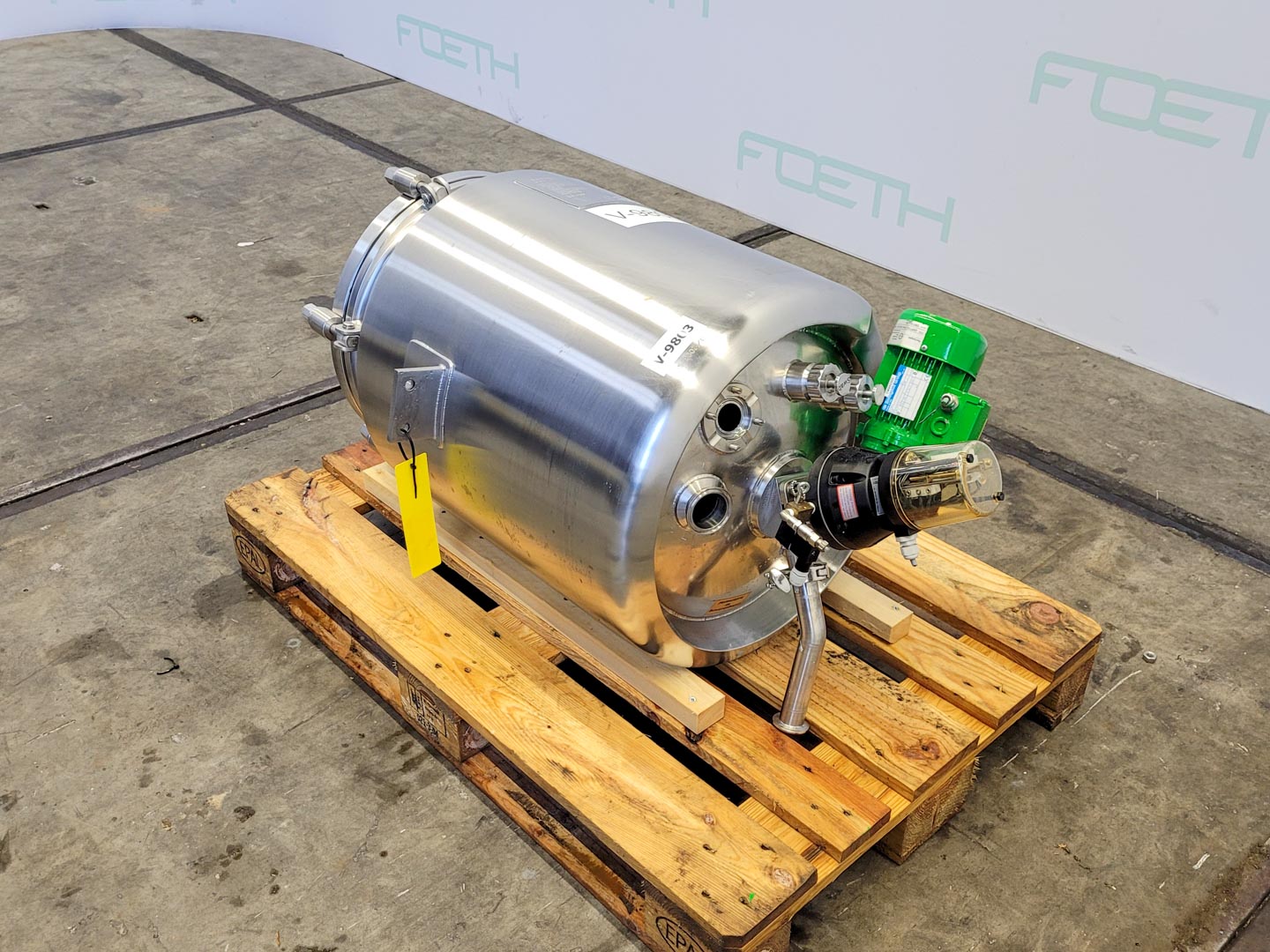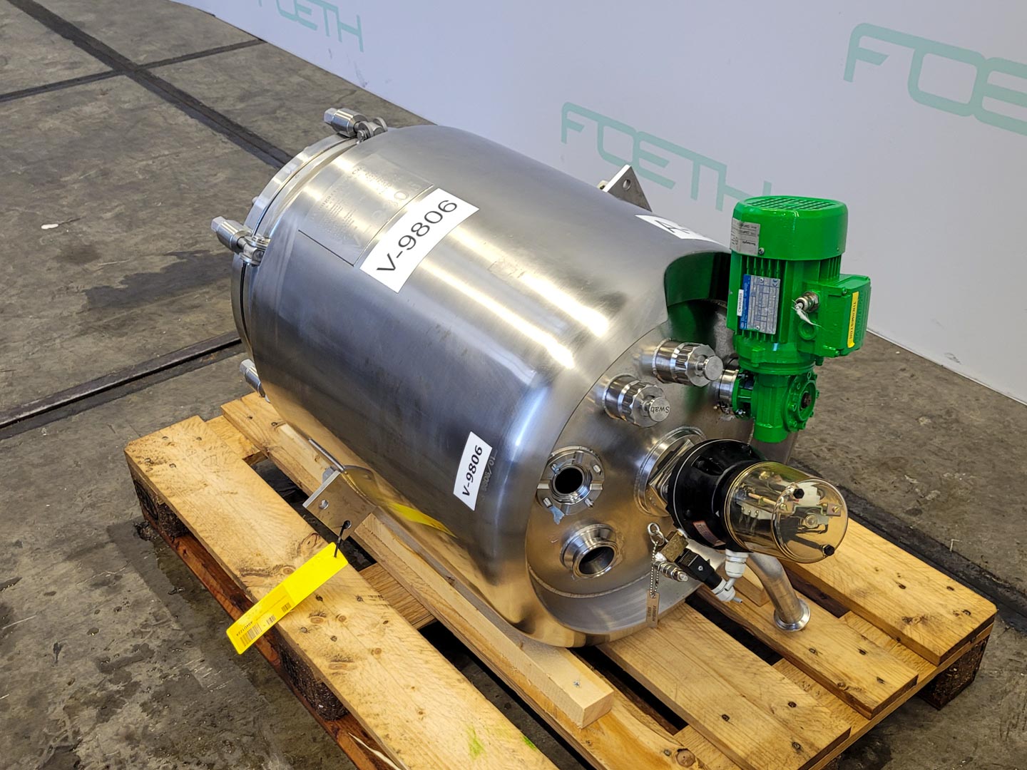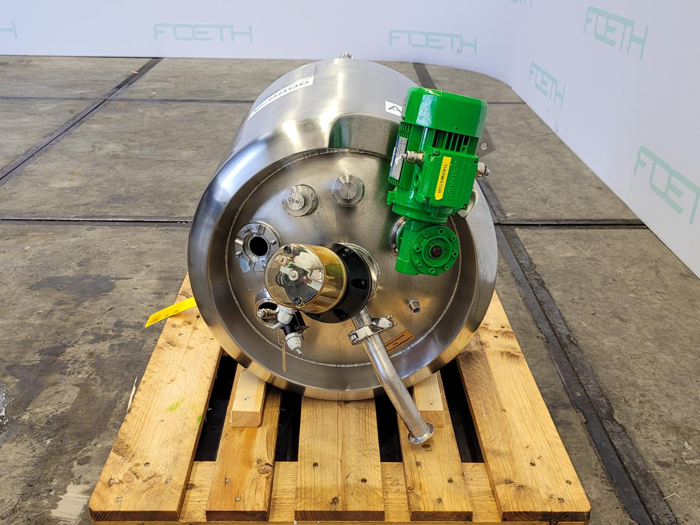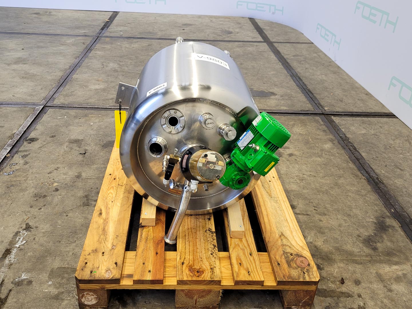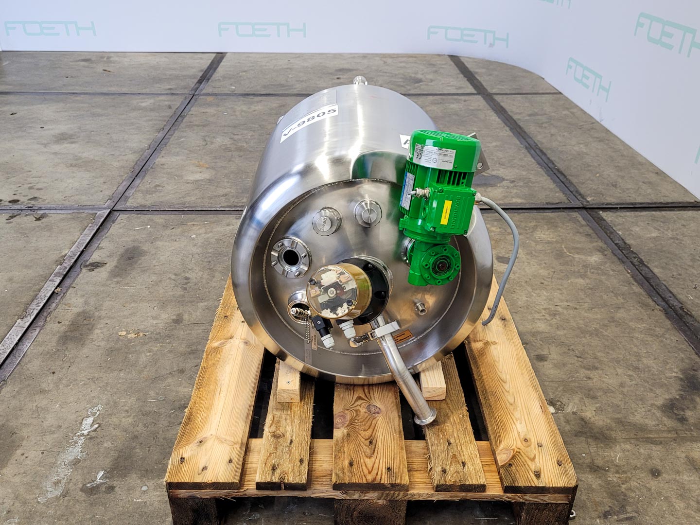 General SKU200T008 StandortBarneveld Herstellerullmann & Co Gmbh №5225-A1 Baujahr2001 Pressure Betriebsdruck0 Bar Haupteigenschaften MaterialEdelstahl Inhalt3000 Ltr. Motor7.5 KW Spezifizierte Eigenschaften - Rührkessel MaterialEdelstahl 1.4571 (316Ti) Geschlossener Rührkesselcheck Inhalt3000Ltr. KesselabmessungenDia 1800x1800mm Konische Bodencheck Flache Obenseitecheck MannlochDia:500mm ObenanschlüsseDN100(3x), DN 50(2x) AuslaufDN80 Max. Temperatur90°C Mit Propellorrührwerkcheck Motor1,5kW, 230/400Volt, 1410rpm Wellendrehzahl334rpm Information Gebaut auf Füssecheck Platzbedarf2,10x1,8m Totalhöhe2,9m Gewicht600kg Was Sie von Maschinen von Foeth erwarten können: -- Masch ...