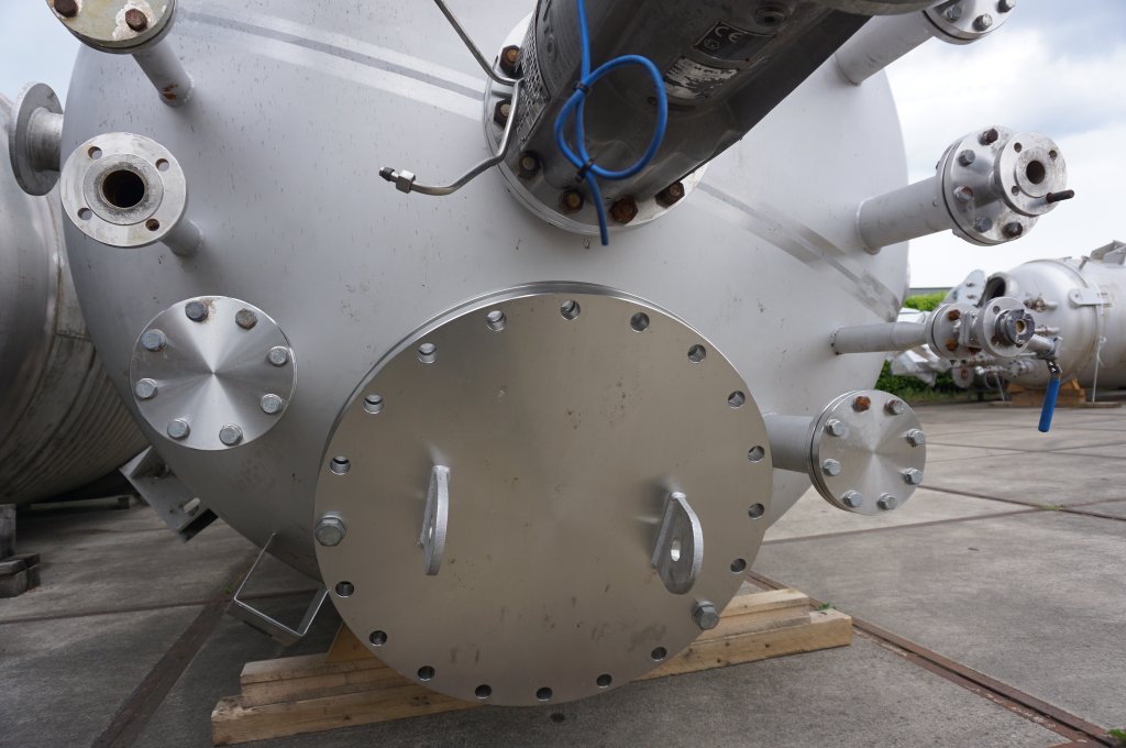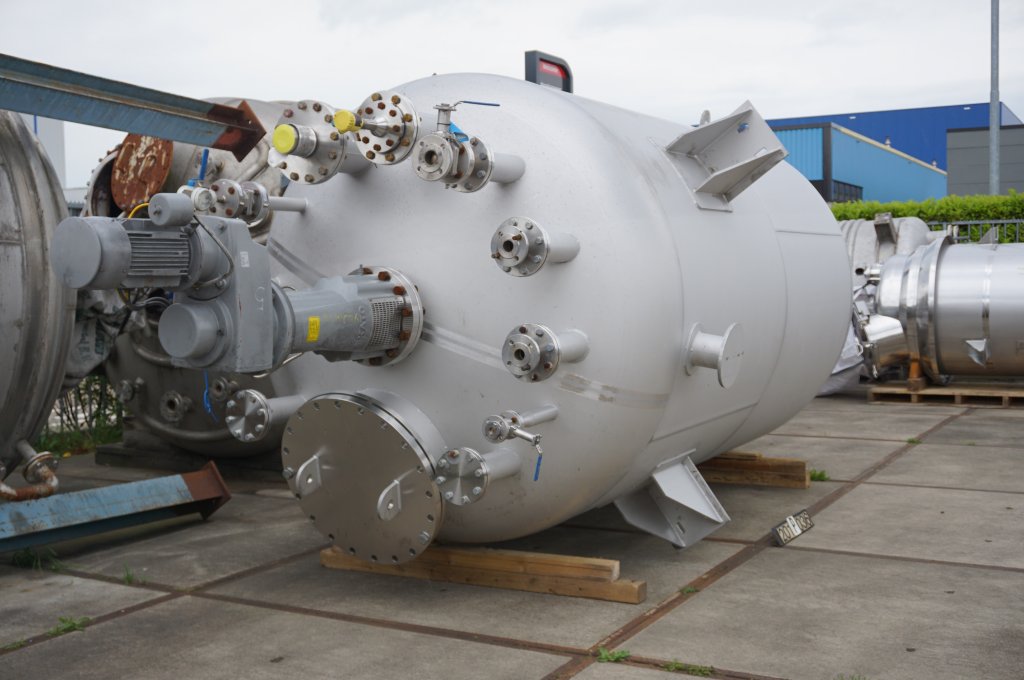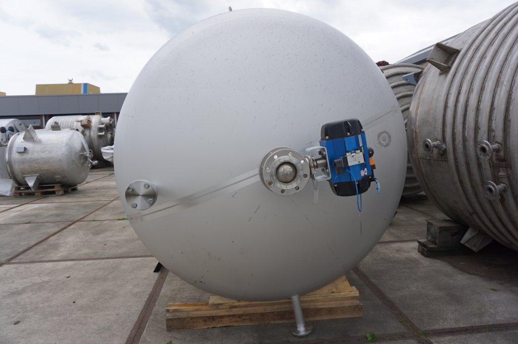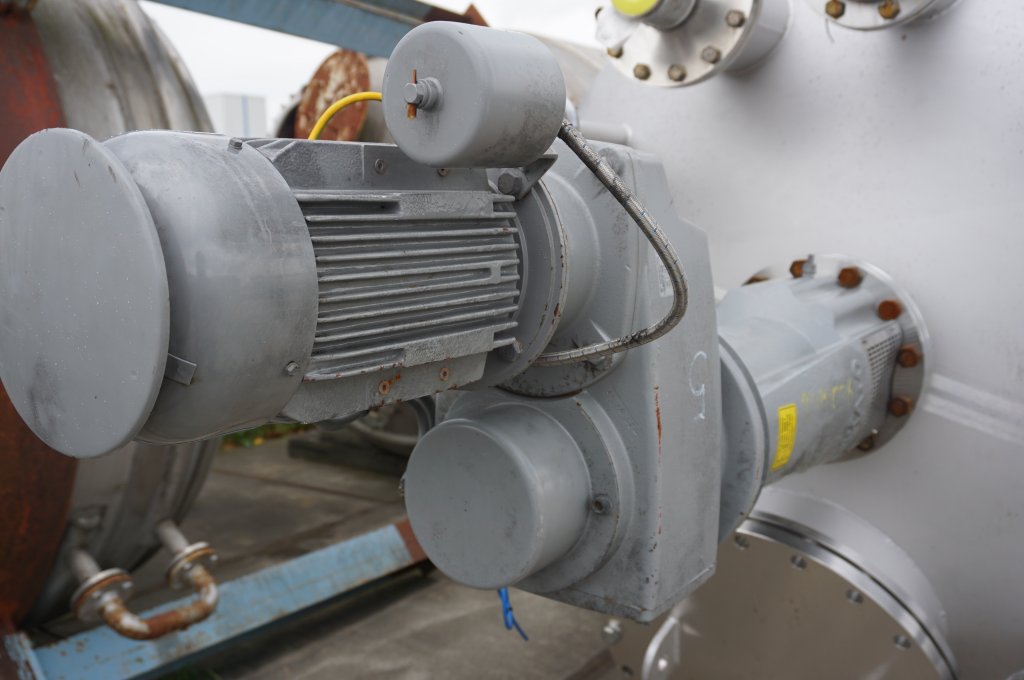 General SKU201P036 StandortBarneveld HerstellerVertikale druktank (1x), Fabrikaat leering Enschede Apparatenbouw B.V. №No.48951-6 Baujahr2012 Pressure Betriebsdruck3.5 Bar Vakuum möglichcheck Anzahl der vertikalen Druckbehälter1 Haupteigenschaften MaterialEdelstahl Inhalt12250 Ltr. Druck3.5 Bar Spezifizierte Eigenschaften - Druckkessel MaterialEdelstahl 1.4404 (316L) Inhalt12.250 Ltr Kesselabmessungendia. 2100x2940mm Klöpper Obenseitecheck Klöpperbodencheck Mannlochdia.600mm Obenanschlüsse(11x) Auslaufdia. 100mm with ballvalve Max. Temperatur140 Degr..C. Mit PropellorrührwerkEkato, type EM-2080 Impeller EVPR2-25 Motor4.0 KW, 400 Volt (II 2G Ex de IIC T4 - ATEX Wellendrehzahl+/ ...