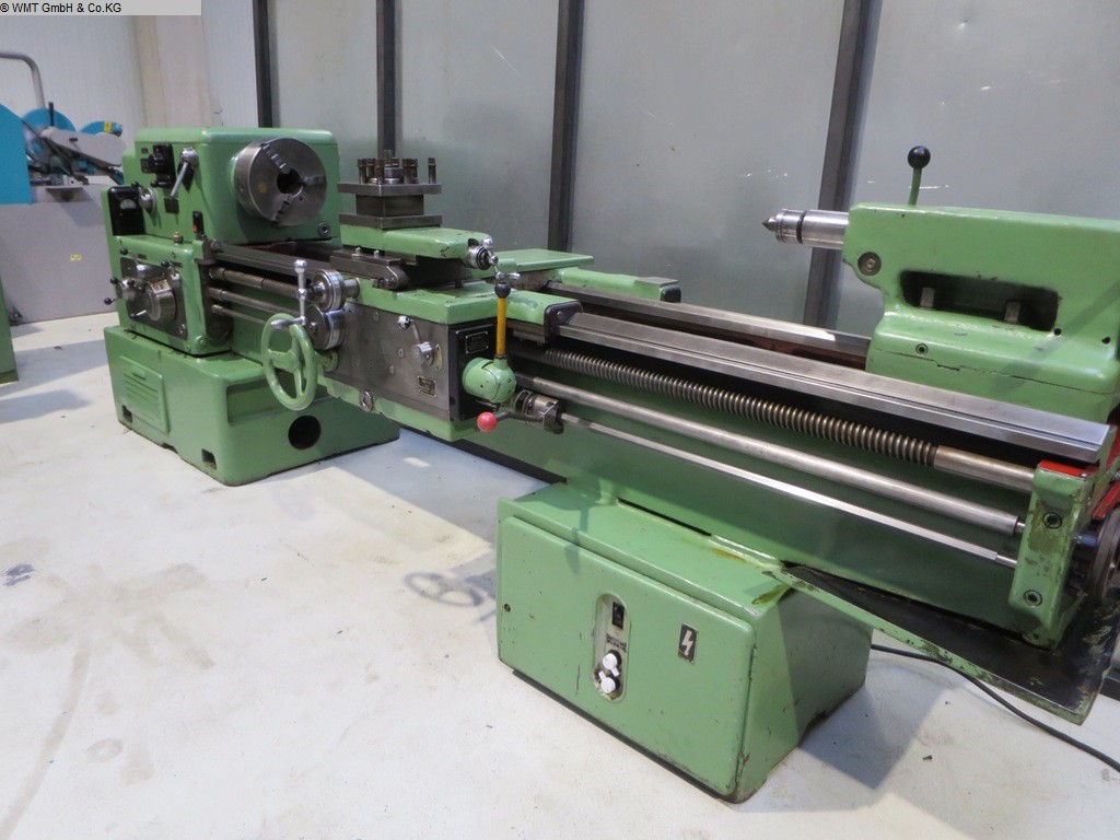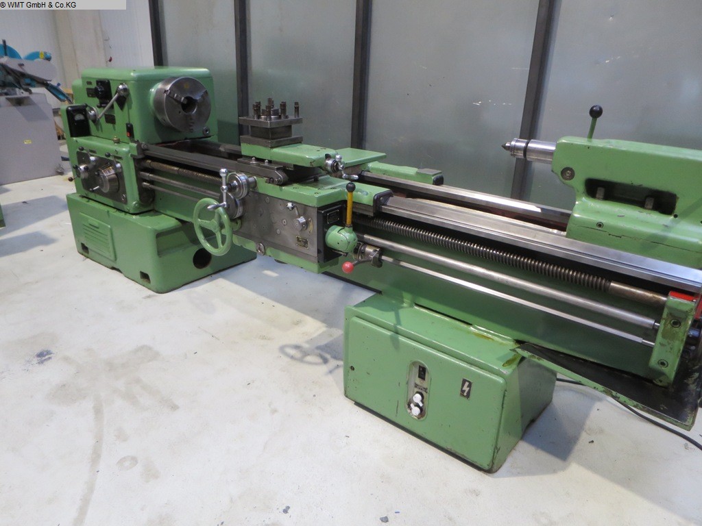 Spitzenhöhe: 210mm, Spitzenweite: 1500mm, Drehdurchmesser über Bett: 420mm, Spindelbohrung: 57mm, Drehzahlbereich: 38-2000/min, Hauptantrieb: 7,5kW, Gewicht: 2t. Ausstattung: 3-Backenfutter, Reitstock, Lünette, Schnellwechselhalter, Kühlmitteleinrichtung, Beleuchtung, Baujahr: ca. 1980-1985. Ohne Datenblatt, voll funktionsfähig, gepflegt, sofort einsatzbereit. Lediglich im unteren Bereich besteht eine leichte Ölfeuchte, altersbedingt, ohne relevanten Ölverlust. Eine Besichtigung vor Ort ist möglich.
