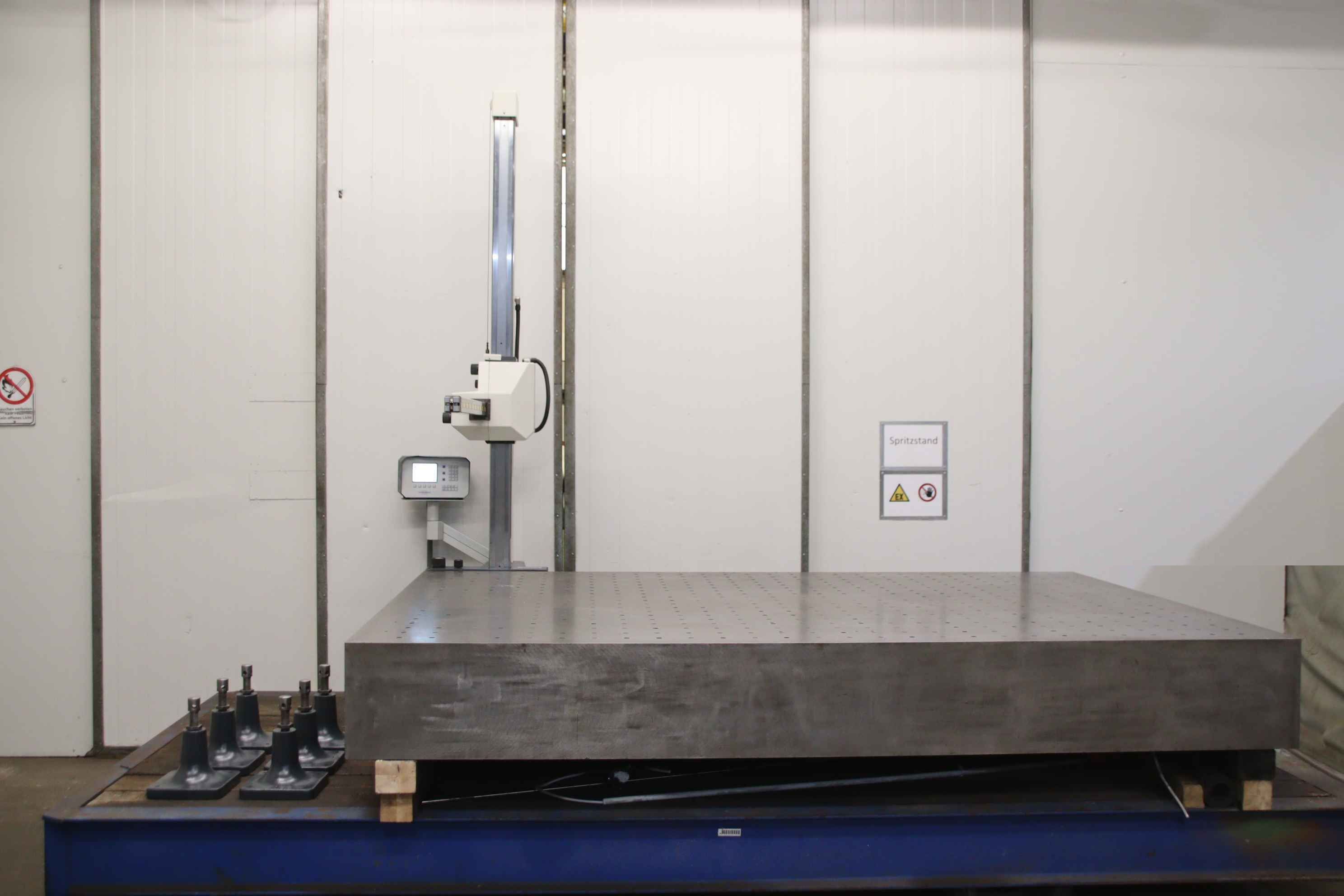 Messmaschine, Meß- und Anreißmaschine, Koordinatenmessmaschine, Koordinatenmessgerät, Formtester, Aufspannplatte, Anreiß- Tuschierplatte, Meßplatte, Meßtisch, Schweißtisch, Schweisstisch, Richtplatte-Hersteller: Stiefelmayer Typ C-System-Digitalanzeige: Stiefelmayer Typ MZ 2000-Verfahrwege: X 2450 mm, Y 1215 mm, Z 1645 mm-mit: 6x Stellfüßen-Zubehör: siehe Fotos-Messplatte: 2000/3000/H355 mm-Abmessung: 2540/3000/H2630 mm-Gewicht: 4660 kg