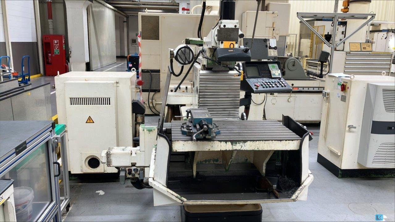 x-Weg: 500 mmy-Weg: 500 mmz-Weg: 400 mmTischgröße: 900 x 530 mmSteuerung: Heidenhain TNC 355 Aufnahme: ISO 40 | |Drehzahlbereich: 40- 4000 U/minEilgangsgeschwindigkeit: 5 / 6 m/minVorschubgeschwindigkeit: 2 - 3000 | mm/min |Antriebsleistung: 6 kWTischbelastung: 350 kgAbmessungen L x B x H: 2,6 x 1,8 x 2,2 mGewicht: 2,6 t3- Achsen Universal- Fräsmaschine mit Umhausung.- externes Handrad- Umhausung- starrer Tisch- Universaler KopfDie Daten fü, dieses Inserat wurden erstellt mit ModulMWS - die Maschinenverwaltung von LogoTech oHG.