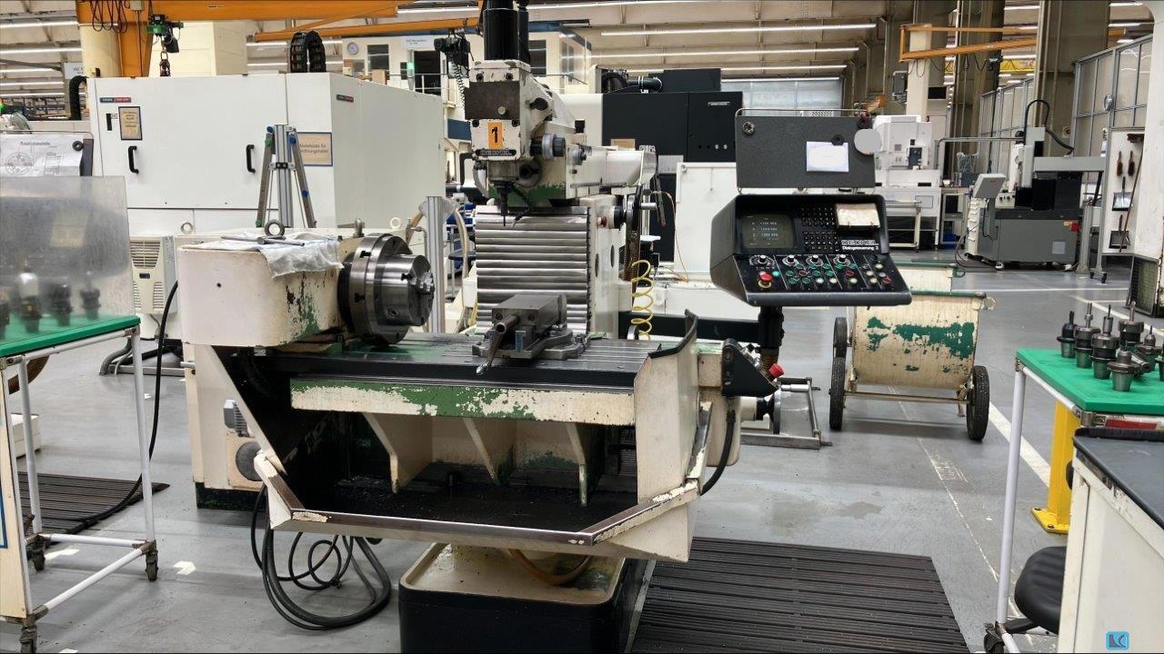 x-Weg: 600 mmy-Weg: 500 mmz-Weg: 450 mmDrehzahl: 5 - 5000 U/minPinolenhub: 90 mmGesamtleistungsbedarf: 9 kWVorschubbereich: 0-10.000 mm/minMaschinengewicht ca.: 3260 kgRaumbedarf ca.: 2200x2800x2000 mmSpindel: 6 kWVertikalfräskopf m. hydr. WKZ-Klemmung: SK 40 CNC Universal-Werkzeugfräsmaschine mit Werkeugwechsler,Ausgestattet mit 3-D Bahnsteuerung Heidenhain TNC 407,el. Handrad,Kühlmitteleinrichtung,originaler Maschinentisch ist dabei