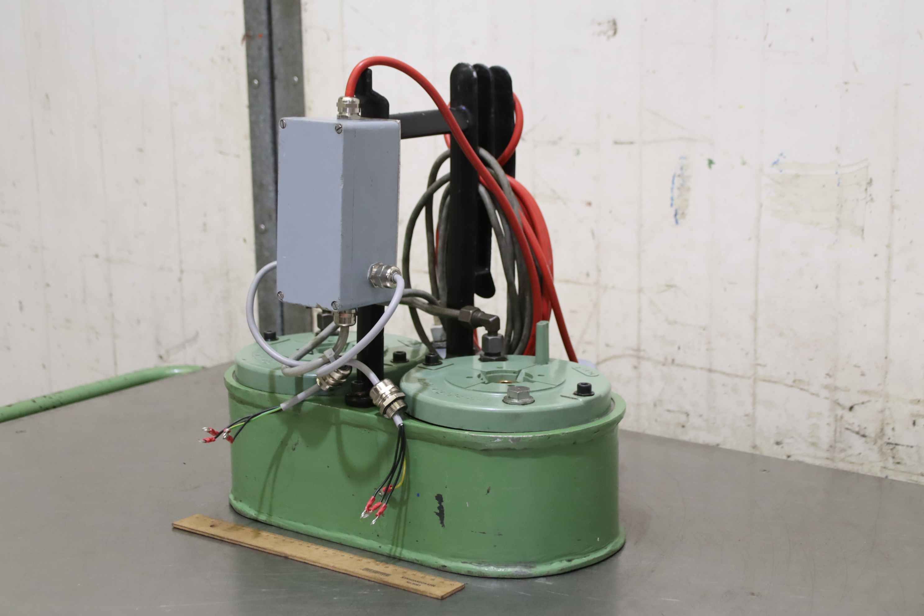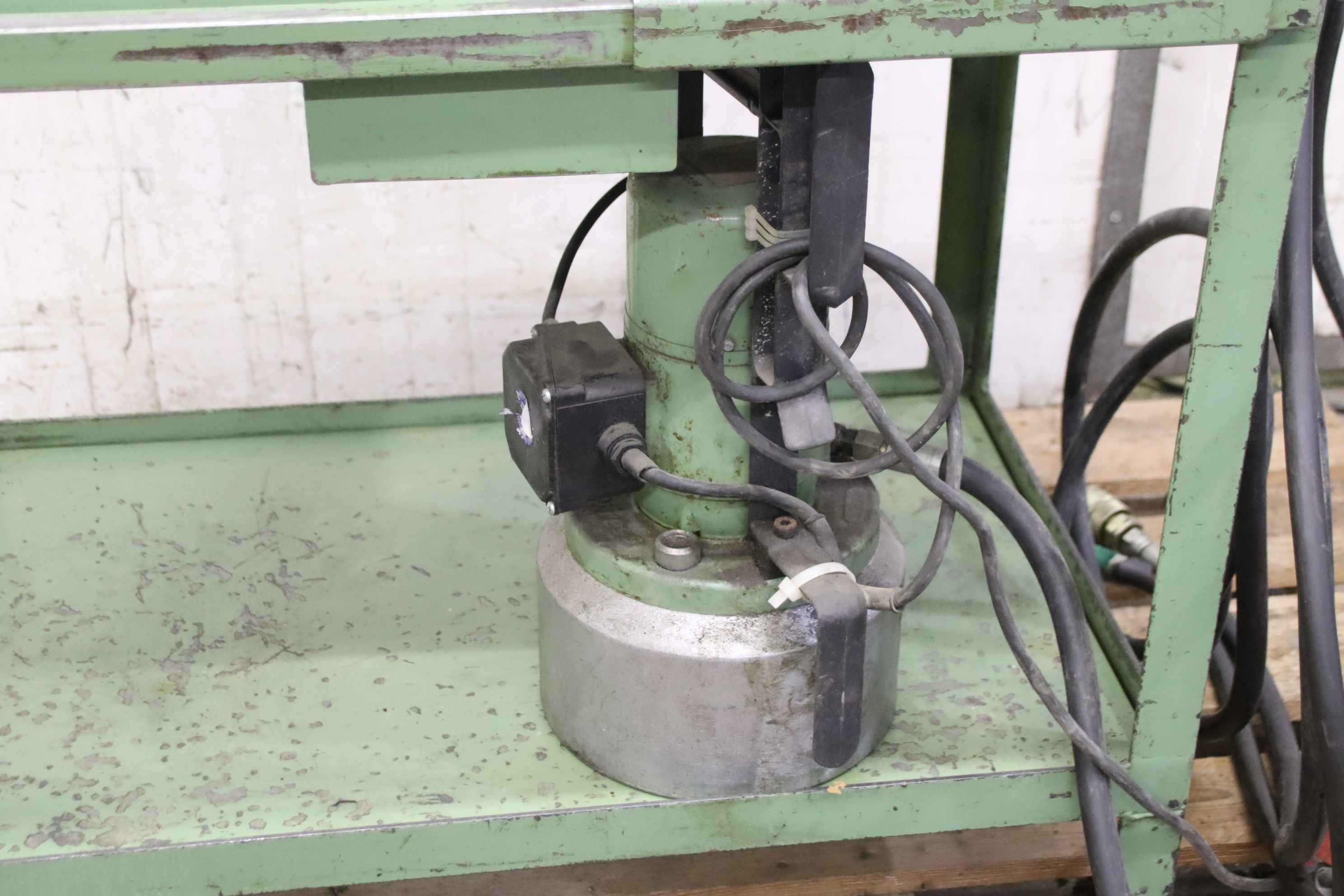 Druck: 60 tHub: 380 mmTischfläche: Arbeitsbreite 750 mmDruck: 259 barÖlinhalt: 38 dm³Zustellgeschwindigkeit: 2,87 mm/secArbeitsgeschwindigkeit: 9,5 mm/secRücklaufgeschwindigkeit: 12 mm/secGesamtleistungsbedarf: 2,2 kWMaschinengewicht ca.: 540 kgInnendurchmesser des Zylinders [mm]: 170Durchmesser Kolbenstange [mm]: 75Durchmesser Kolbenboden [mm]: 100- Integriertes Manometer- Druckregler- Hydraulikaggregat mit 2 Geschwindigkeiten- In der Höhe verstellbarer Arbeitstisch- Joystick zur Bewegung des Kolbens nach oben / untenDie 60 Tonnen Werkstattpresse hat einen festen Zylinder und einen höhenverstellbaren Arbeitstisch (motorisiert). Ausgestattet mit Druckregulierung, Manometer, 2 Geschwind ...