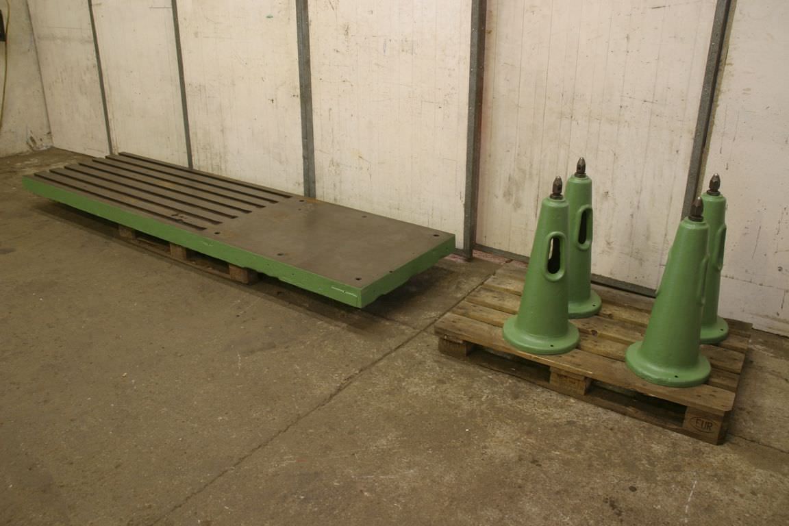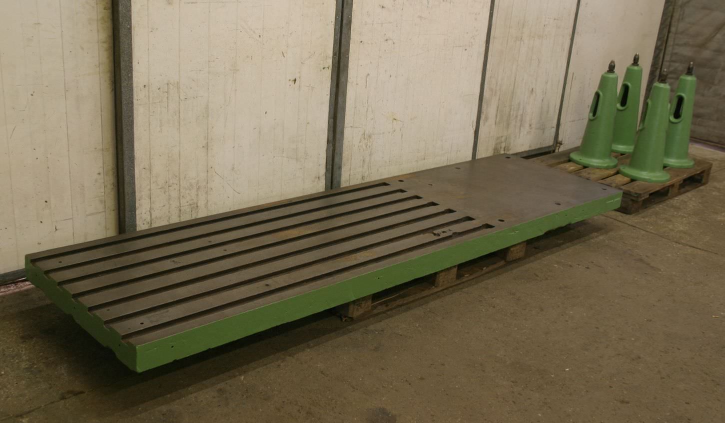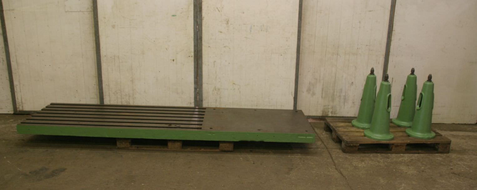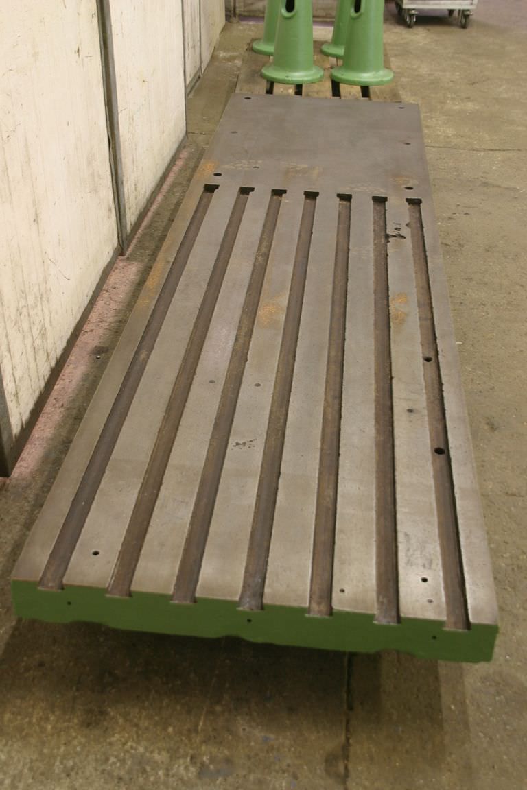 T-Nutenplatte, Aufspannplatte mit T Nuten, Plattenfeld, Schweisstisch, Schweißtisch -Abmessungen: 3005/818/H800 mm-Höhe: verstellbar-Plattendicke: 35 mm-Platte: mit Stützrippen-7x Schwalbenschwanz: Nut 38/48 mm-Nutenlänge: 1820 mm-Gewicht: 1100 kg