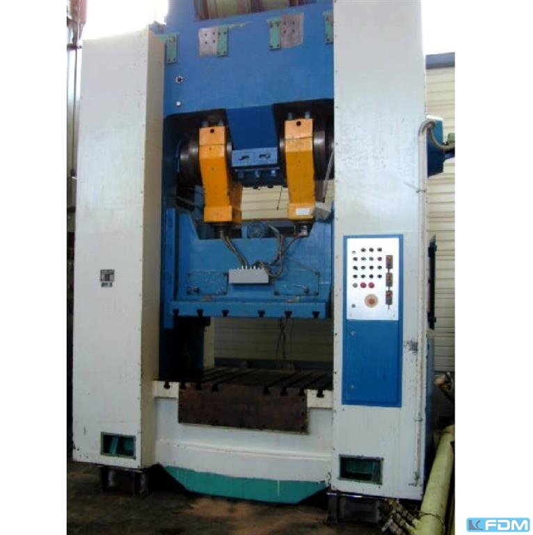 Druck: 2000 tStänderweite: 975 mmHub: 400 mmEntfernung Tisch/Stößel, gr. Hub oben, Verst. oben: 1000 mmTischfläche: 1015 x 1050 mmTischhöhe über Flur: 800 mmAuswerfer im Tisch: 6,3 tAuswerferhub im Tisch: 100 mmAuswerfer im Stößel: 65 tAuswerferhub im Stössel: 100 mmStößelfläche: 975 x 1050 mmRückzugskraft: 150 tGeschwindigkeit ab: 235 mm/sGeschwindigkeit auf: 250 mm/sArbeitsgeschwindigkeit: 5 - 20 mm/sÖlinhalt: 4000 lHöhe über Flur: 3,65 mHöhe unter Flur: 3,75 mAntriebsleistung: 194,0 kWGewicht: 105,0 tRaumbedarf (BxTxH): 5,0 x 6,5 x 7,4 m