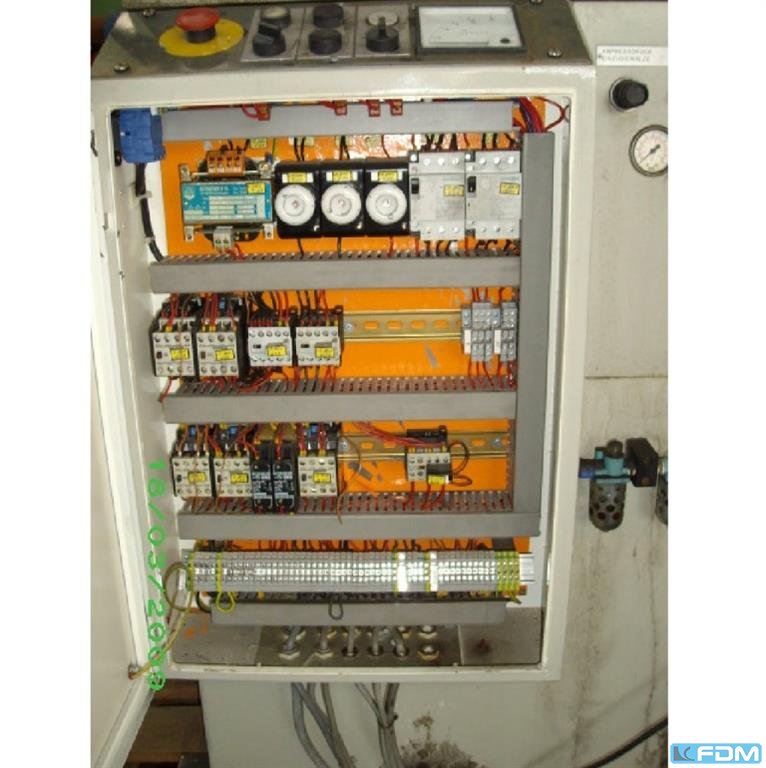 Druck: 160 tHub: 160 fix mmHubzahl: 30 - 120 /minStänderweite: 1190 mmEntfernung Tisch/Stößel, gr. Hub oben, Verst. oben: 735 mmTischfläche: 1200 x 1000 mmDurchfallöffnung im Tisch: 500 x 300 mmTischhöhe über Flur: 900 mmseitlicher Ständerdurchgang: 600 mmStößelfläche: 1000 x 800 mmStößelverstellung: 125 mmMaterialbreite Vorschub: 550 mmMaterialstärke Vorschub: 0 - 6,0 mmVorschublänge: 350 mmMaterialquerschnitt: 1100 mm²Vorschubgeschwindigkeit: 50 m/minAntriebsleistung: 45,0 kWGewicht: 25,0 tRaumbedarf (BxTxH): 2,3 x 2,1 x 4,7 mstufenlos regelbarer Antrieb: PIV Überlastsicherung im Stößel: hydraulisch Stößelverstellung: motorisch Stößelgewichtsausgleich: pneumatisch Za ...