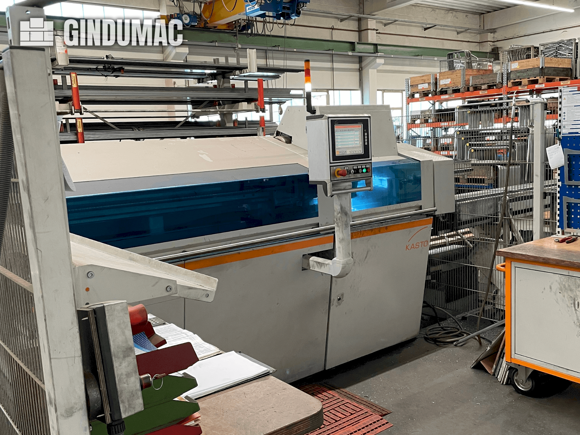 Eine vollautomatische Metall-Bandsäge Kasto mit Rollenbahnen steht zur Verfügung. Gehrung min./max.: -45°/60°, max. Schnittdurchmesser: 260mm, max. Schnittdimensionen X/Y: 300mm/260mm, Sägebanddimensionen X/Y/Z: ca. 2910mm/27mm/0,9mm, Maschinendimensionen X/Y/Z: ca. 1500mm/1850mm/1500mm, Gewicht: ca. 900kg, Steuerung: Kasto BasicControl. Die Maschine ist zum Teil defekt. Eine Besichtigung vor Ort ist möglich.