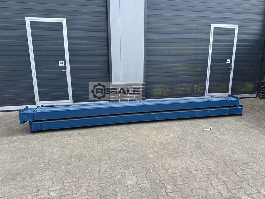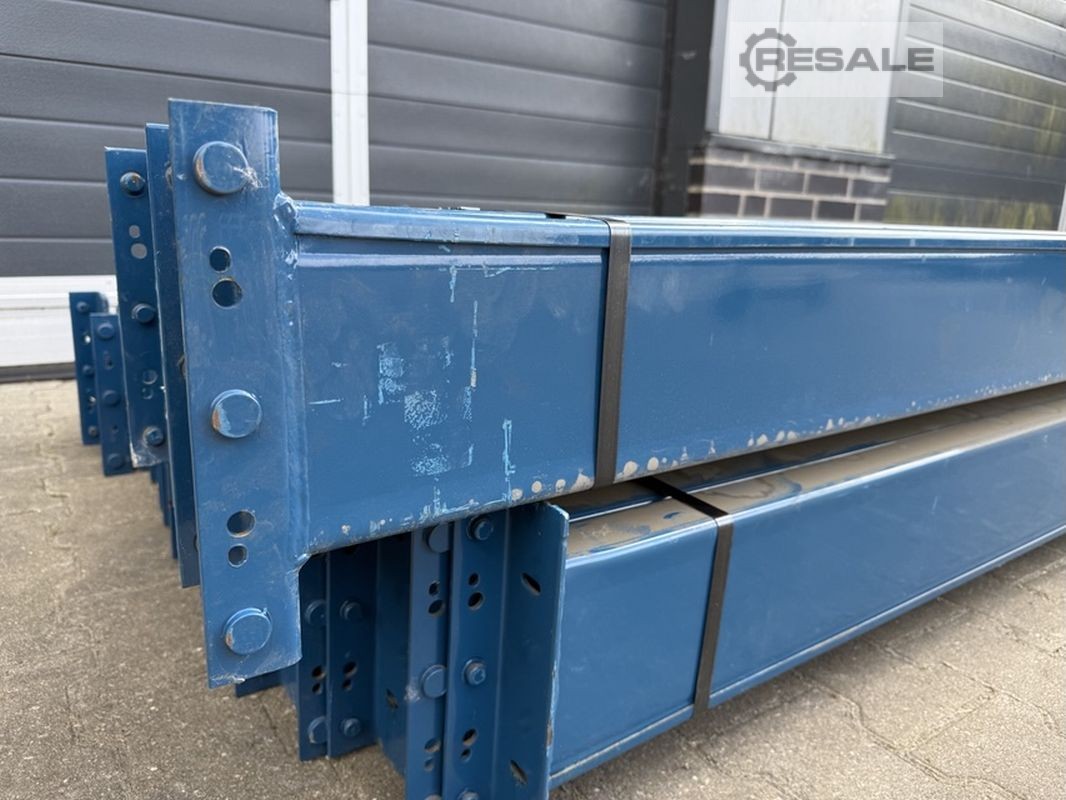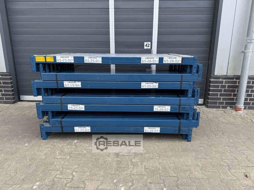 Technische Daten zur Palettenregalanlage: Regalsystem: Dexion Typ: P 90 Technische Daten zur Aufstellung: Anzahl Regalreihen: 01 Stck. Länge je Regalreihe: 15.600 mm Anzahl Felder je Regalreihe: 05 Stck. Anzahl Ebenen zzgl. Bodenebene: 03 Stck. Im Lieferumfang sind enthalten: 06x Palettenregalständer, gebraucht Materialfarbe: sendzimir verzinkt Typ: 100|25 Profilabm.: 100 x 100 x 2,5 mm Inkl. Quer- u. Diagonalstreben, Fußplatten Die Ständer sind vormontiert (geschraubtes Fachwerk) 6.000 mm hoch 1.100 mm tief 30x Palettenregaltraverse, gebraucht Materialfarbe: orange Traversentyp: SLI 120|14 S 350 I - Profil: 120 x 50 mm Agraffe: 5 HK (Haken) lichte Weite: 3.000 mm max. Belastu ...
