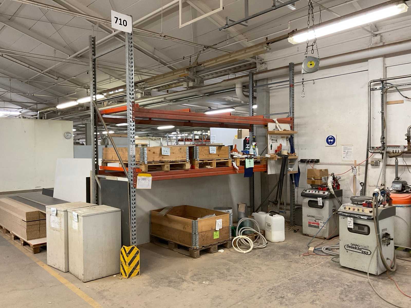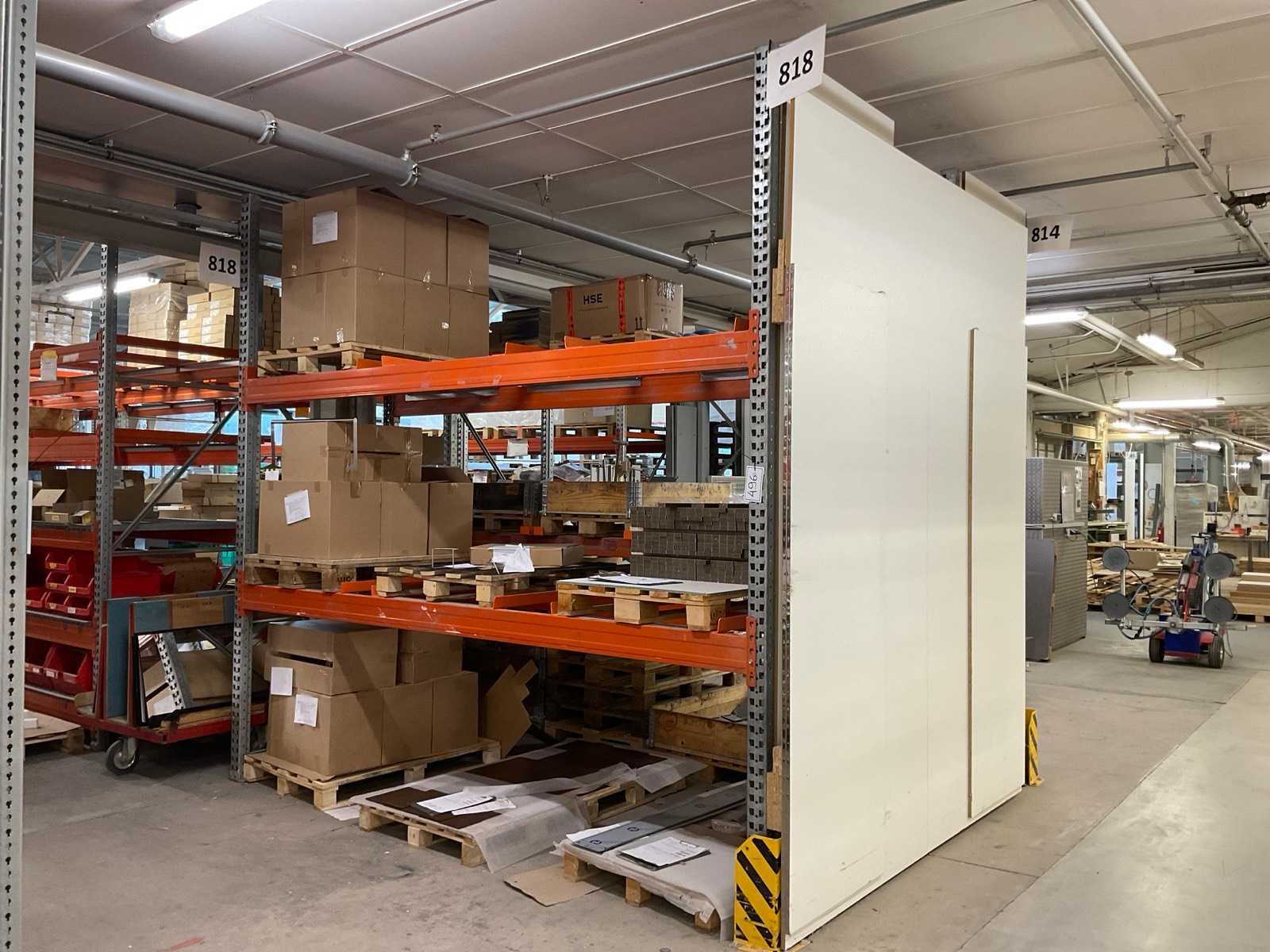 Schwerlastregal bestehend aus: 2 Ständer ca. 1100x3300mm, 4 Traversen ca. 3600mm, inkl. Palettenaufnahmen, mit Inhalt Auktions-ID: A7-45254-420