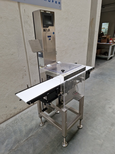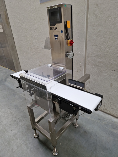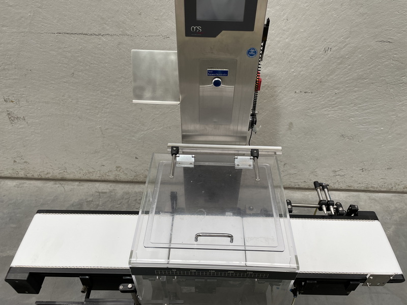 • Wägebereich max. 750 g • d=0,05 g • e=0,1 g • Wägezelle EC 2000 • Bandlauf von links nach rechts • Bandbreite 190 mm Achsabstände Einlaufband/Wägeband/Auslaufband 480/240/480 mm • Schlechtauswurf durch Blasdüse • Ohne Drucker • Nicht eichfähig • Antrieb 230V/50/60Hz