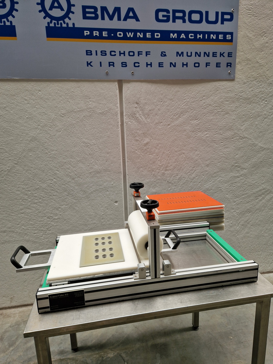 • Ideal für die schnelle Konfektionierung kleinerer Stückzahlen von z.B. Tabletten • Blister werden in wenigen Schritten sekundenschnell verklebt • Der Anpressdruck ist über eine Scala fein regulierbar • Formatwechsel sind innerhalb weniger Minuten vollzogen • Die Artikel werden thermisch nicht belastet • Für Formatplatten (B x T) 390 x 430 mm • Mit 11 Formatplatten für verschiedene Blisteranordnungen • Rein manuell arbeitend, keine Elektrik/Pneumatik • Ohne Untertisch