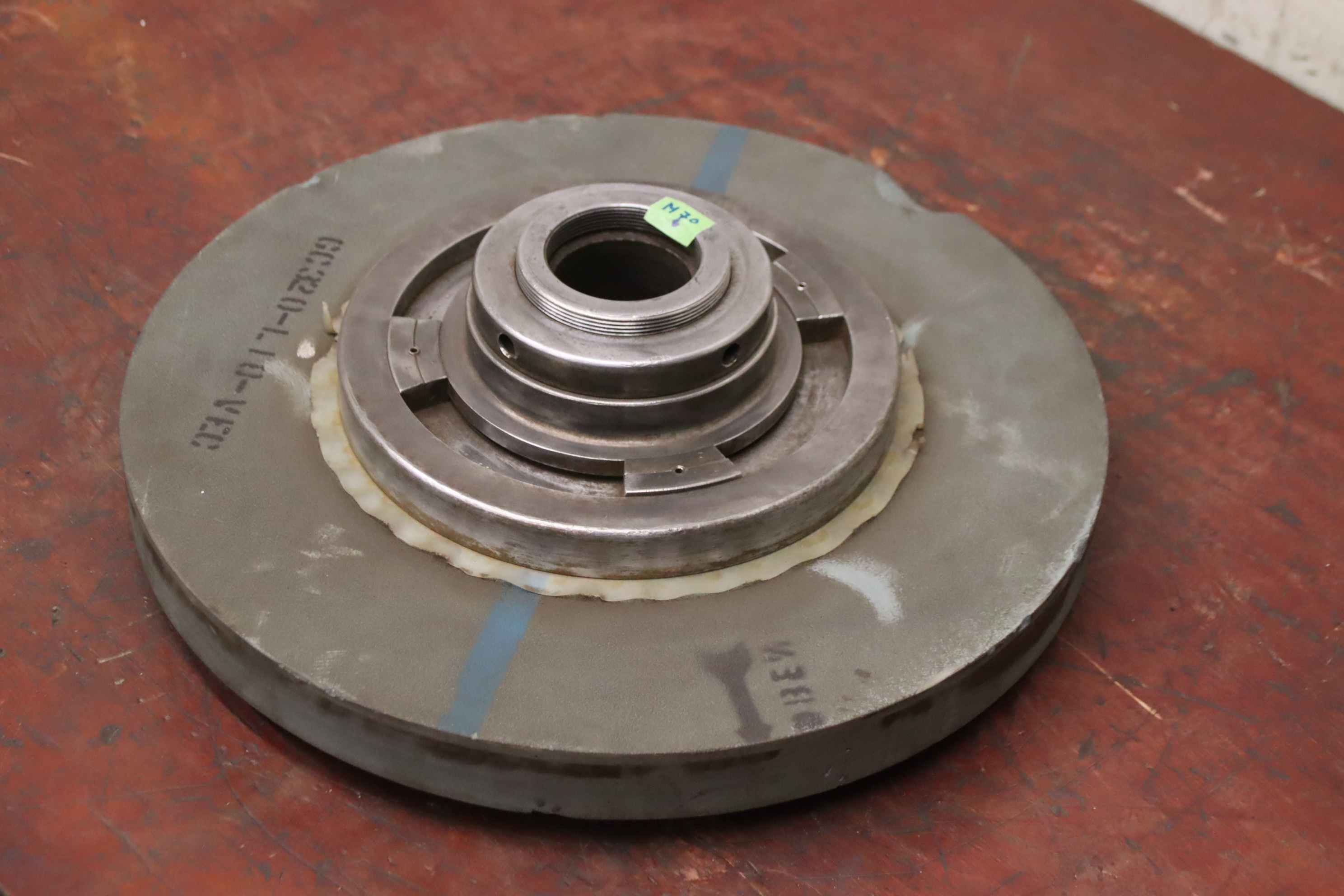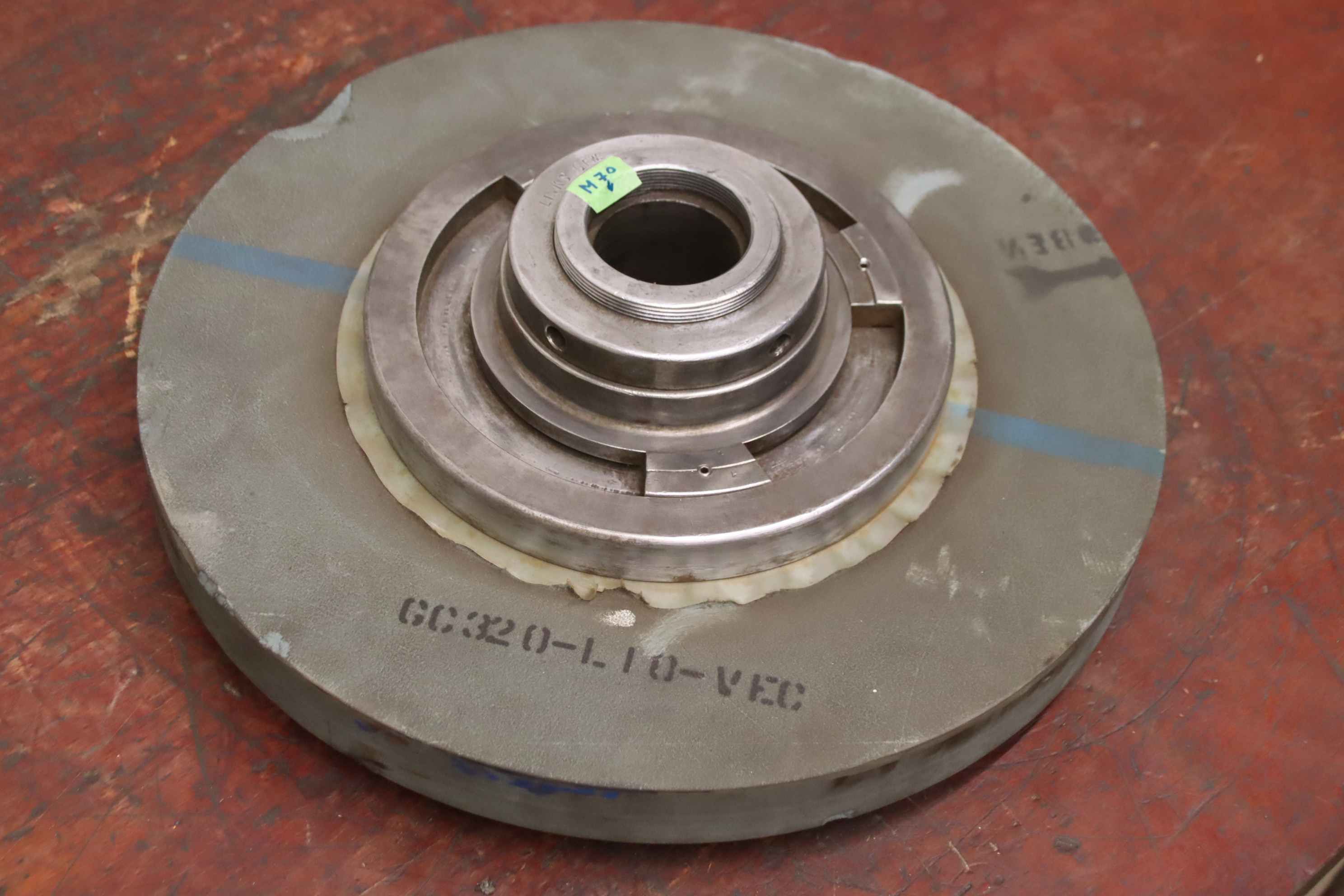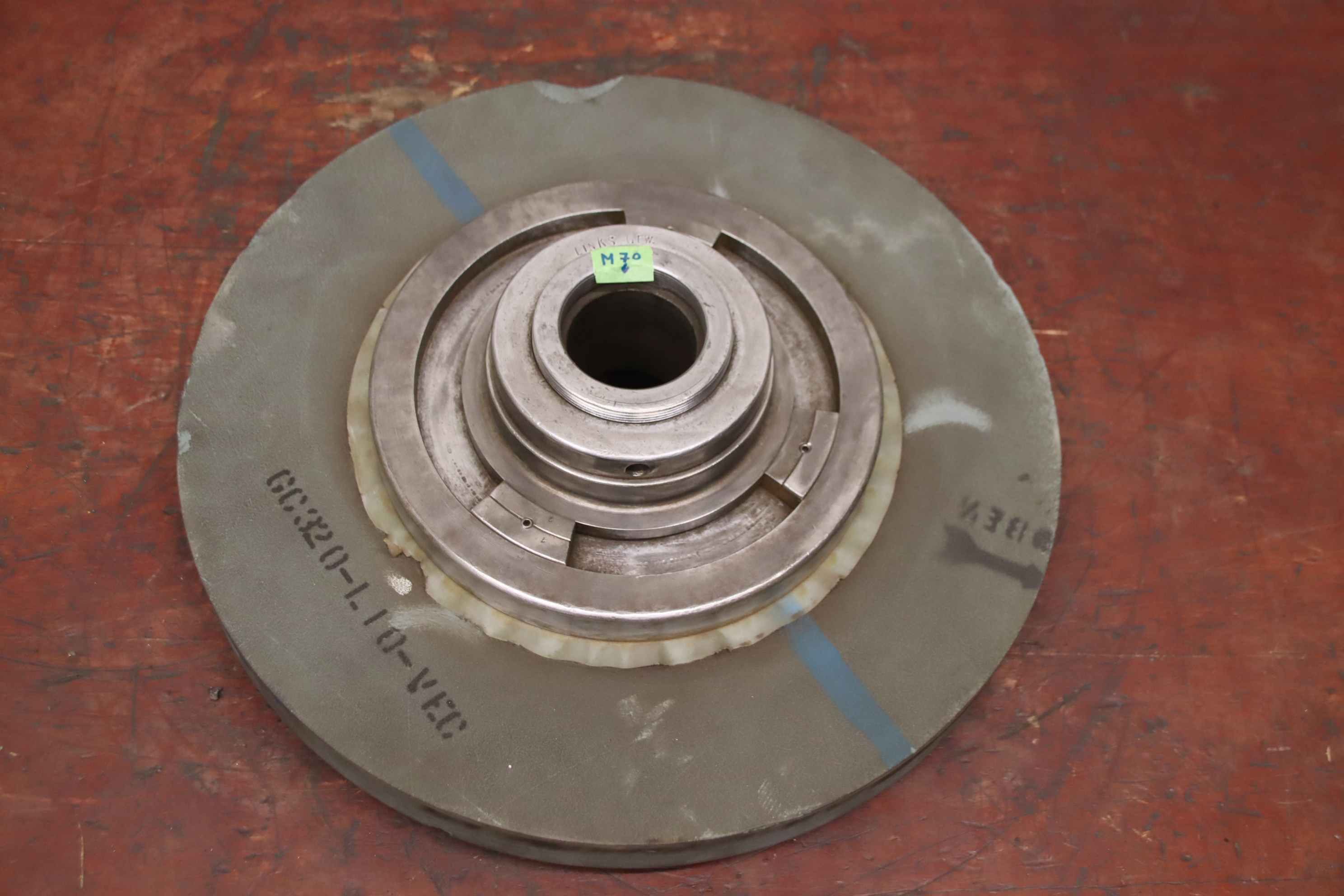 Schleifscheibenaufnahme, Standardflansche, Sonderflansche, Schleifscheibenflansch-Schleifscheibenaufnahme: mit Schleifstein-Aufnahme: Lochwelle Konus Ø47-55 mm, Gewinde M60 siehe Fotos-Schleifstein: 400 x 40 mm, leider ohne Typbezeichnung-Transportabmessung.: Ø 400 x 85 mm-Gewicht.: 31,1 kg