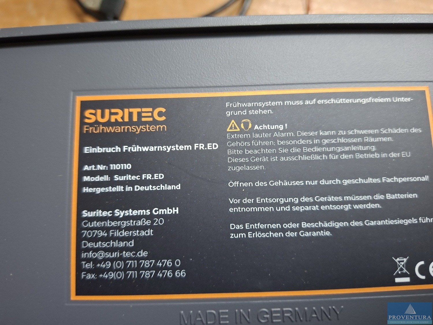 Alarmanlage SURITEC FR.ED, bestehend aus Zentrale, 1x außen Sirene, 3x Handsender, 1x Türsensor