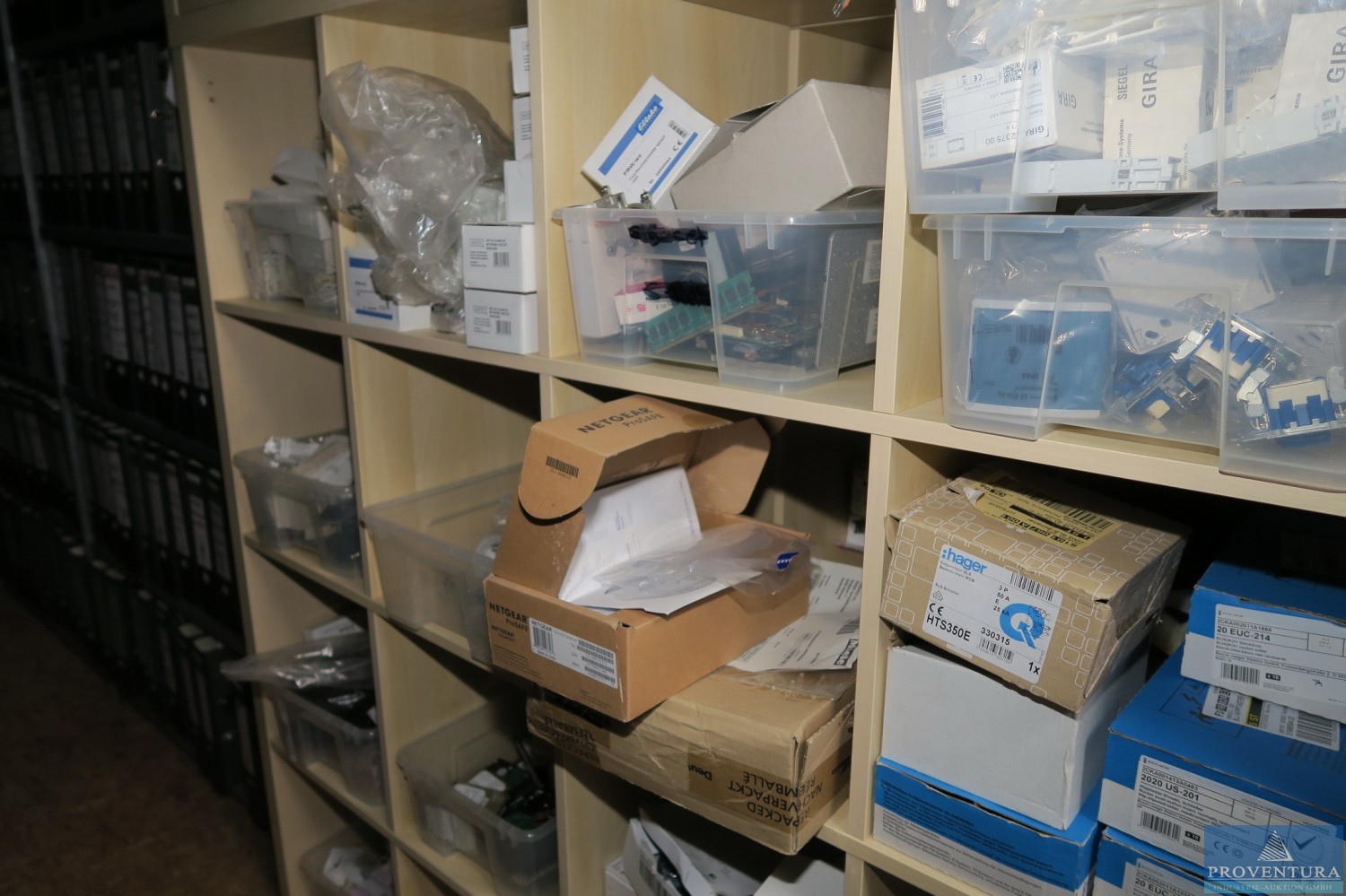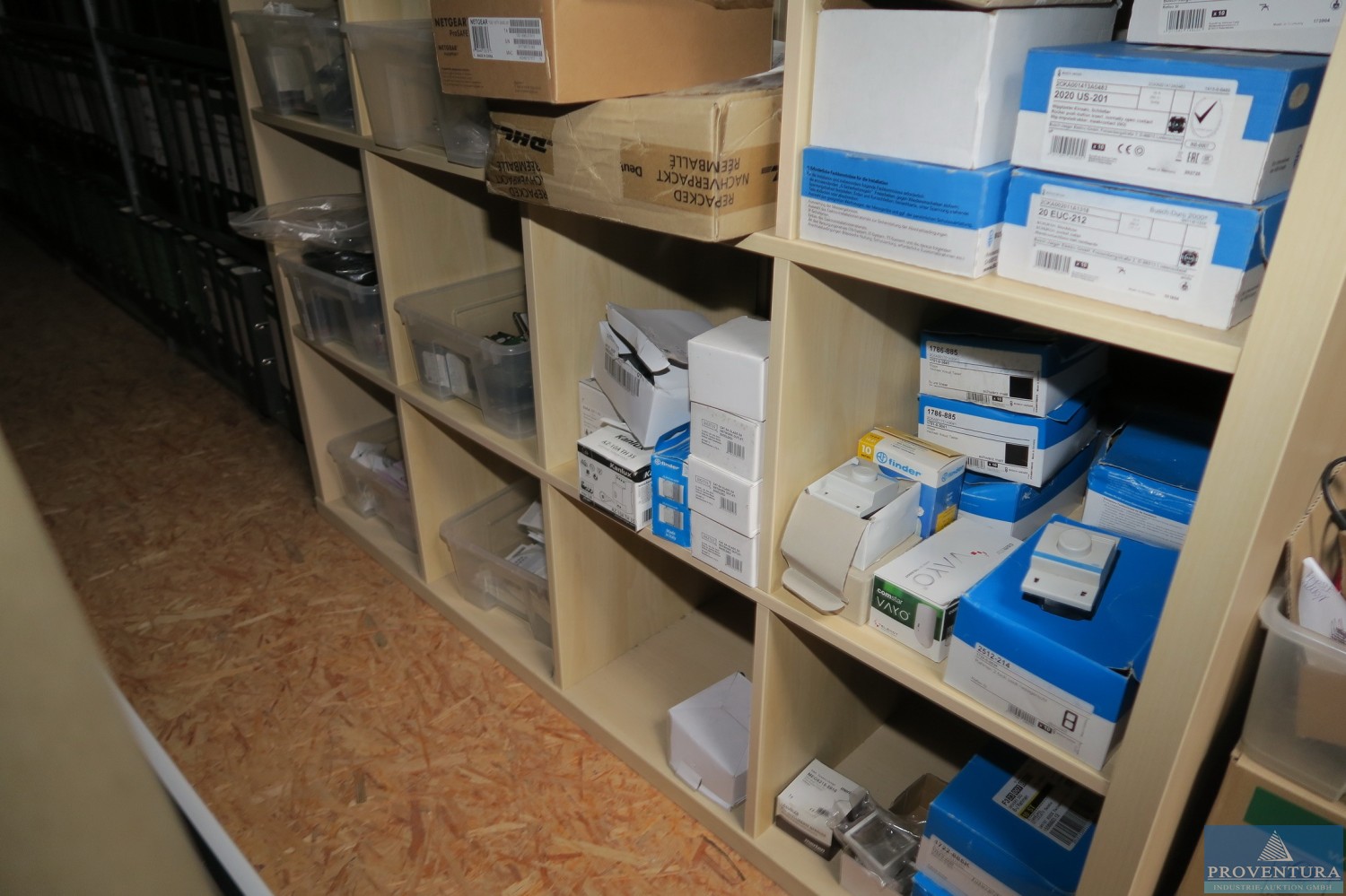 Warenbestand Elektrotechnik, Klein- und Verbrauchsmaterialien, Sicherungen , Steckdosen, UP-Dosen, Kabel usw., Inhalt ohne Regal, bei Warenabholung bitte frühzeitig erscheinen.