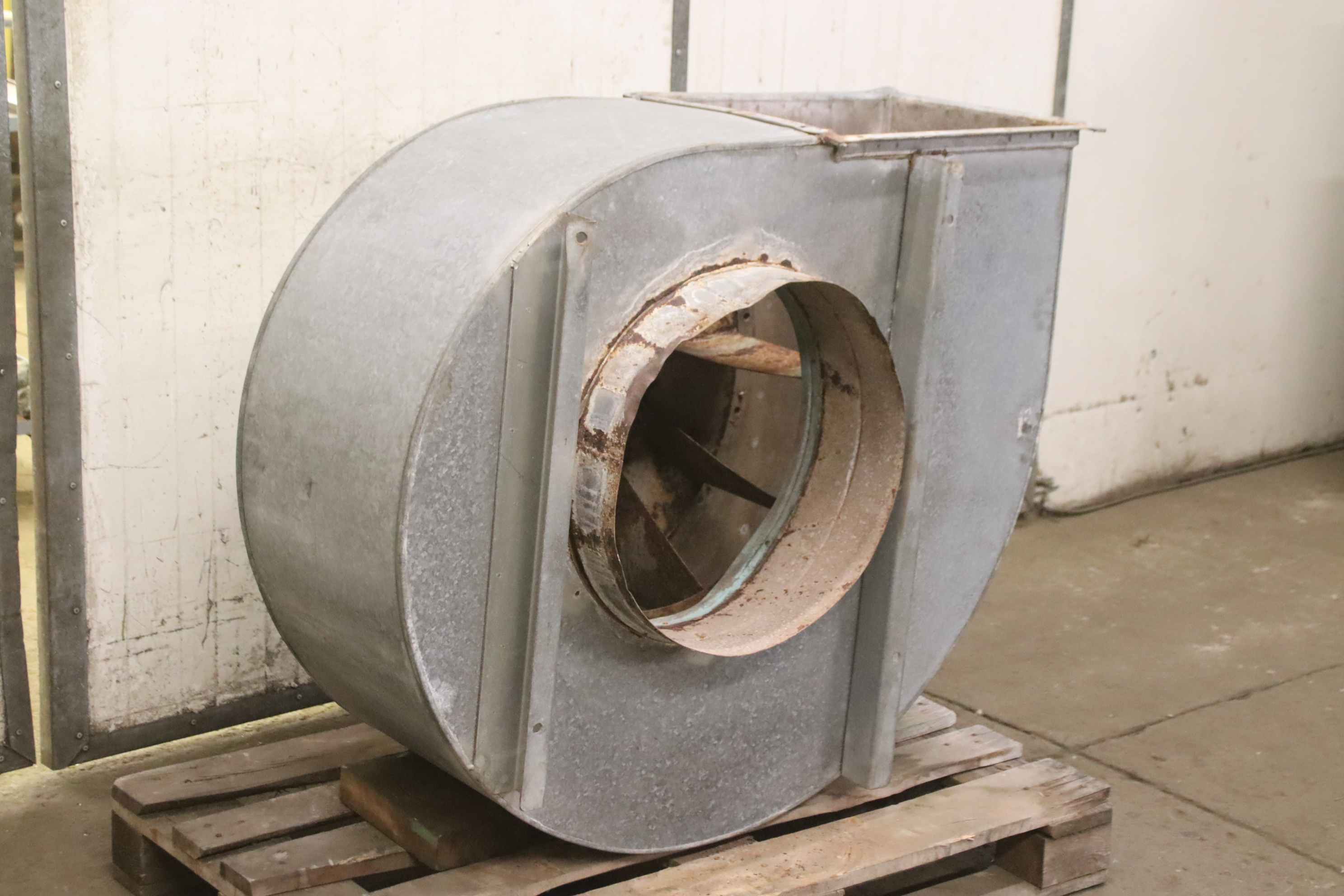 Radialventilator, Staubabsauggebläse, Ventilator, Absaugung, Staubgebläse, Gebläse, Abluftventilator-Staubabsauggebläse: Radialventilator -Motor: Loher 3,5 kW 955 U/min Ex geschützt-Volumenlstrom: m³/h-Anschluss: Eingang Ø 500 mm-Anschluss: Ausgang 400 x 500 mm-Abmessungen: 1160/880/H950 mm-Gewicht: 153 kg