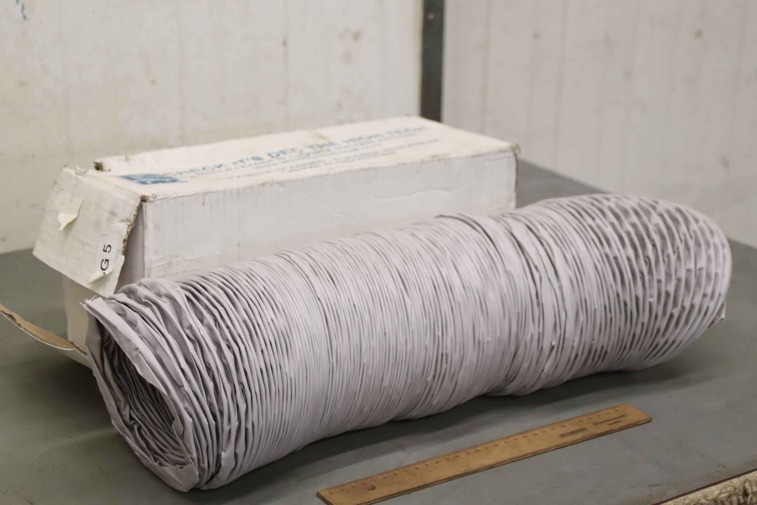 Winkel für Filteranlage, Späneabsaugung, Staubabsaugung, Absauganlage, Lüftungskanäle und Formstücke-Hersteller: DEC, Lüftungsschlauch Ovp-Typ: Greydec 100 - 152mm x 6 Meter-ART.code: DG1152/6-Abmessung Karton: 400/175/H175 mm-Gewicht: 1,7 kg