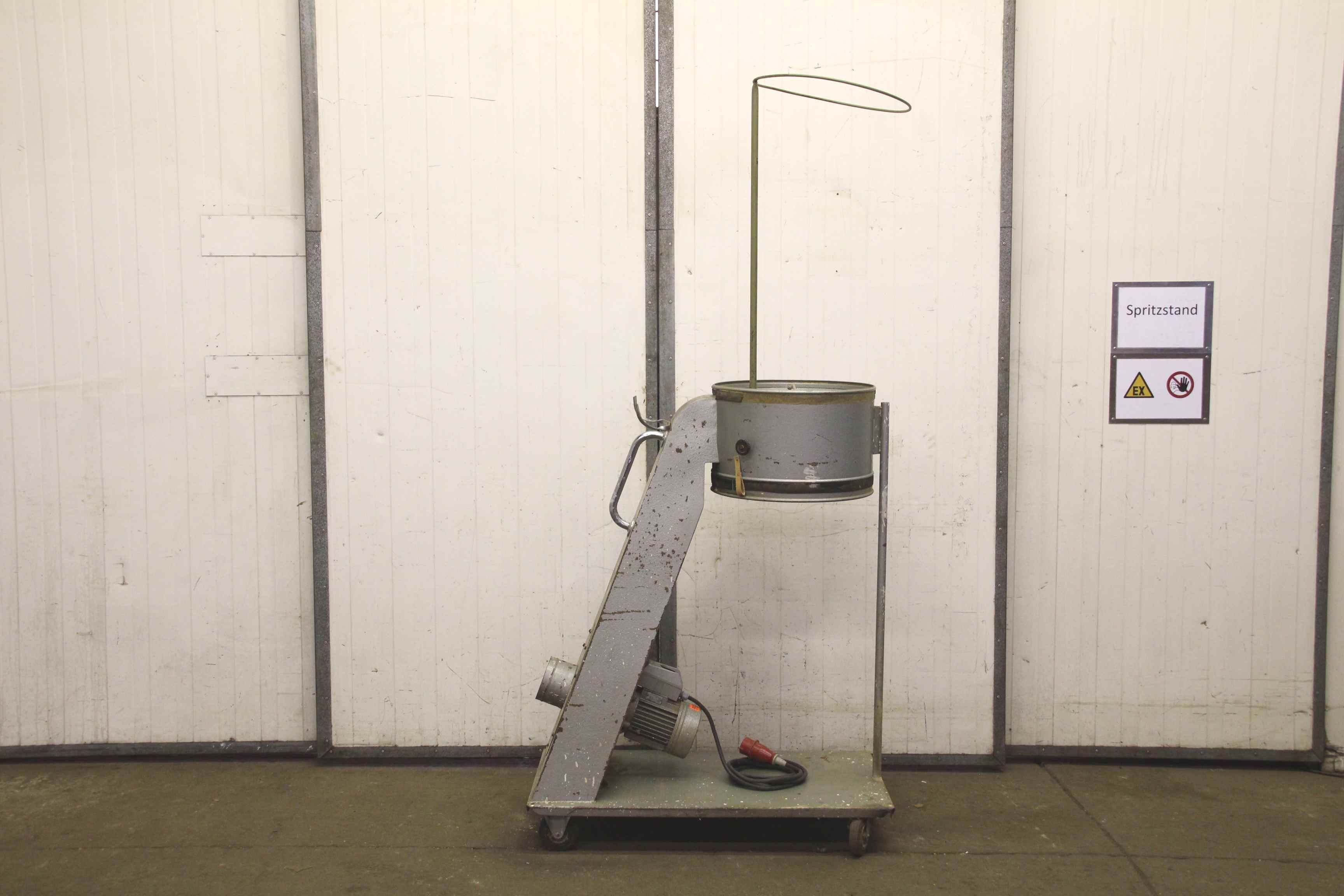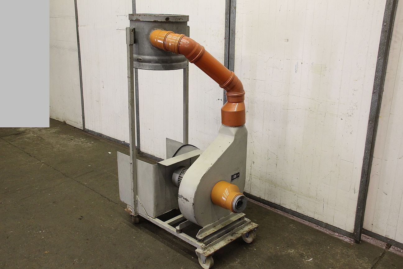 Hallenabsauganlage, Spänefilter-Anlage, Filteranlage, Späneabsaugung, Holzspäneabsaugung,Radialventilator, Späneabsauggebläse, Ventilator, Absaugung, Spänegebläse-Übergabe: im Istzustand wie besichtigt, ohne Filterelement-Hersteller: Höcker-Motorleistung: 1,5 kW-Drehzahl: 2870 U/min-Anschluss Eingang: Ø 147 mm-Anschluss Ausgang: Ø 515 mm -Untergestell: auf Rollen-Abmessungen: 610/1100/H1405 mm-Gewicht: 68 kg