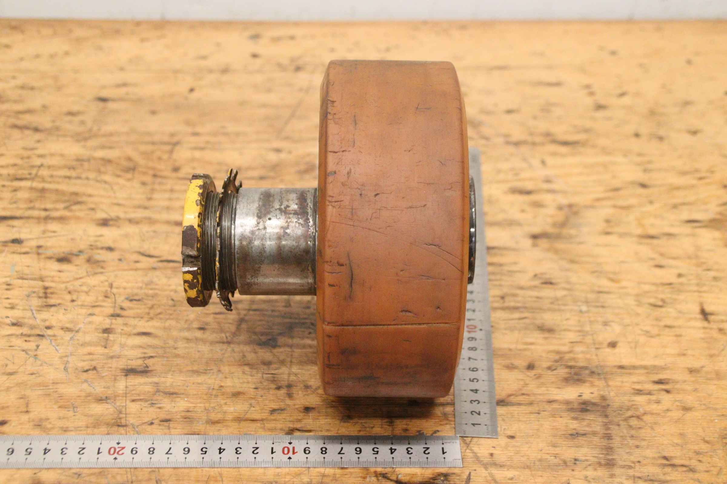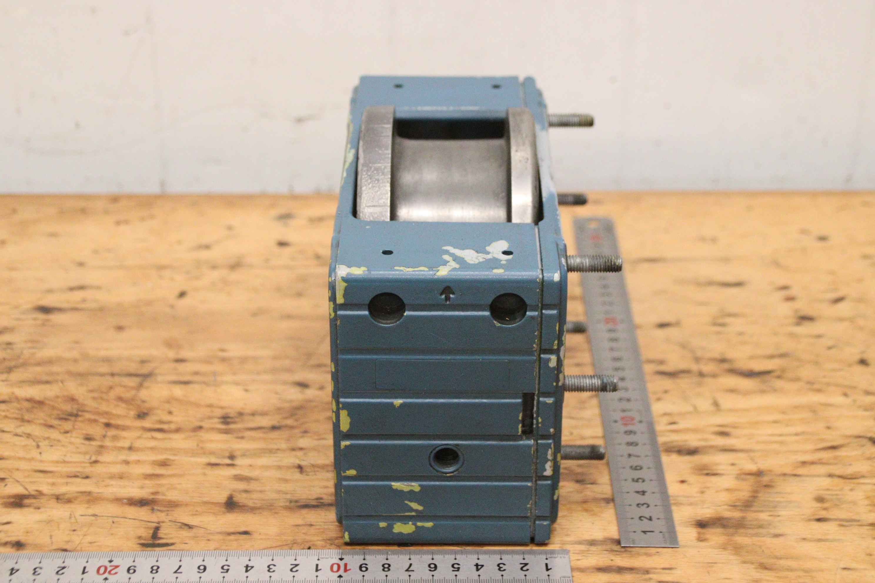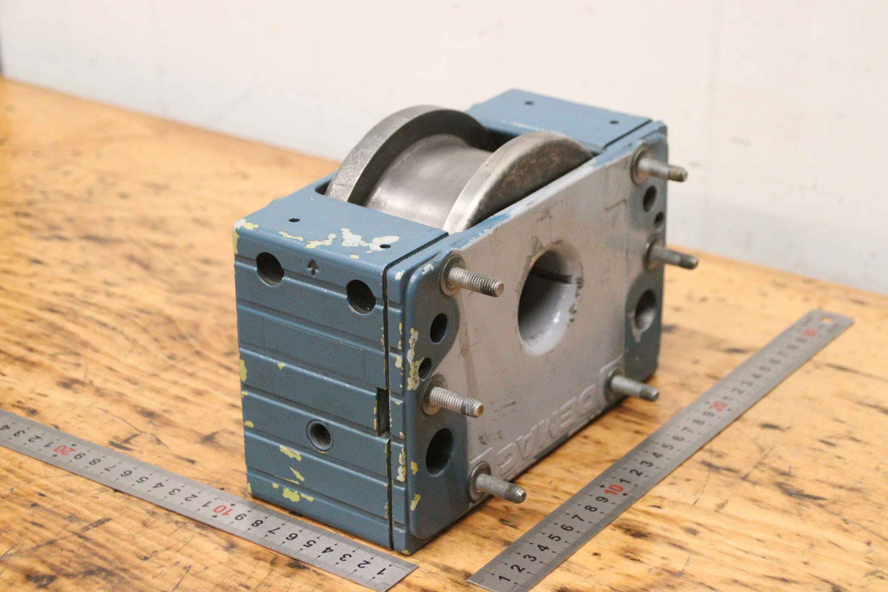 Reibrad, Laufrad für Brückenkran, Brückenkran, Hallenkran, Montagekran, Arbeitsplatzkran, Radblock, Radblocksystem, Radblock-System-Hersteller: Demag, Radblock für Kranfahrwerk-Typ: leider keine genaue Typbezeichnung-Laufrad: Ø 122 mm / Schienenbreite Zwischenmaß 63 mm-Aufnahme: Ø 30 mm, Maße siehe Fotos-Anzahl: 1x Radblock vorhanden-Abmessungen: 220/97/H160 mm-Gewicht: 8,5 kg