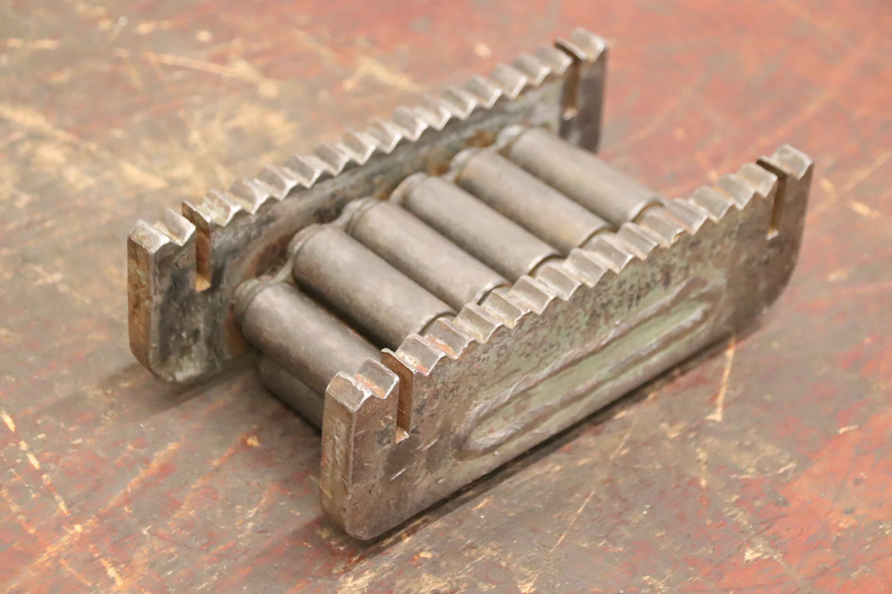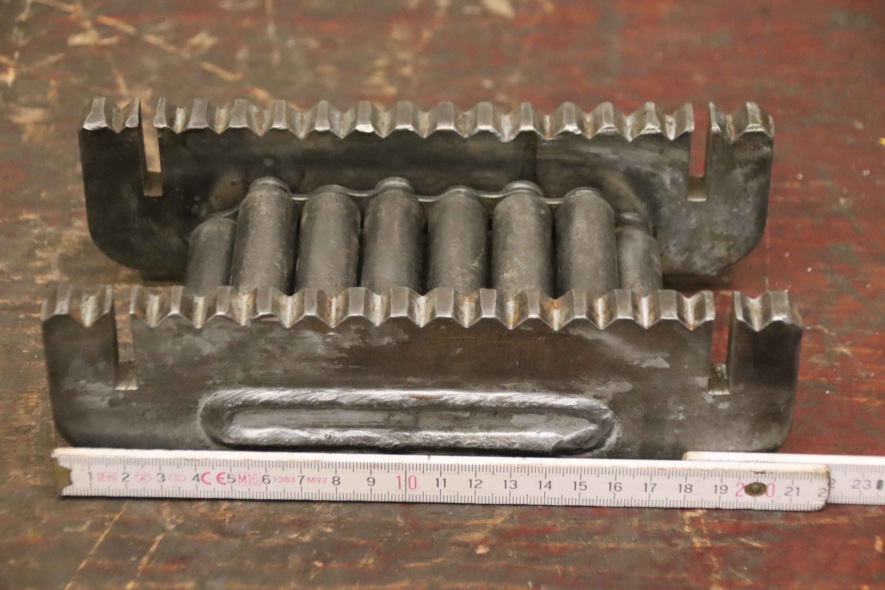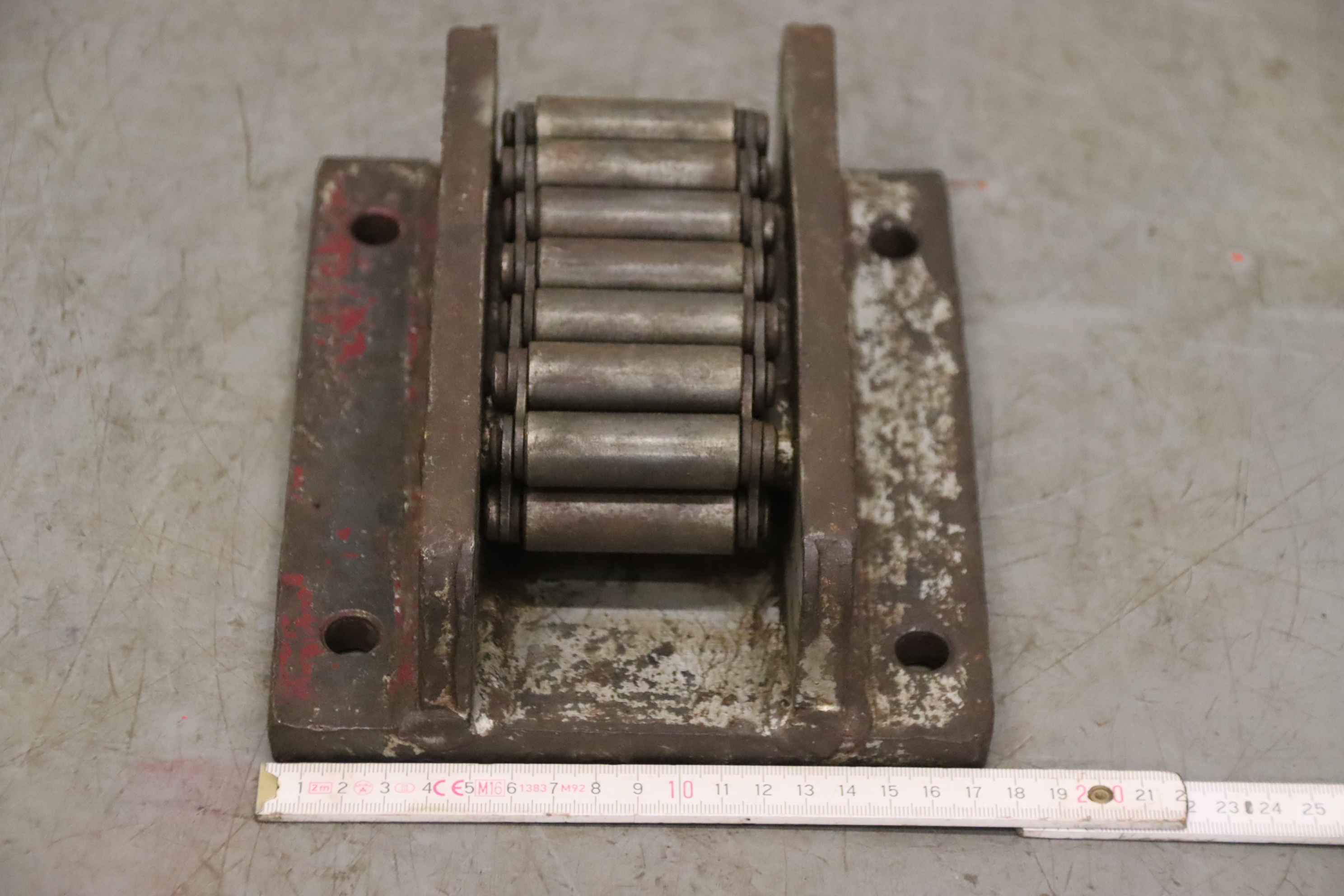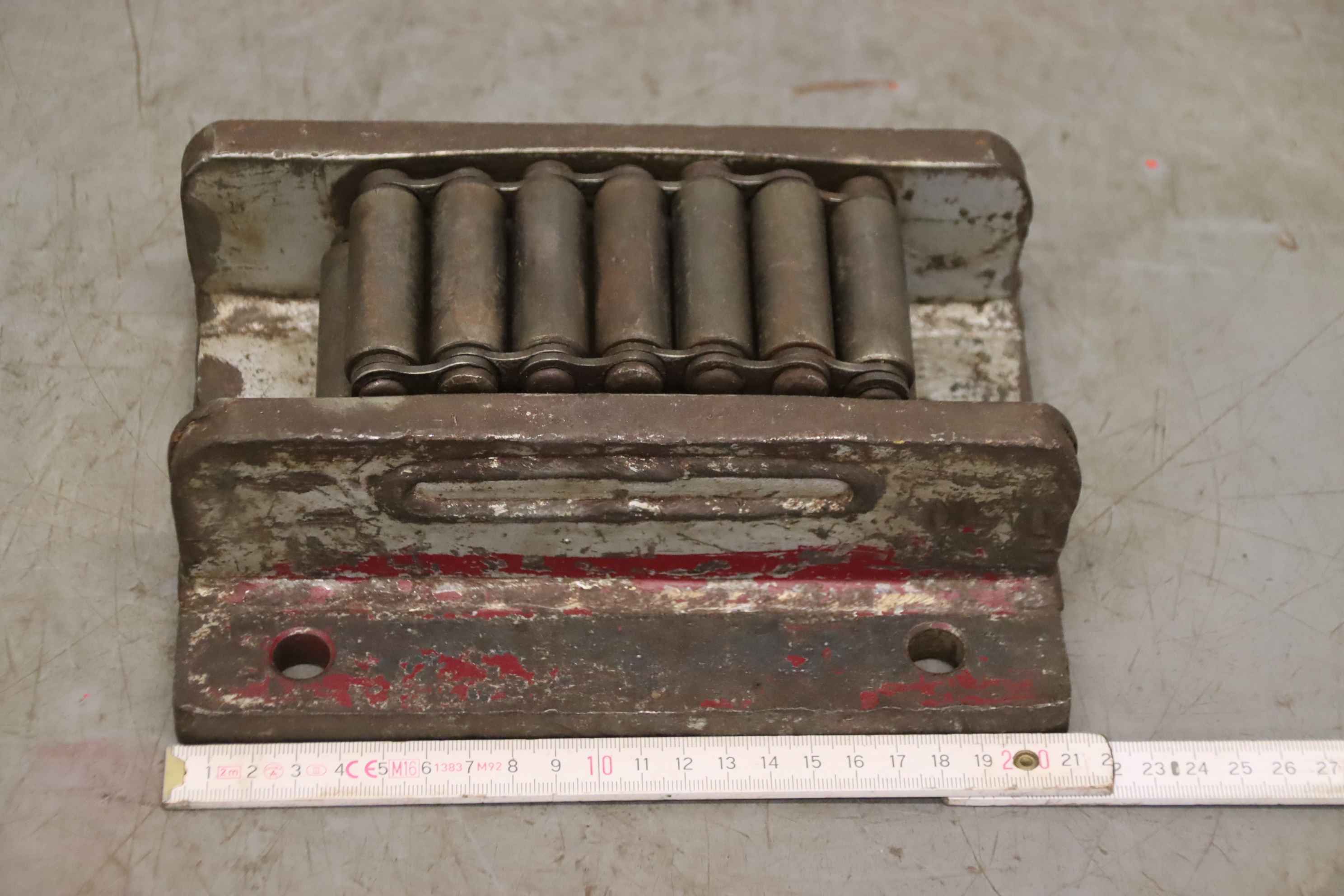 Einfach-Rollenkette, RollenketteNSM MAGNETTECHNIK GmbH 10x10Gesamtlänge ca. 7,352 m in zwei TeilstückenKettenteilung: 15,8 mmProfil: SimplexRollendurchmesser: 10,0 mmInnere Breite: 10,0 mm Bolzenlänge: 18 / 36 mmKettenbolzen-Durchmesser: Ø 5,1 mmLaschenhöhe: 17,2 mmLaschendicke: 1,7 mmWerkstoff: StahlNeu !Abmessungen ( Verpackung ): 270 x 260 x 60 mm