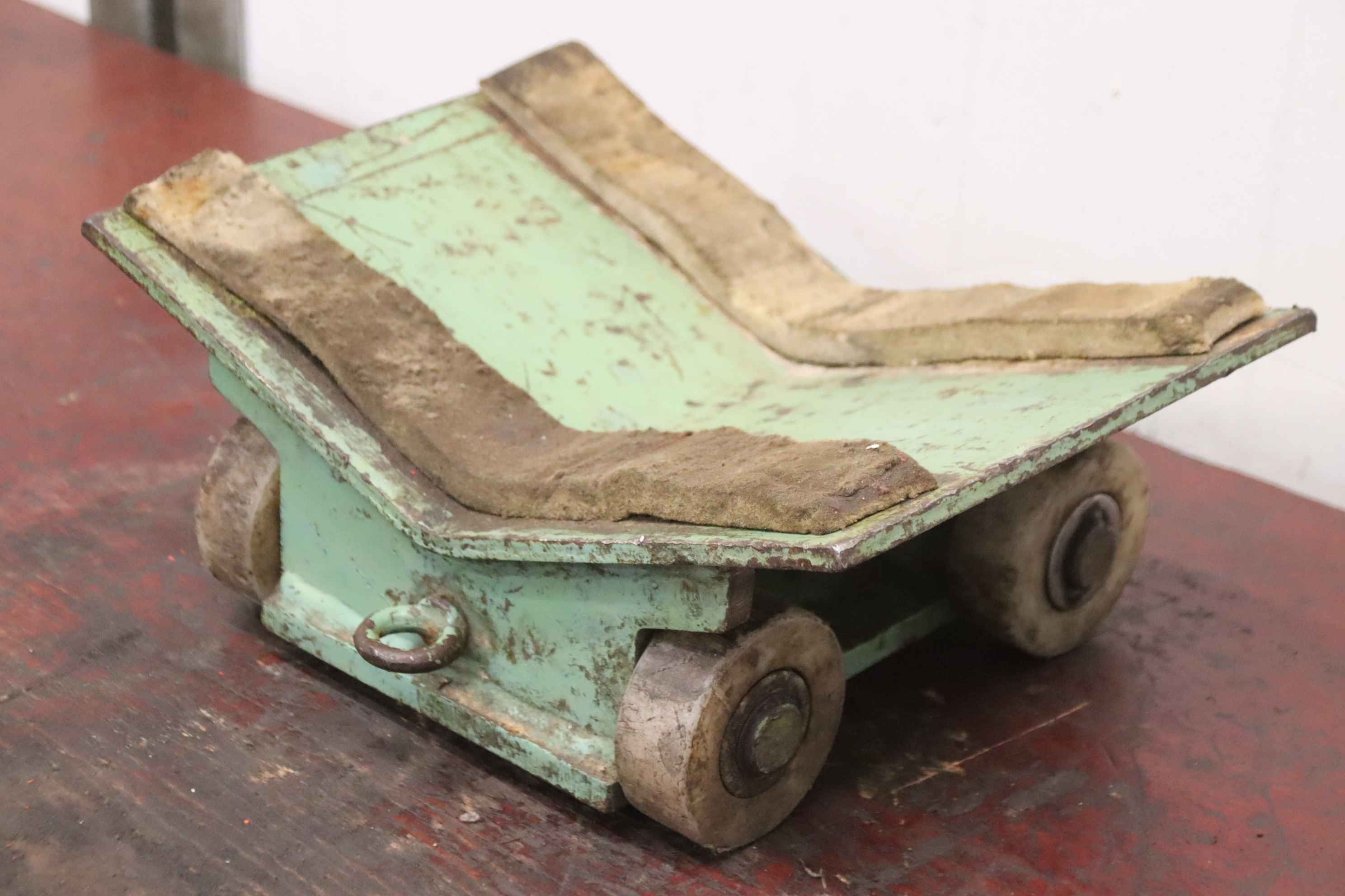 Transportwagen mit Gitteraufbau und 18 Tragarmen, Tragarmwagen, WerksückwagenPAGUS800 x 1360 mmGitteraufbau: Breite: 800 mm, Höhe: 1360 mmRastermaß: 42 x 42 mmMaterialstärke: 8 mm18 Tragarme ( variabel ): Durchmesser: Ø 15 mm, Länge: 370 mmRückseite: 2 Querstangen ( fest ): Durchmesser: Ø 16 mm, Länge: 690 mmAbstand: 150 mm2 feststehende Räder, 2 lenkbare Räder, ohne Feststellbremsegebraucht, geprüft !Abmessungen: 930 x 850 x 1640 mm