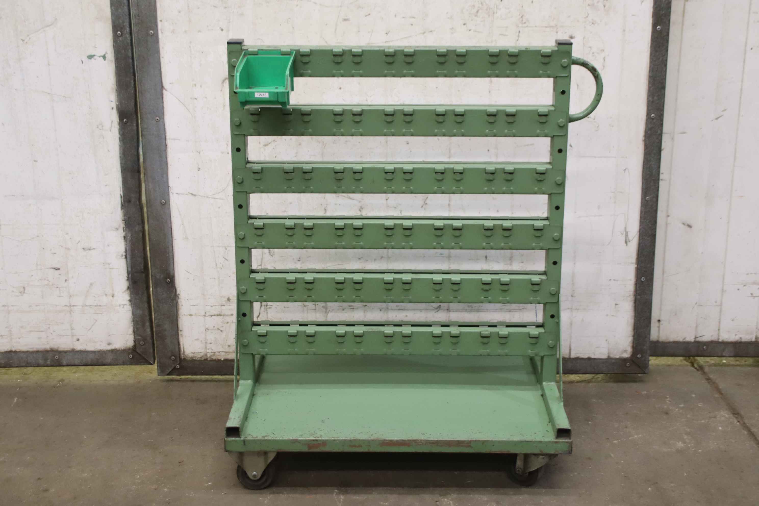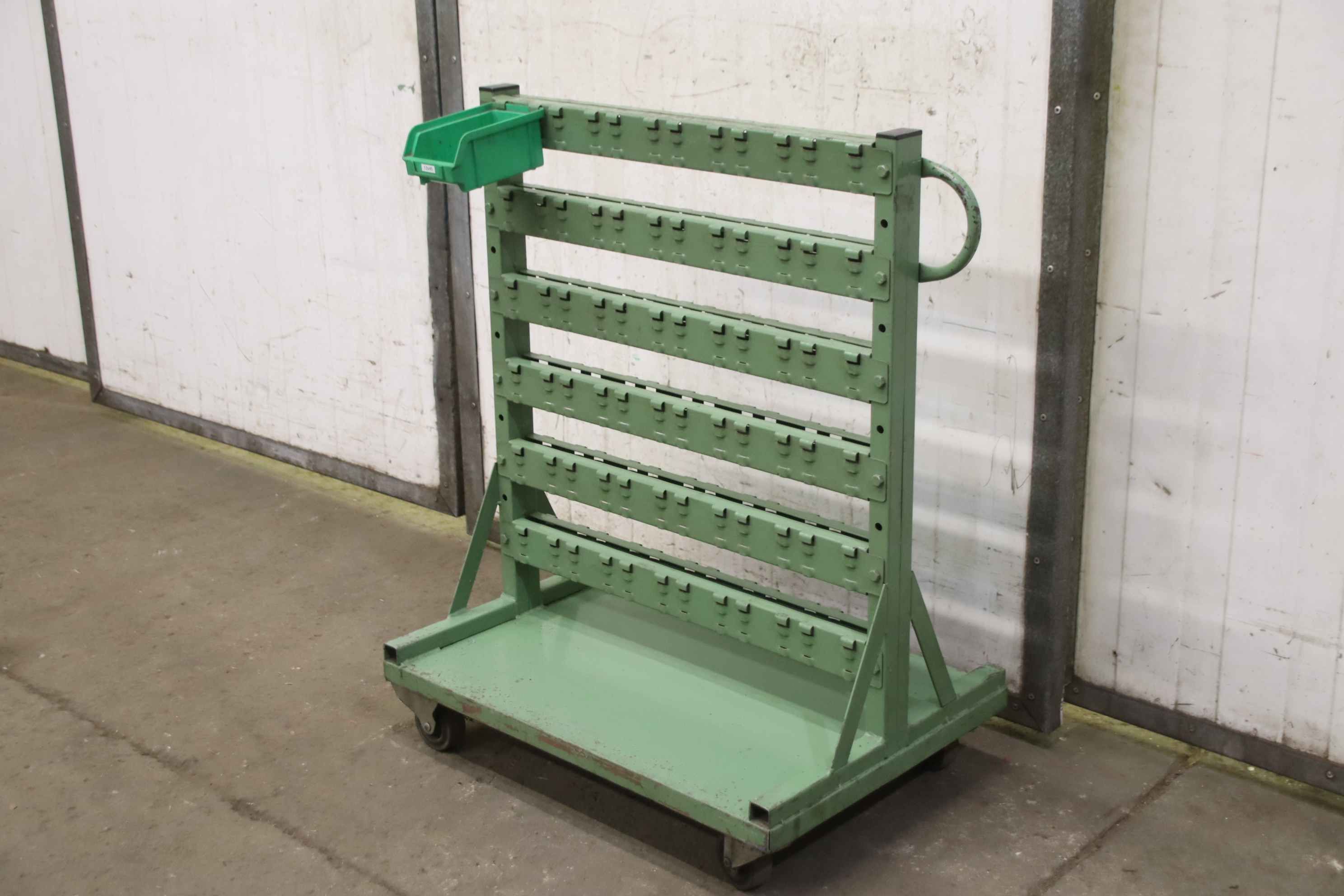 Etagenwagen, Transportwagen, Regalwagen, Sortierwagen, Fahrregal, Fahrbares Sichtlagerkastenregal-Sichtlagerkastenregal: Fahrbares Sichtlagerkastenregal, doppelseitig-Lagerkapazität: 72 Sichtlagerkästen-Abmessungen: 690/500/H895 mm-Gewicht: 24 kg