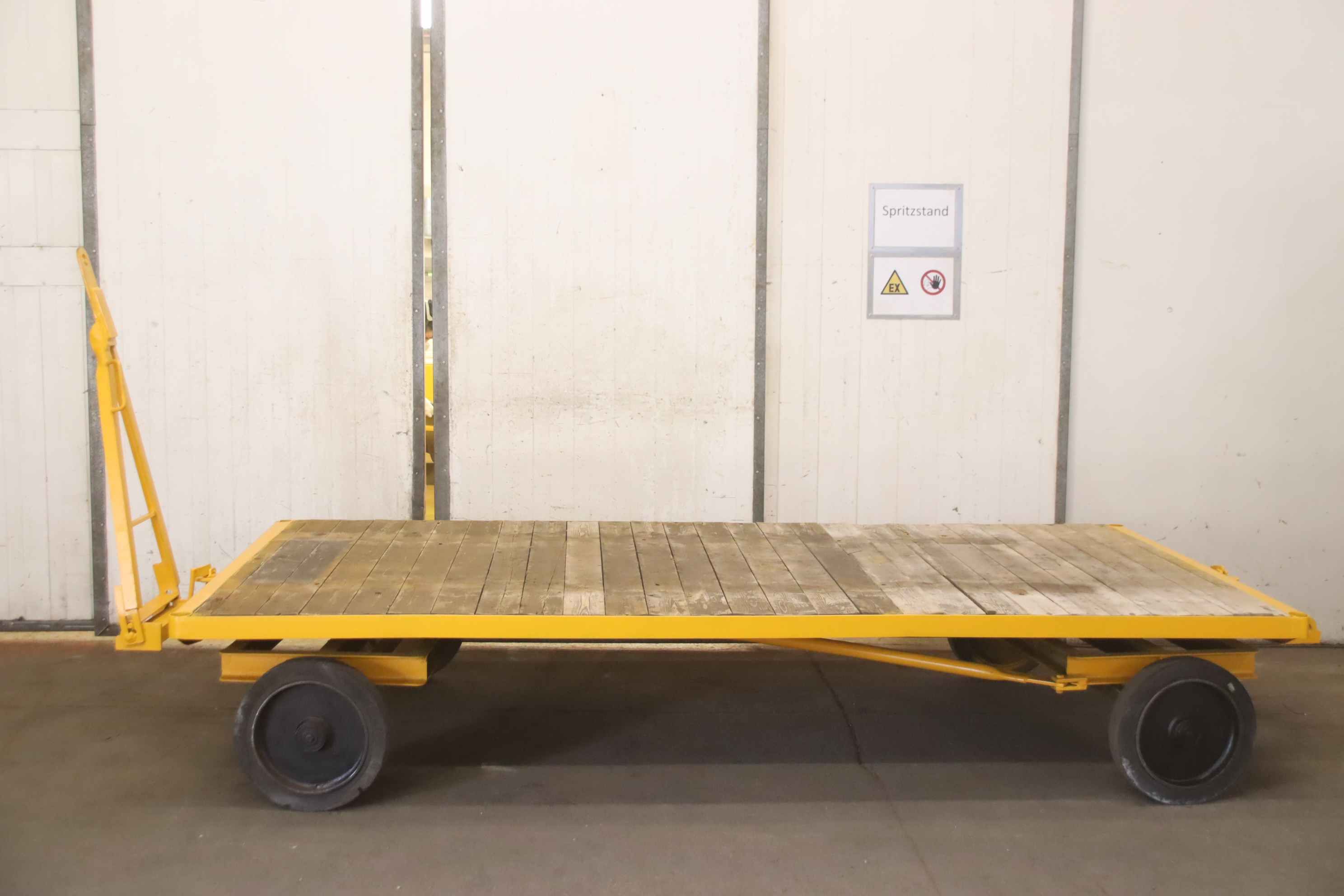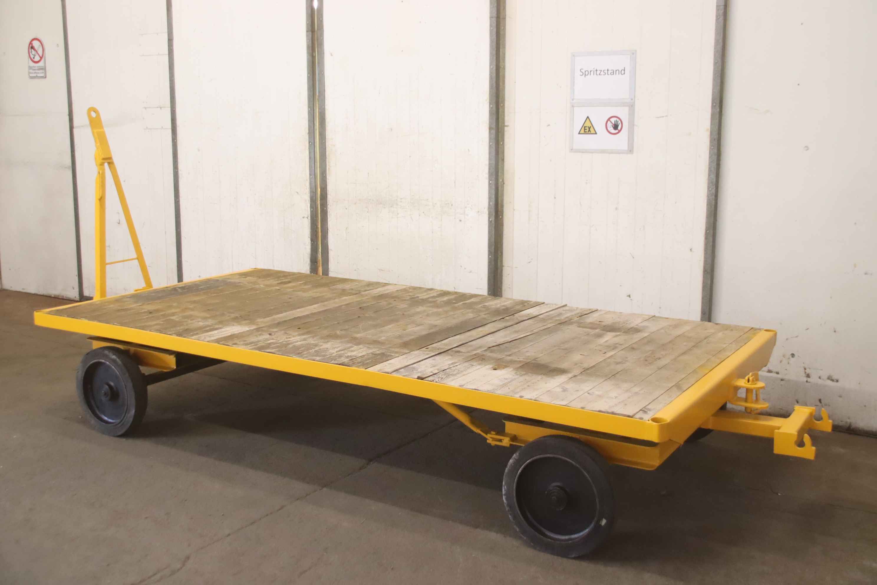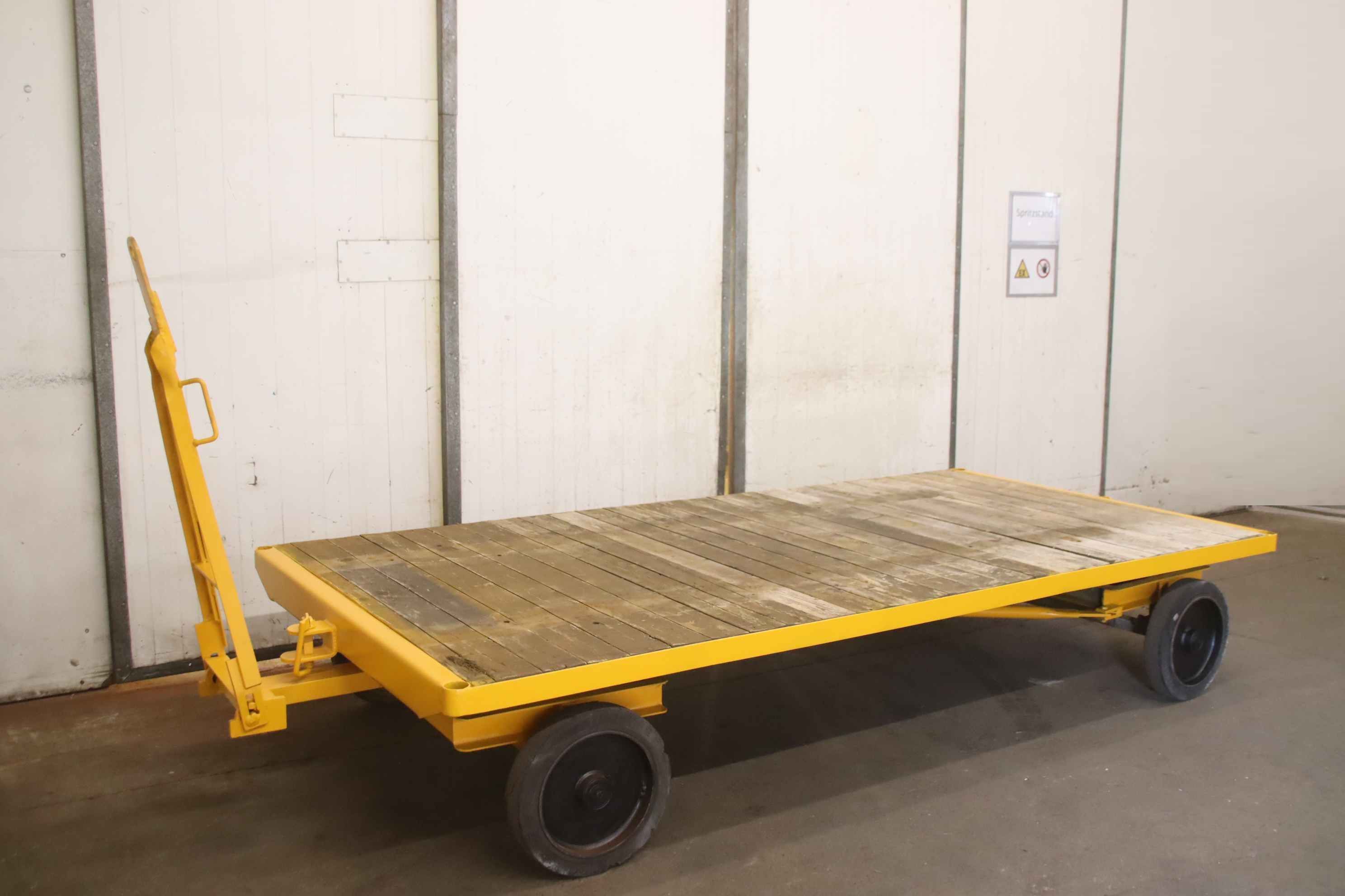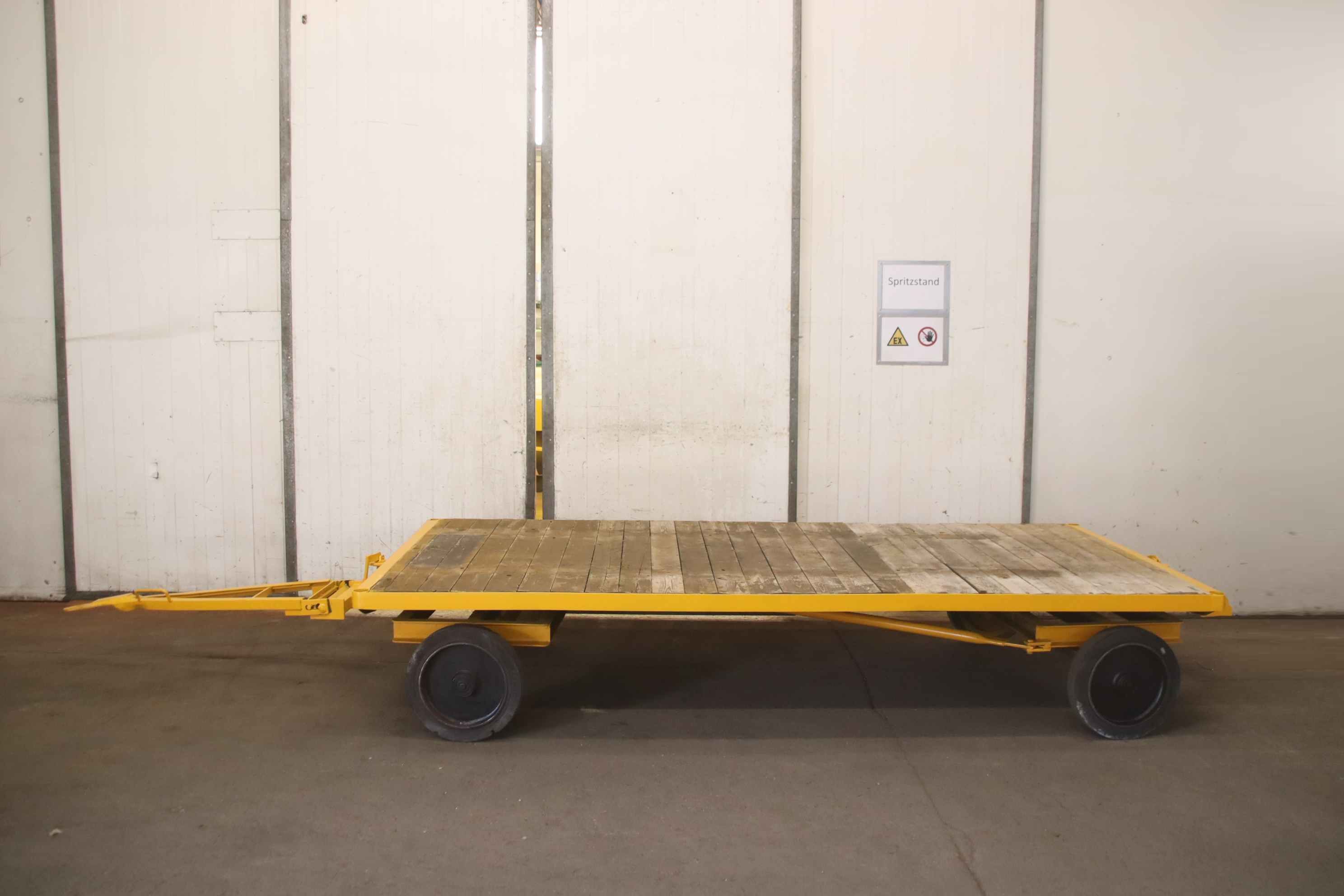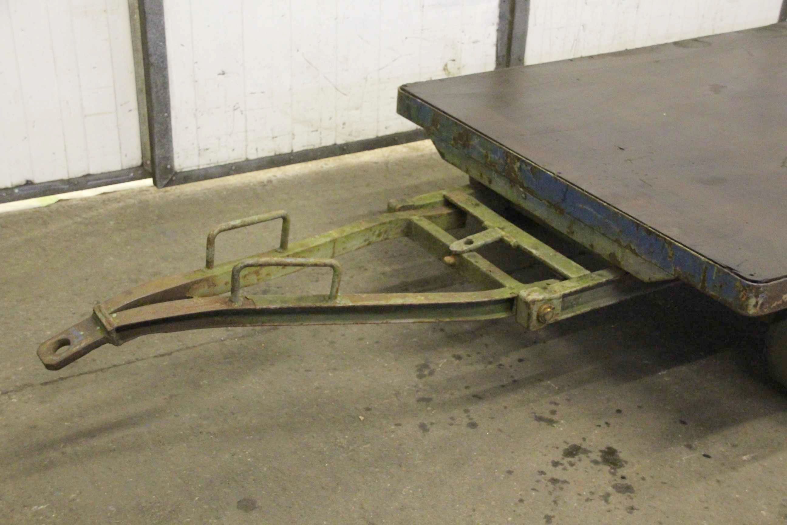 Plattformwagen, Transportwagen, Schwerlastwagen, Tischwagen, Montagewagen, Industrieanhänger-Industrieanhänger: mit 1-Achs-Drehschemel-Lenkung-Nutzlast: 5000 kg-Platform: 2500 x 1250 mm, Höhe 420 mm-Bereifung: Vollgummi-Anhängerkupplung für: Industrieanhänger-Abmessungen ges. 3780/1250/H420 mm-Eigengewicht: 395 kg