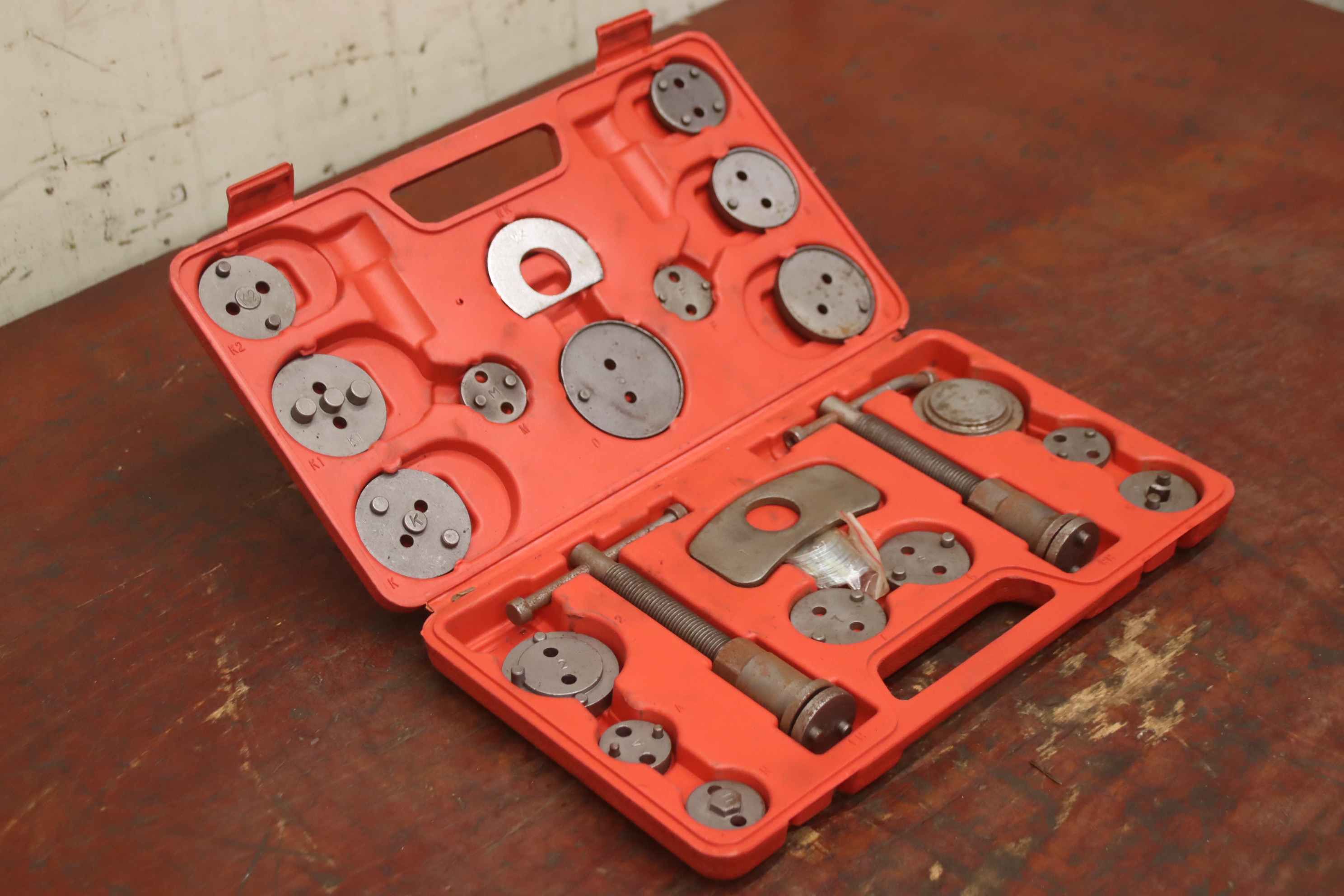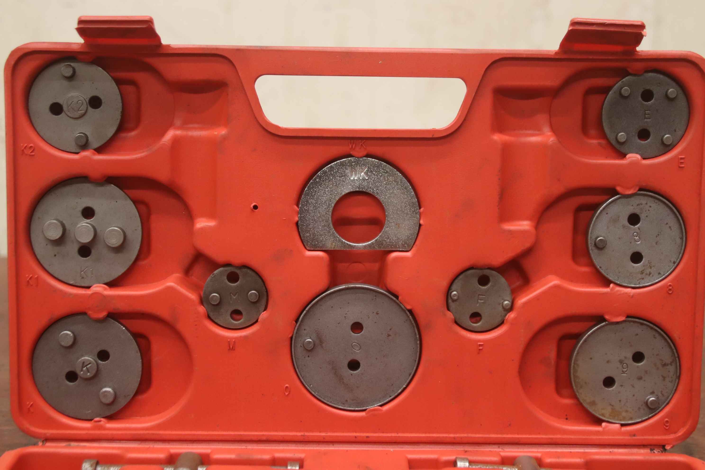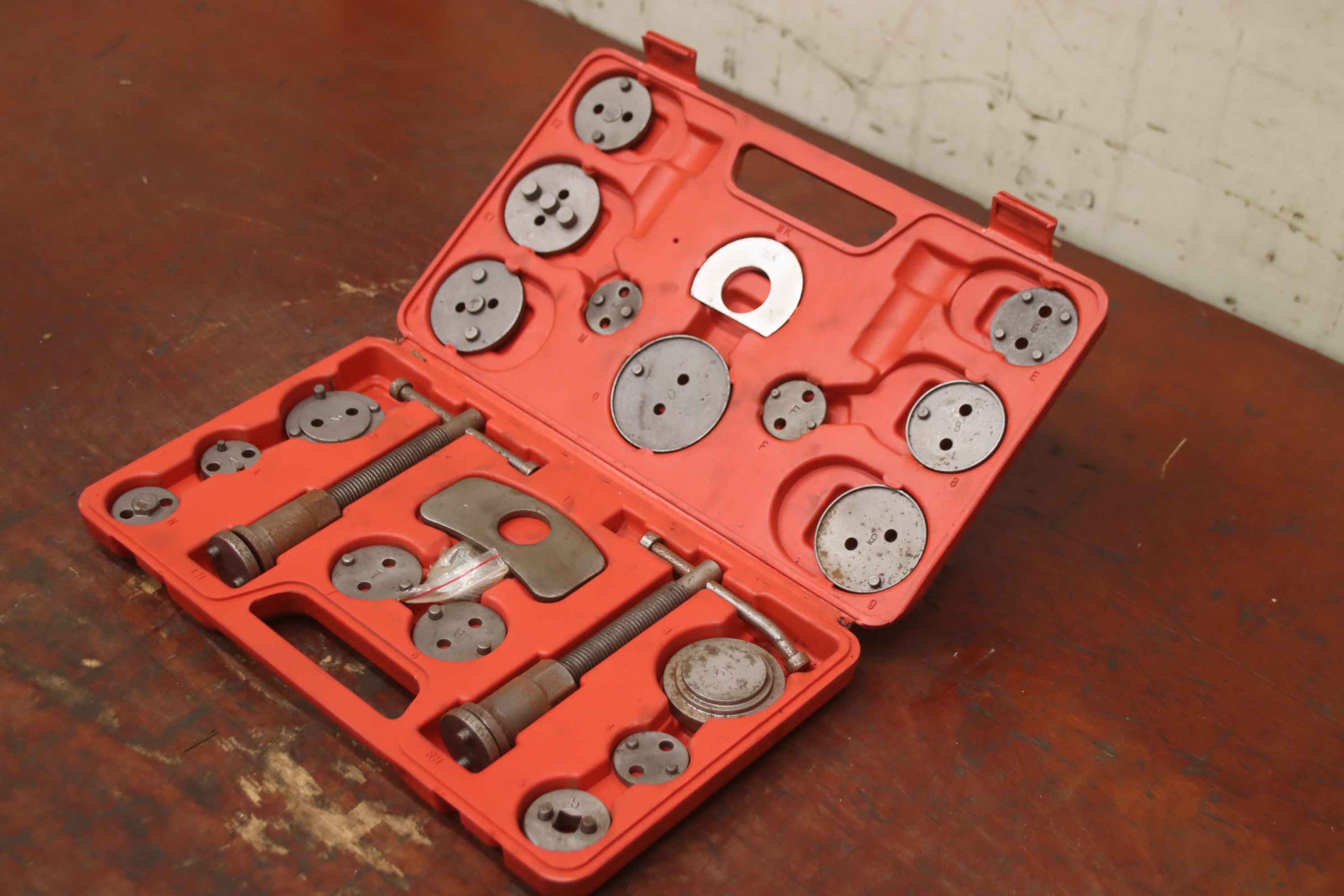 Schubladenschrank, Werkzeugschrank, Stahlschrank, Werkstattschrank, Werkzeugkiste-Bremskolben Rückstell Werkzeug: 22 Teile-Inhalt: siehe Fotos-Abmessungen: 200/340/H50 mm-Gewicht: 2,5 kg