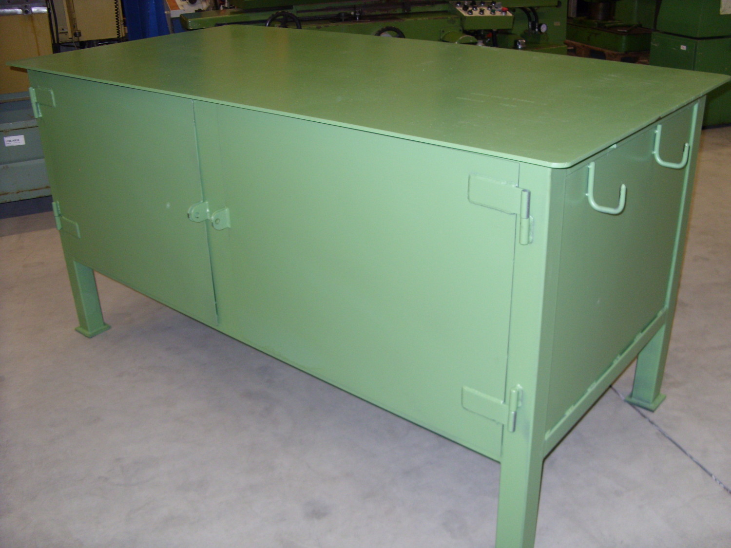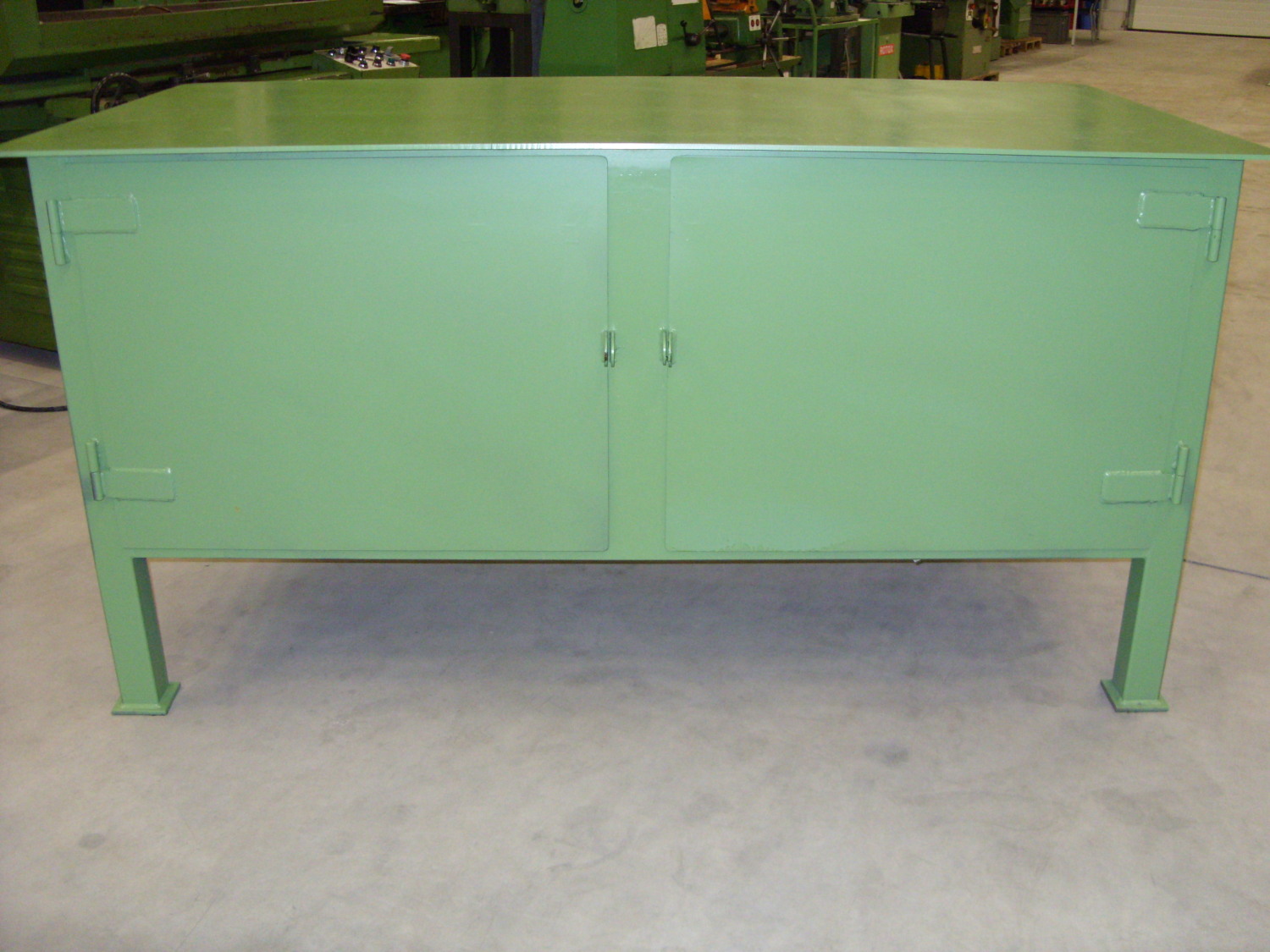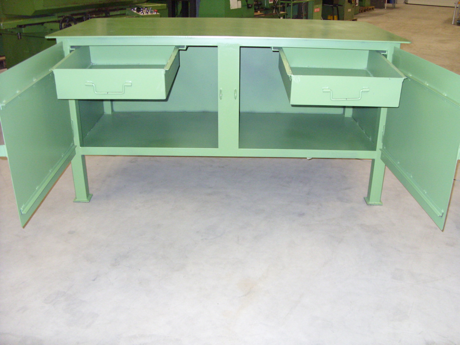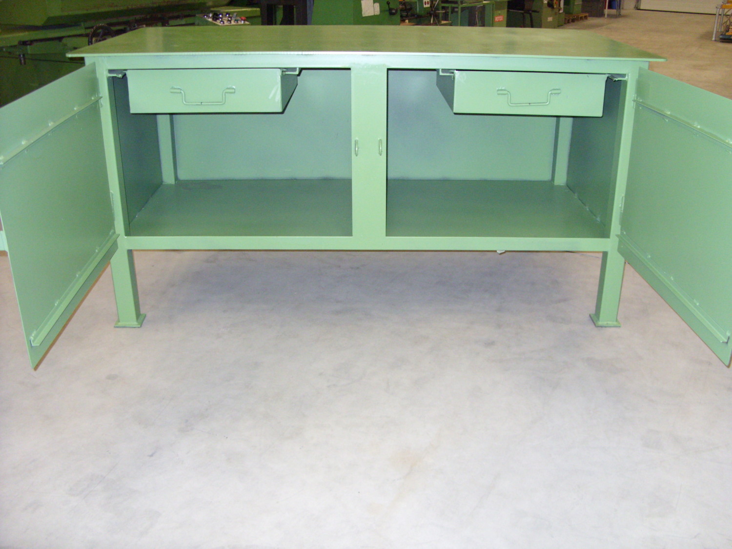 Werkzeugschrank mit 8 mm StahlplattePagusSchwere AusführungBreite: 2000 mmTiefe: 1000 mmHöhe: 1020 mmaus Stahlblechmit 2 Türenmit 2 EinschübenNeu !330 kg