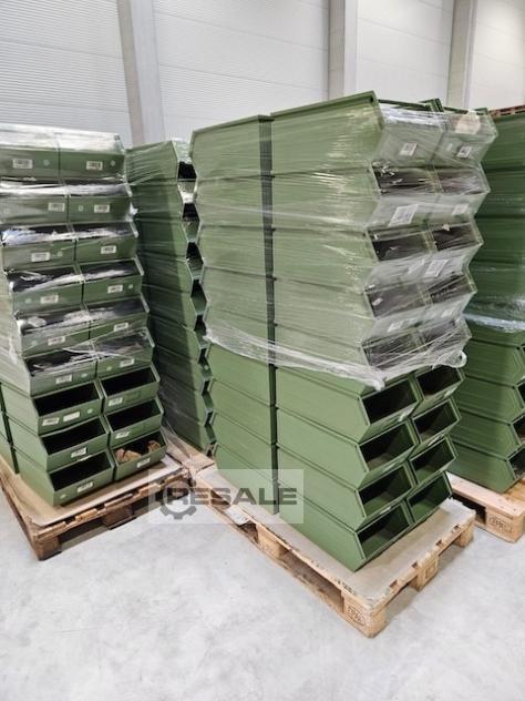 Baustellenpreis: ca. 9.000 Stück Sichtlagerstapelkisten, Metall, ähnlich Typ: 14/7-2, ca. 50 x 30 x 20cm, mit Tragstab - gebraucht - : Preis (netto) pro Stück ab Standort: Preis bei Komplettabnahme: 9.-€ (netto) / Stück. Bei Abnahme 10 Paletten a 40 Stück: nur 15.-€ (netto) / Stück Bei Abnahme 33 Paletten (LKW voll) a 40 Stück = 1.320 Stück: nur 12.-€ (netto) / Stück Bei Abnahme 66 Paletten a 40 Stück: 10.-€ (netto) / Stück Hersteller: unbekannt, Typ: ähnlich SSI Schäfer 14/7-2 l (für lackiert) Abmessungen: 50cm tief x 31cm breit x 20cm hoch Abmessungen innen: ca. Länge: 450 x Breite 300 x Höhe 190mm Menge: ca. 9.000 Stück Grün Mit Trag ...