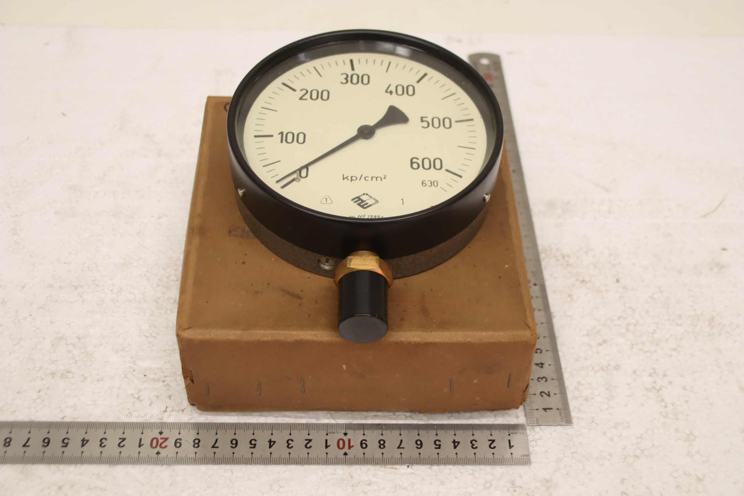 Manometer, Prüfmanometer, Druckmessgerät mit Rohrfeder, Druck-Temperaturmesstechnik, Rohrfedermanometer, Drucktester, Druckprüfer-Hersteller: MW, Manometer 0-10 bar unbenutzt Ovp-Typ: 1/BS 20/2 M20x1,5 150Ø 0-630 kp/cm² -Anzahl: 1x Manometer vorhanden-Abmessung Karton: 185/185/H75 mm-Gewicht: 1,3 kg